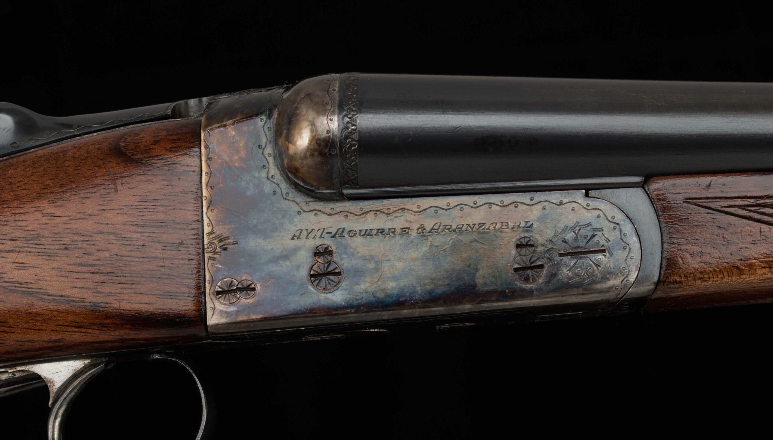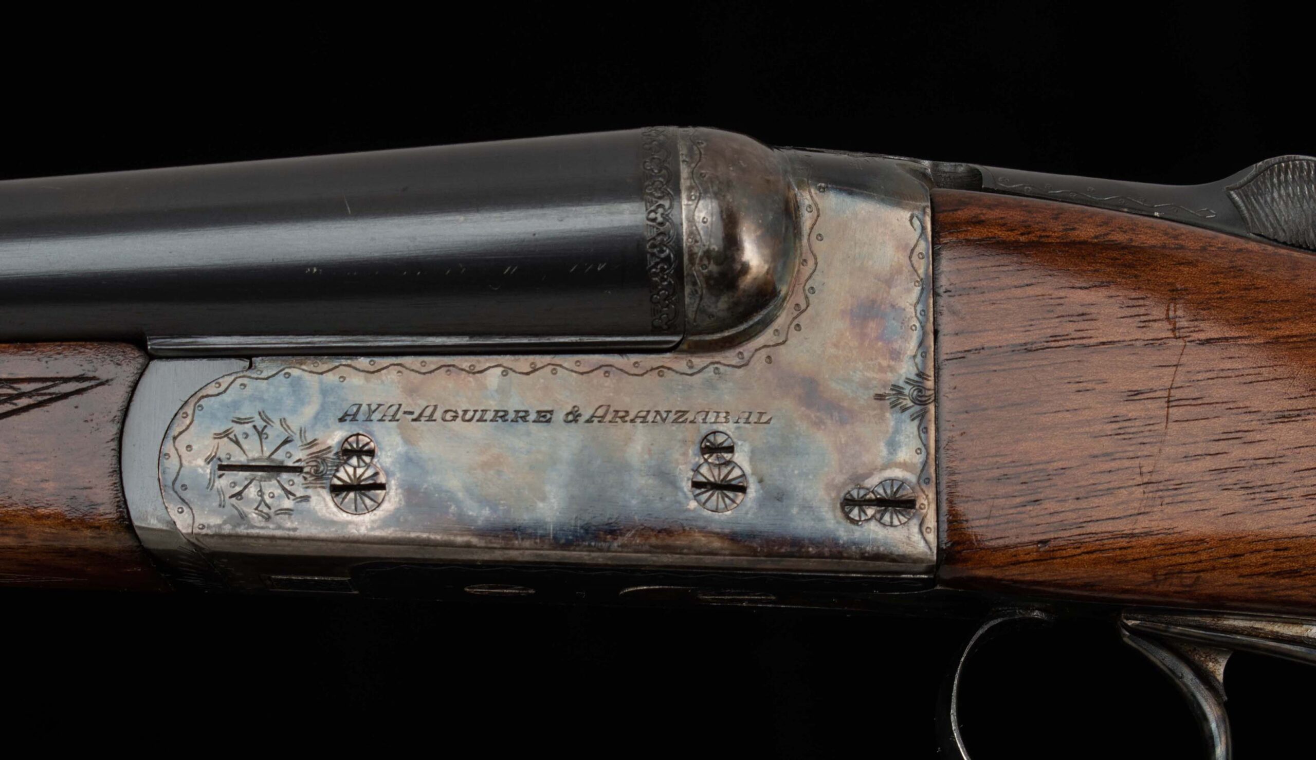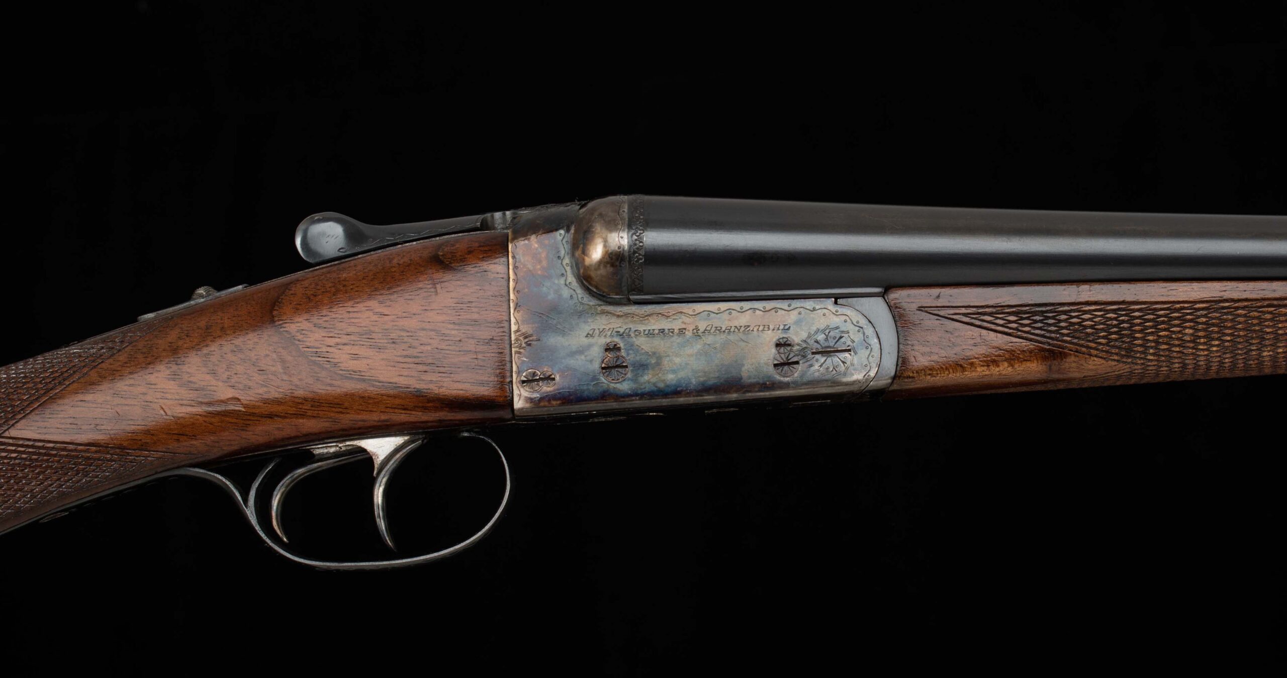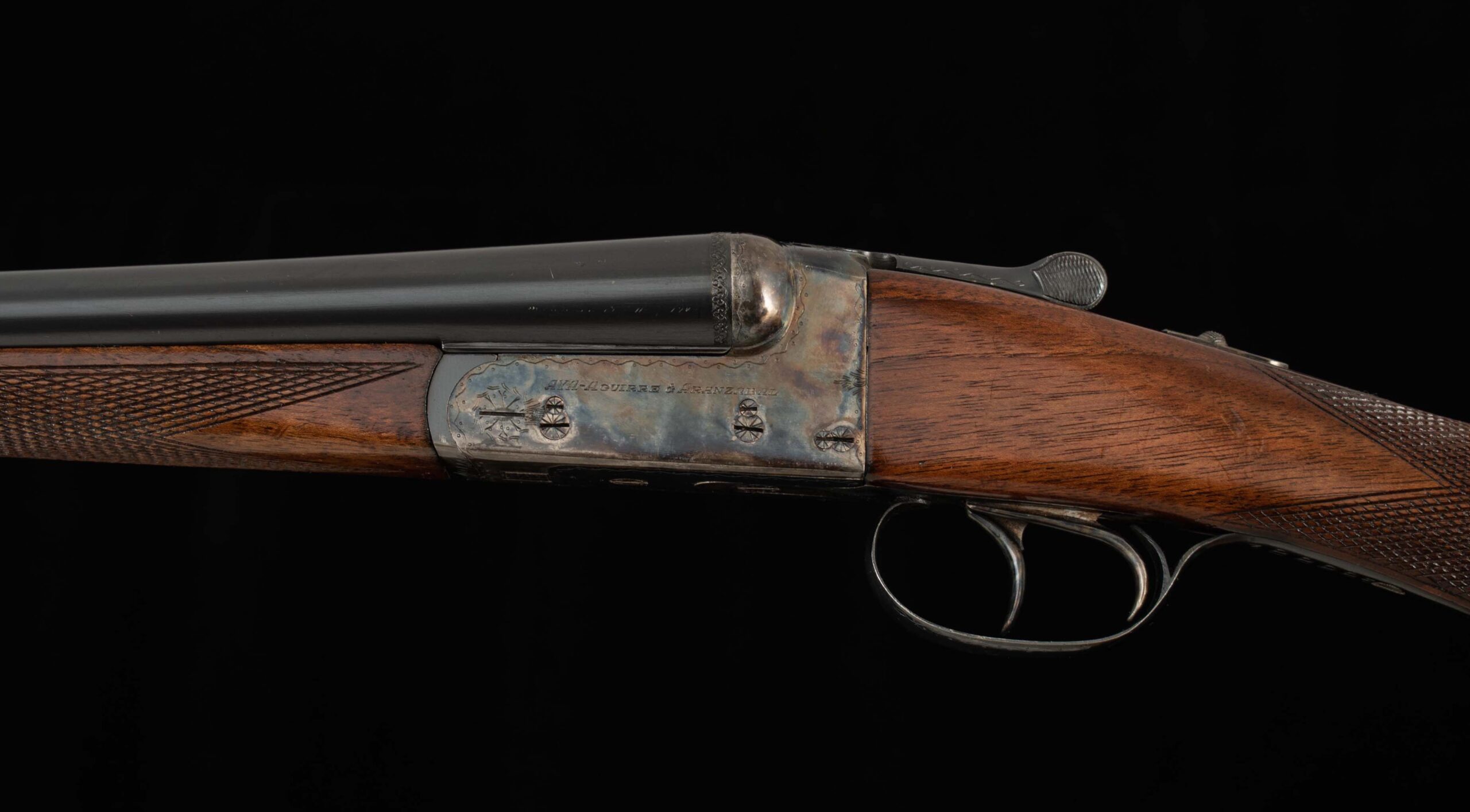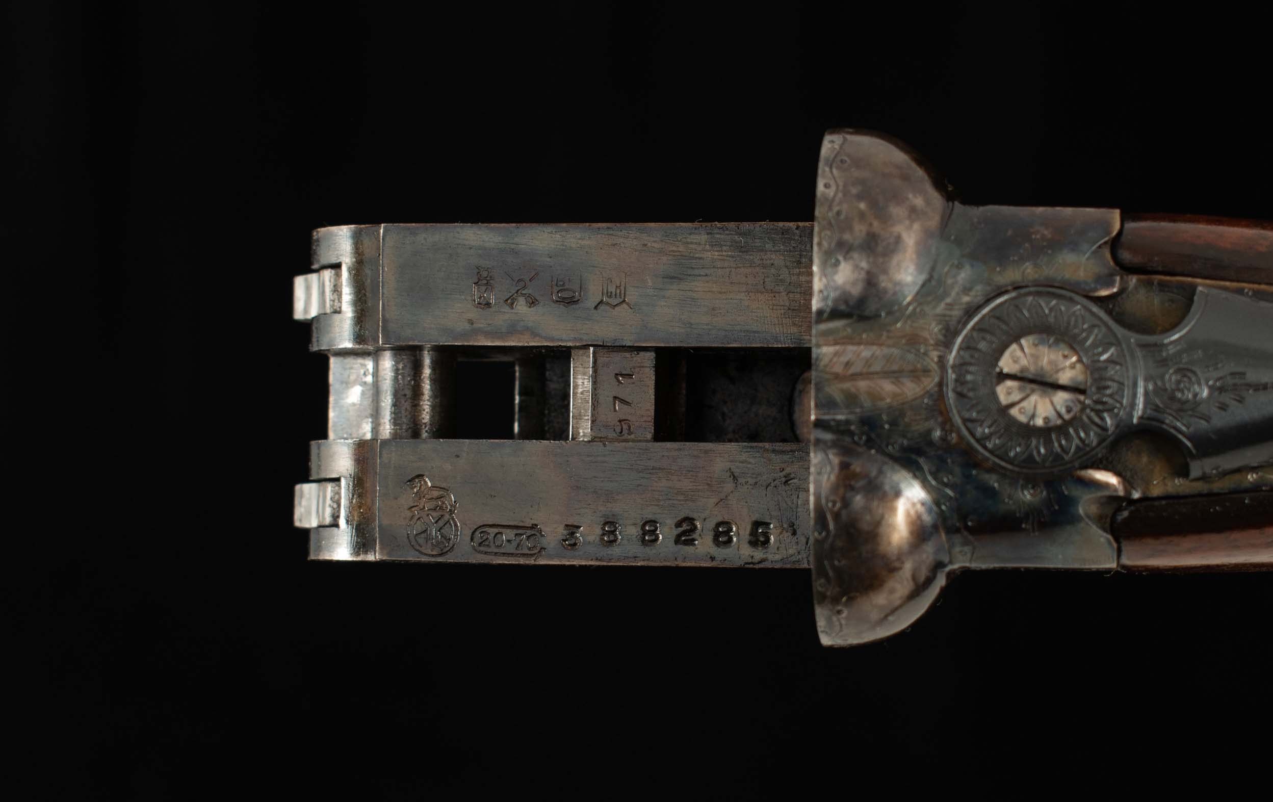 | General Specs: AyA, 1972, 20 Gauge, 5lbs. 8oz. Chokes LM/F, LOP 14 1/2″, DAH 2 5/16″, DAC 1 7/16″ Serial Number: 388285 Here we have a delightful, affordable upland gun from AyA, one of Spain’s premier gunmakers well known the world over for making solid, well finished guns. From the AyA website: The N° 3 has been AYA’s standard boxlock design since 1960. It is modelled on a Westley Richards boxlock action, brought to Spain by the King brothers. The Anson & Deeley action, the most famous of all boxlock designs, was created by two employees of Westley Richards in 1875, and ever since, Westley Richards guns have defined boxlock elegance. This AyA, sn388285 built in 1972, is a fine upland gun indeed! Weighing a scant 5lbs. 8oz. and balanced just ahead of the hinge pin, you can carry this gun all day with little fatigue. The 20ga. chambering is known to be deadly on pheasants, grouse, quail, dove, woodcock and all upland game. The 27″ barrels are tight on the hinge and breech face, with the lever sitting slightly Right of Center, have excellent bores, tight ribs that ring as bells, 98% blue, and are choked LM/F with 2 ¾” chambers. The receiver retains 99% vivid bone and charcoal case color and is in perfect mechanical condition with crisp double triggers, auto safety, and perfect screws. The furniture has some figure and some field marks on both sides of the stock. Please see below for all specifications. These are known to be highly reliable guns, and this one is light as a feather, and nicely balanced, and is priced affordably for a hand-engraved, hand-checkered gun. A perfect gun for this year’s upland and clays season. Don’t miss this one! Thanks for looking.