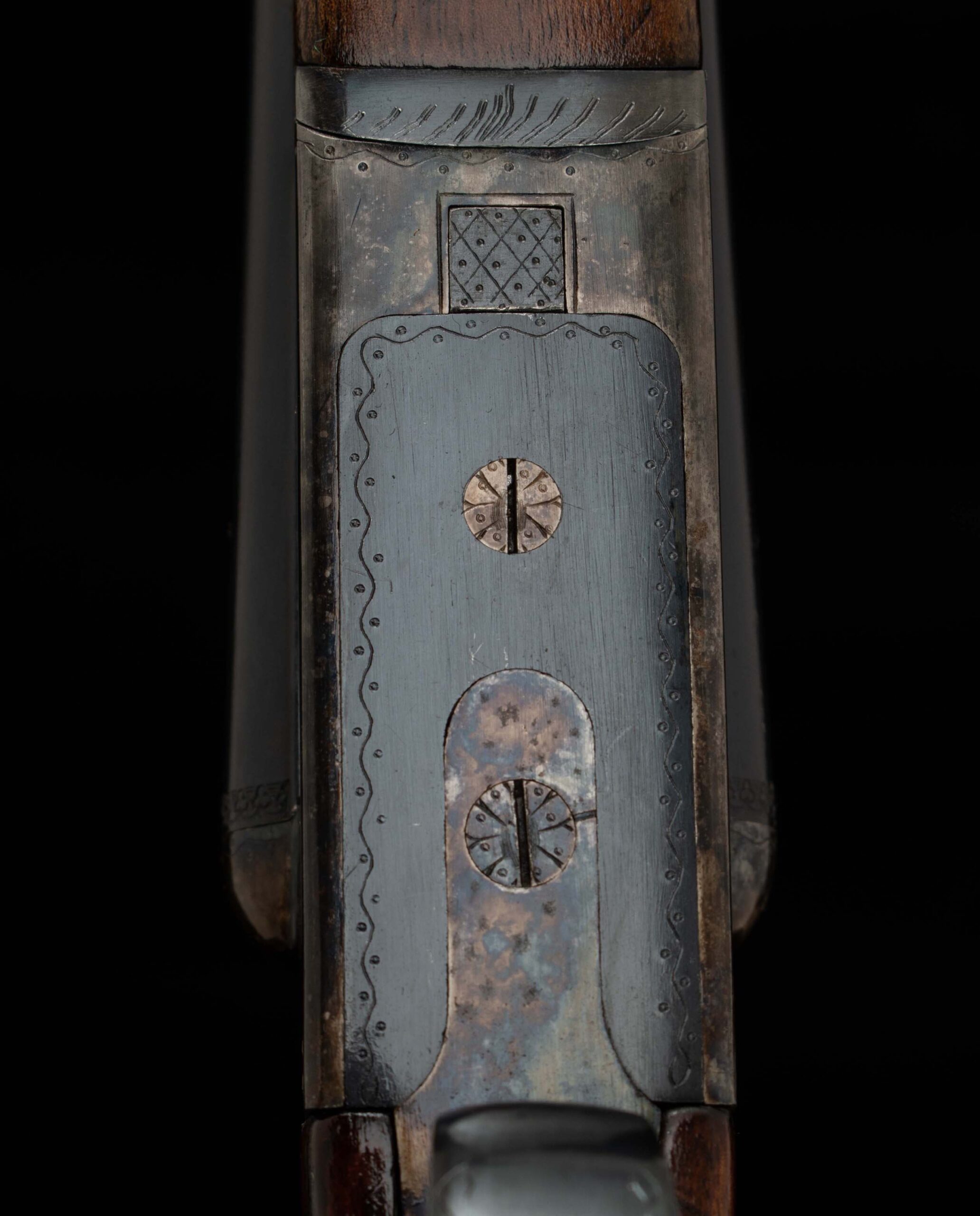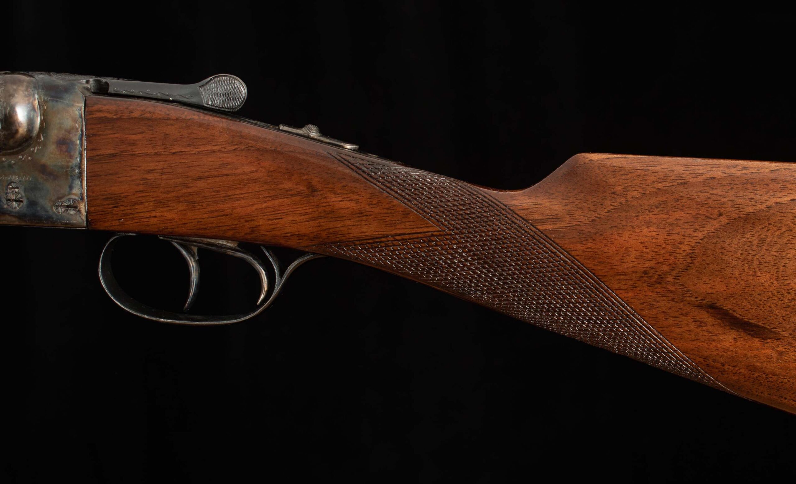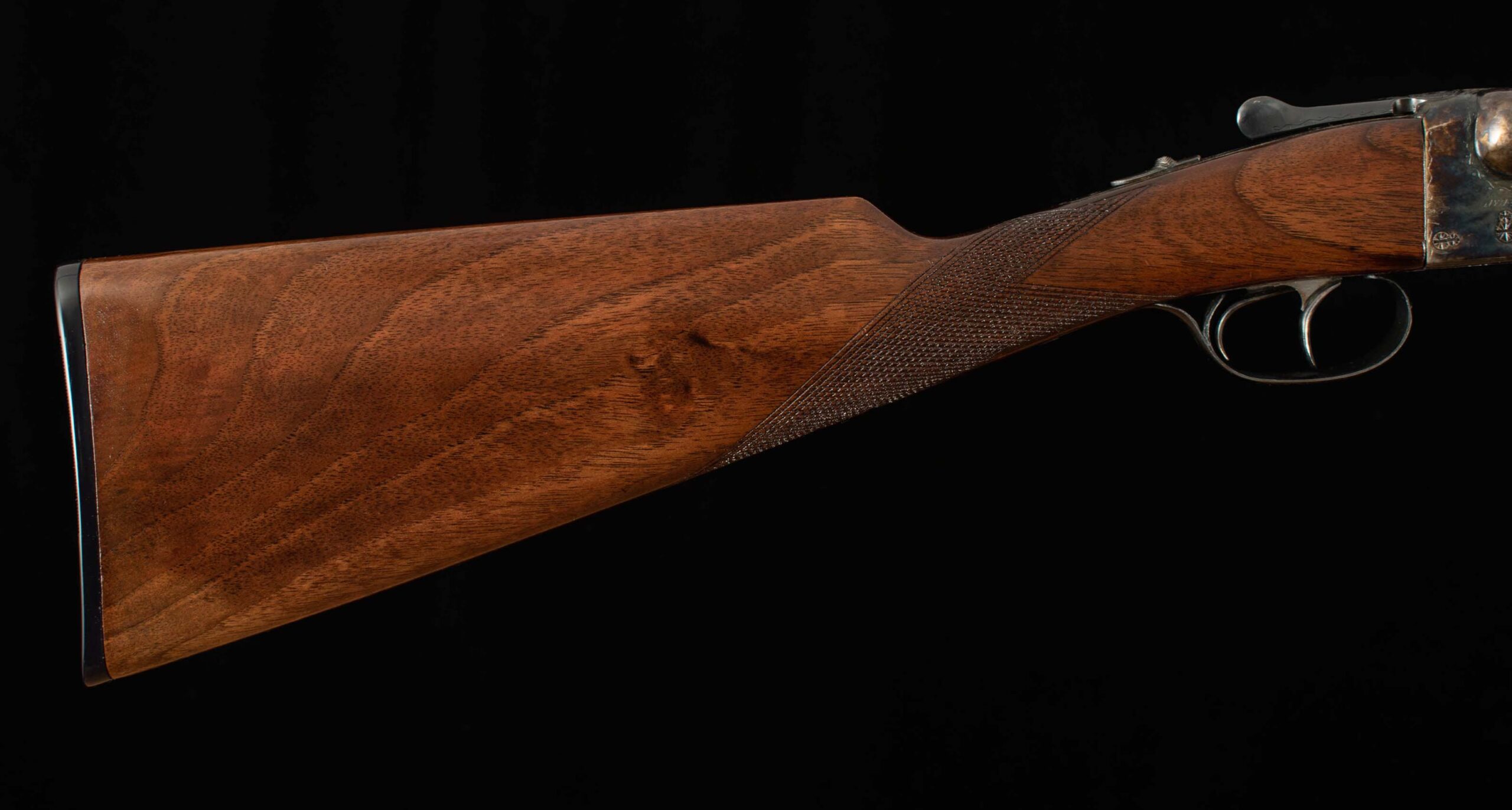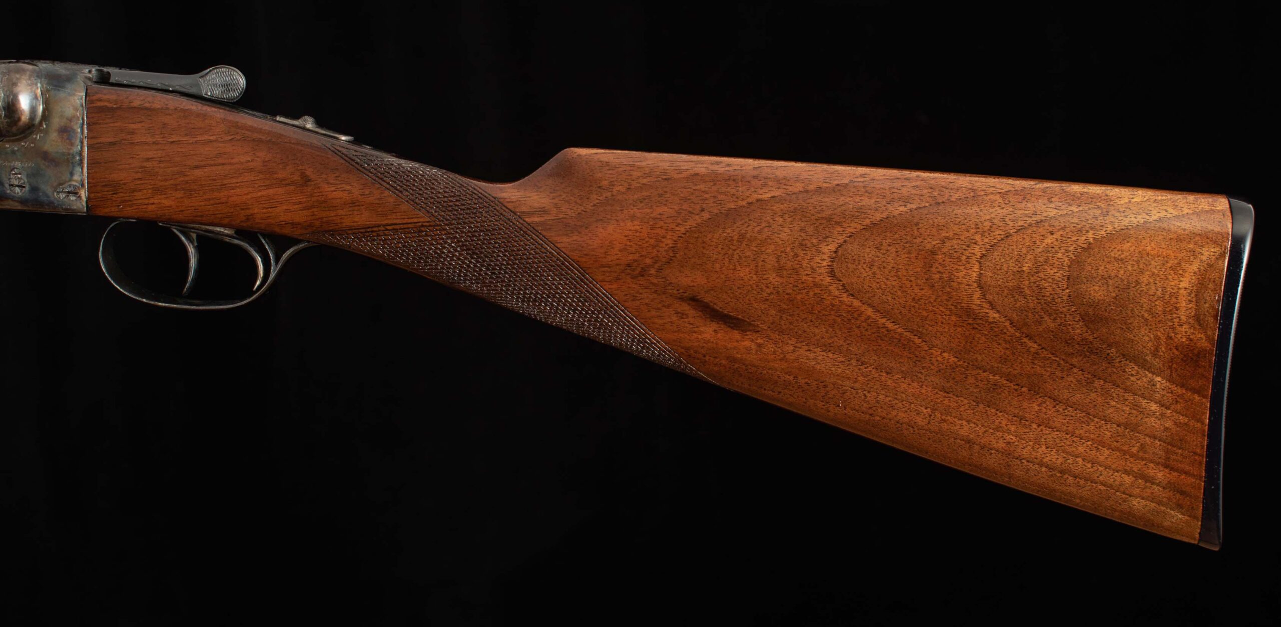 | Type: English/Splinter; some figure LOP: 14 1/2″ LOP To End Of Wood: 14 1/4″ DAH: 2 5/16″ DAC: 1 7/16″ Cast: H 1/8″ off T 3/8″ off Checkering Condition: excellent Butt Treatment: Hard rubber buttplate |
