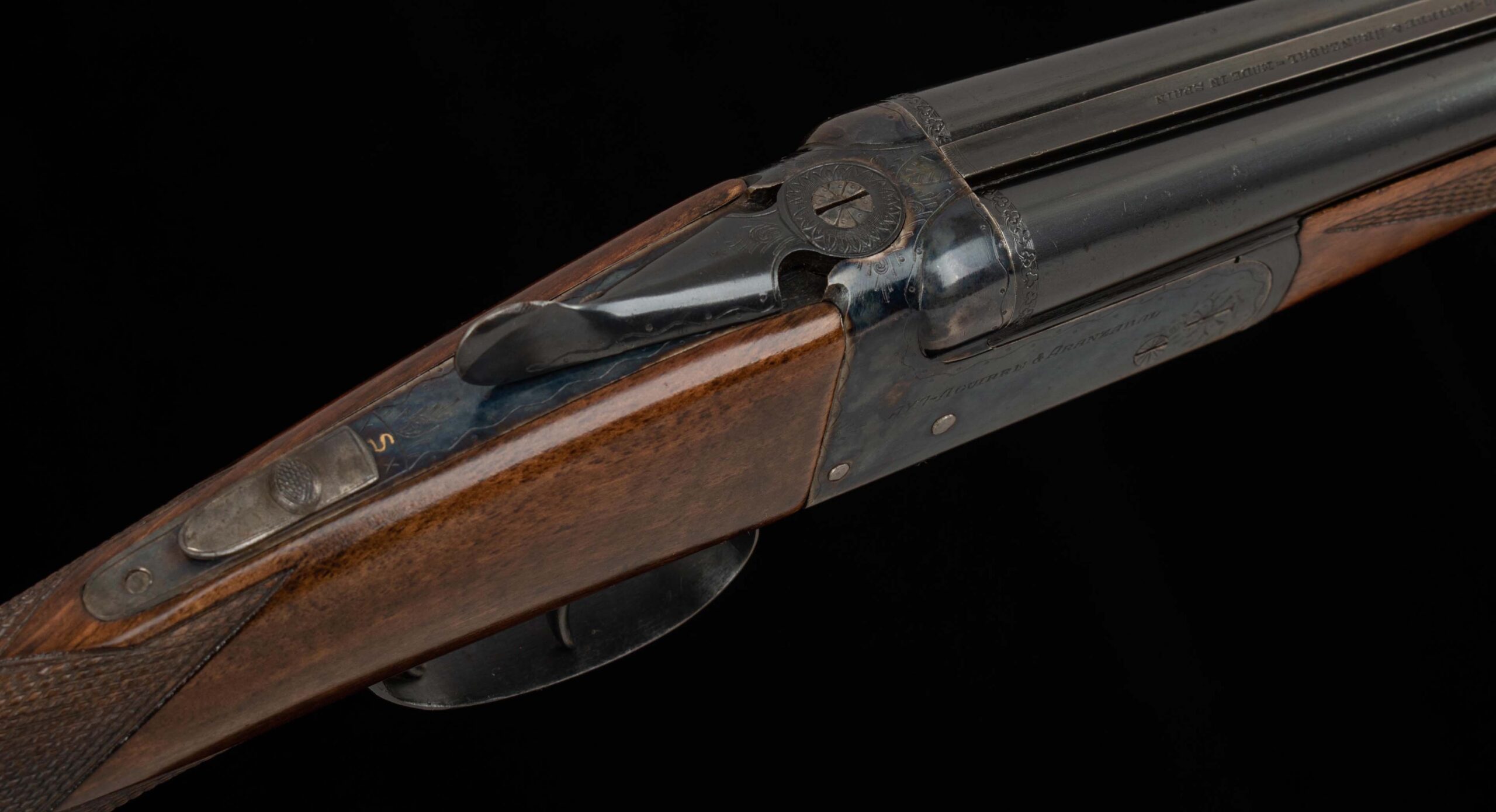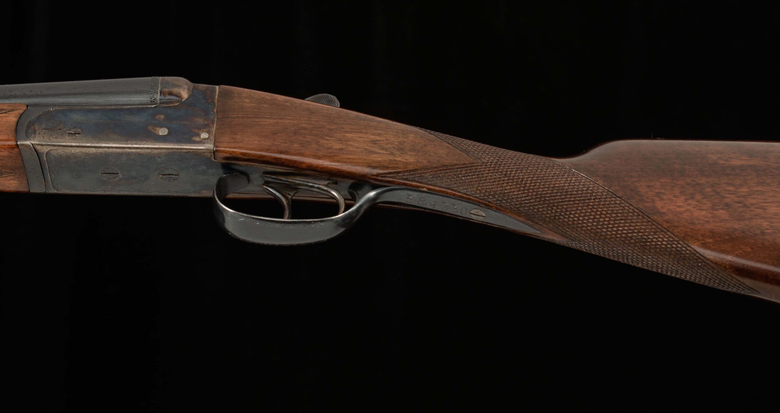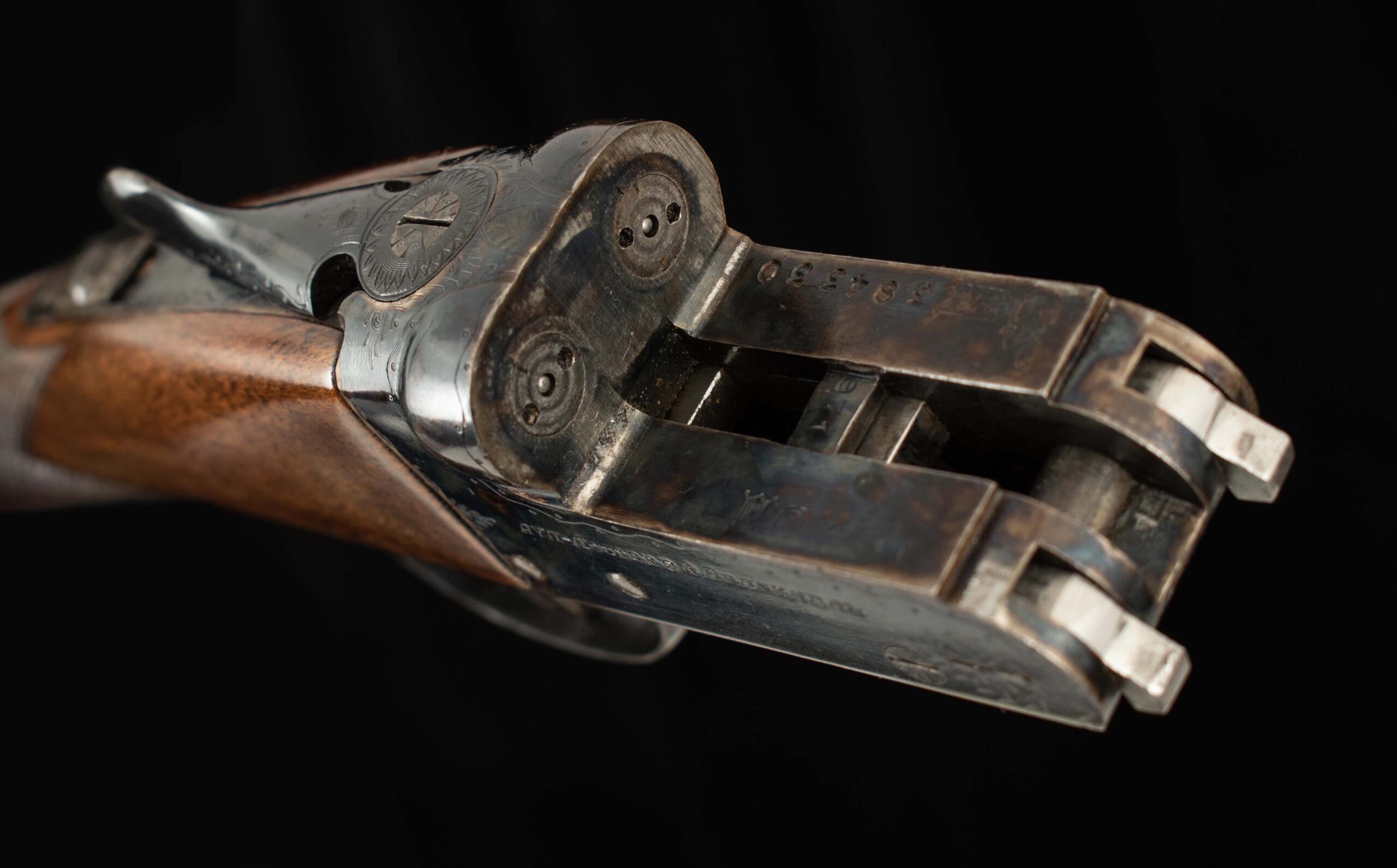 | Action: tight-centered tightened forend to barrels Extractors Receiver Condition: 96% Screws: superb Engraving: sharp Trigger Type: double-crisp Trigger Guard Color: 97% |