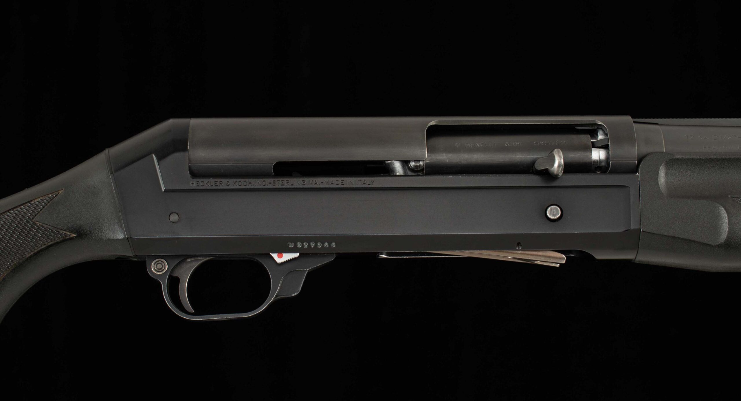 General Specs: Benelli, 1994, 12 Gauge, 7lbs. 6oz., Chokes-Screw-ins; CYL, LOP 14 1/4″, DAH 2 1/4″, DAC 1 9/16″ Serial Number: U027944