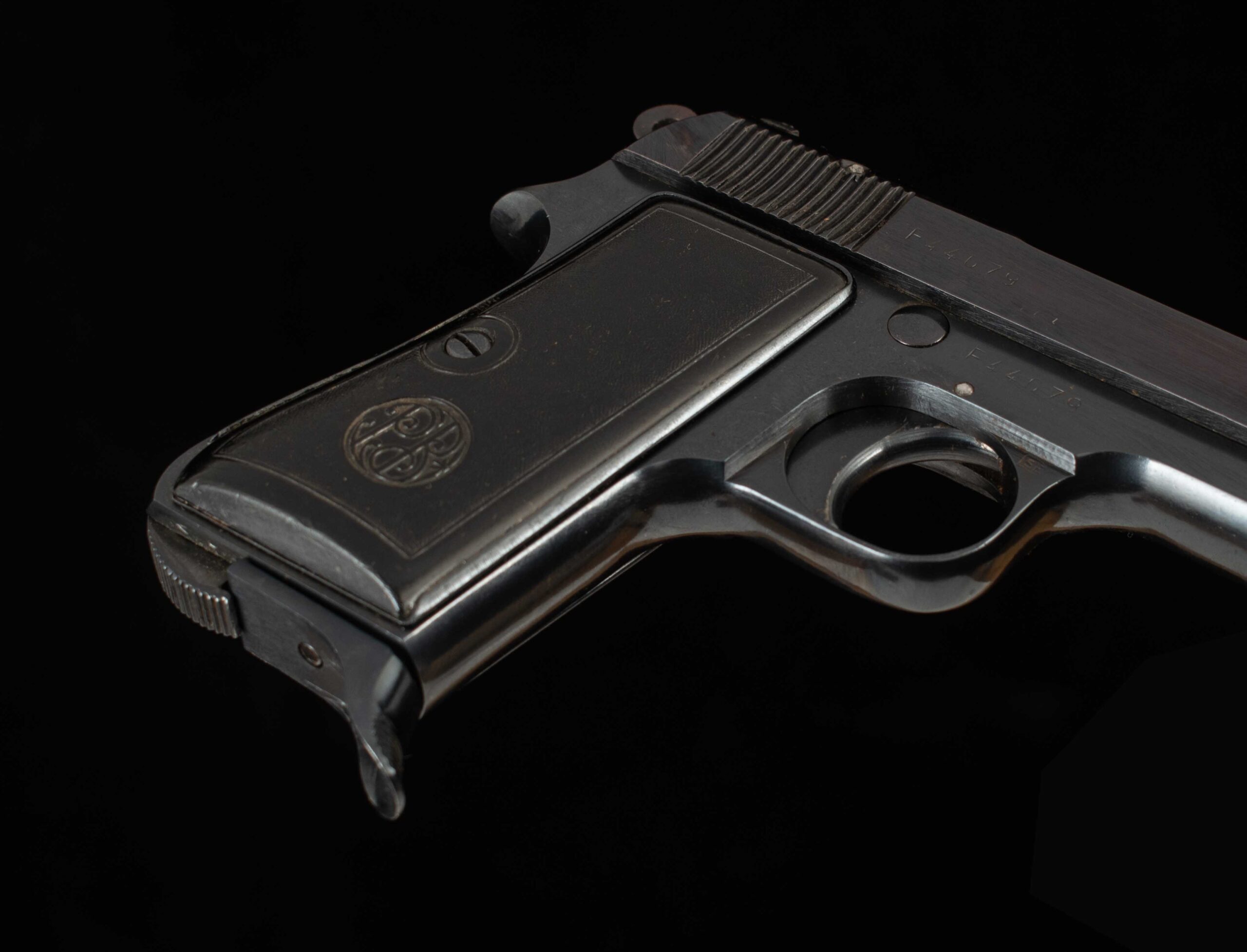 | General Specs: Beretta, 1944, .380ACP, 23oz. 3 1/2″ Serial Number: F44079