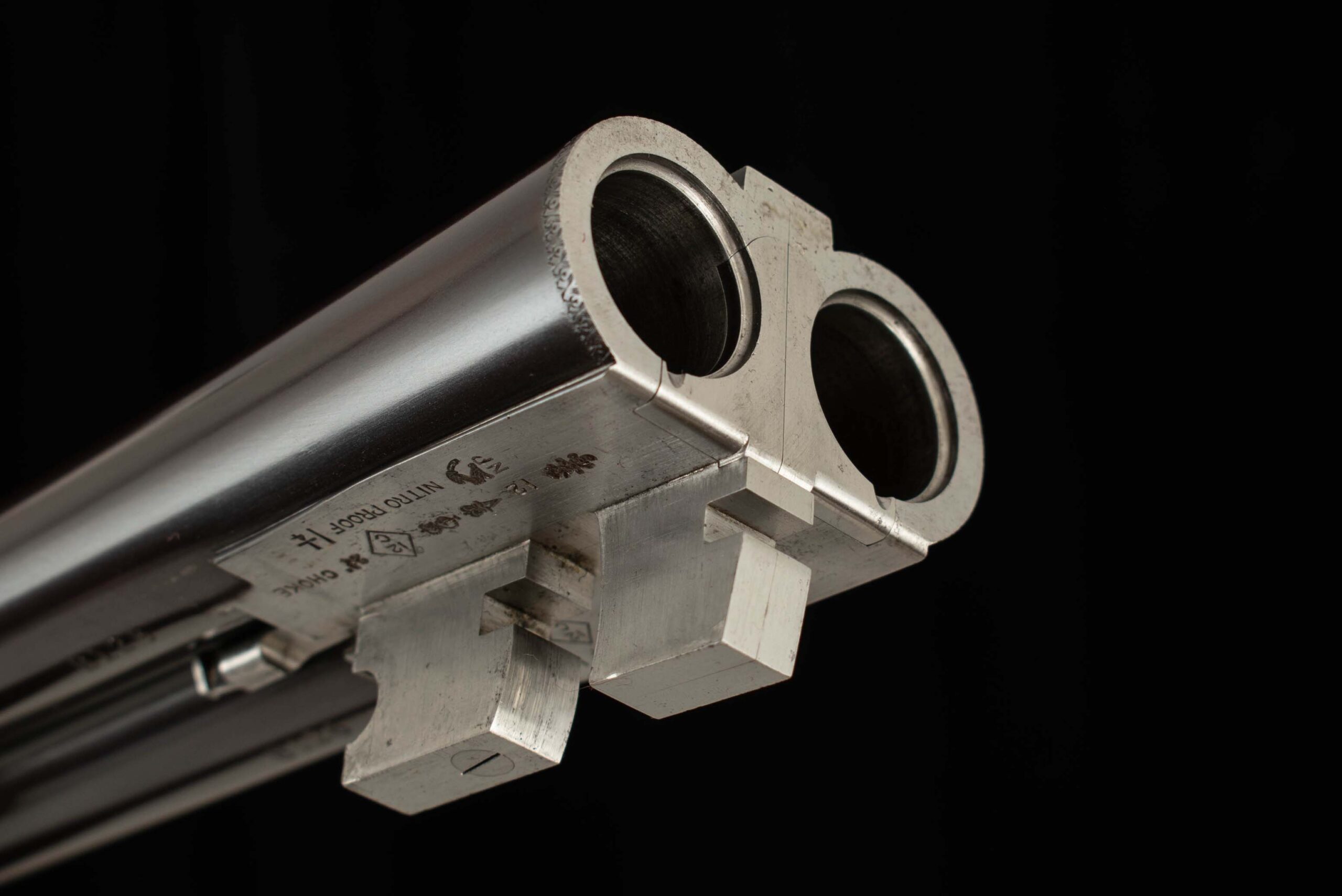| Barrel Length: 30″; 28″ Chokes: .020/.032; .007/.013 M/F; SK/IC Bores: both mirror Bore Diameter: .733/.731; .732/.731 Wall Thickness: .030/.028; .029/.031 % Blue: 99% factory brown Chambers: 2 3/4″; 2 5/8″ both in Proof Ribs: both tight- bells Sights: both front silver |