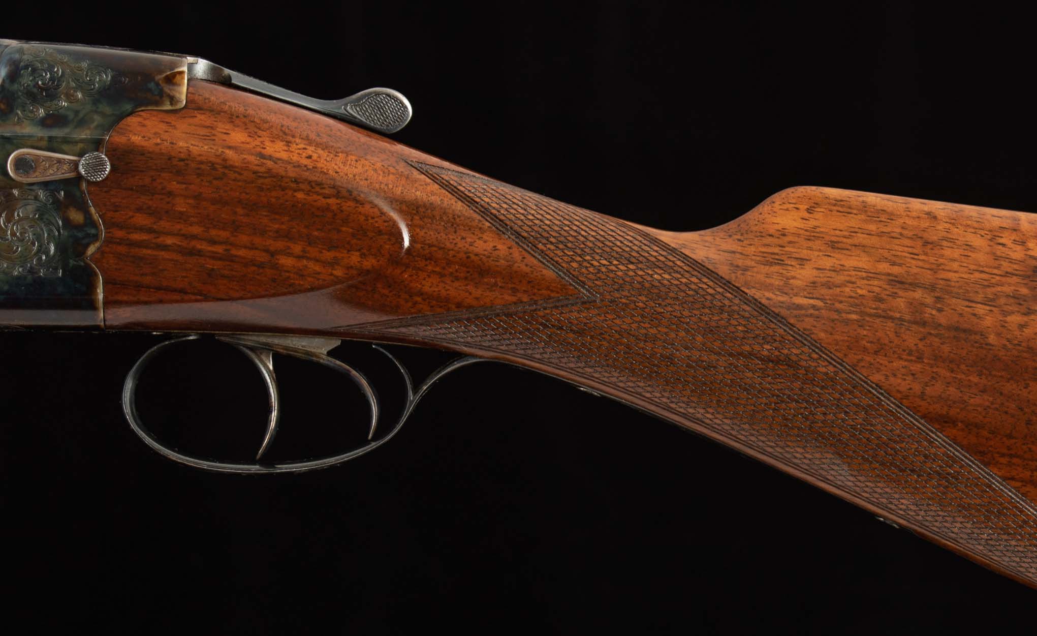 | Terms of Purchase: Check your local and state laws before purchasing. It is the buyer’s responsibility to confirm his/her right to own the firearm or any item before purchasing. PLEASE SEE OUR OTHER FINE VINTAGE FIREARMS. View all listings and our full inventory of fine sporting and collectible arms will appear. Thanks for looking!We employ full time gunsmiths on premises and can perform alterations to suit your needs within a few weeks of purchase. Common requests are: -stock bending to suit your particular requirements -addition of any specified butt pad to increase length of pull -alteration of chokes to suit your shooting preferences -lengthening of chambers and forcing cones -darkening stock color with penetrating stains -restoring any part of the gun including rust blue, charcoal blue, bone and charcoal case color, wood restoration and checkering recuts. If you like one our guns but it needs “tweaked”, let us know and we can quote you a time and price. Some enthusiasts like the guns “as found” and others want them “just so”. We often list guns as found and let the particular buyer choose how they want their gun to fit or look. |