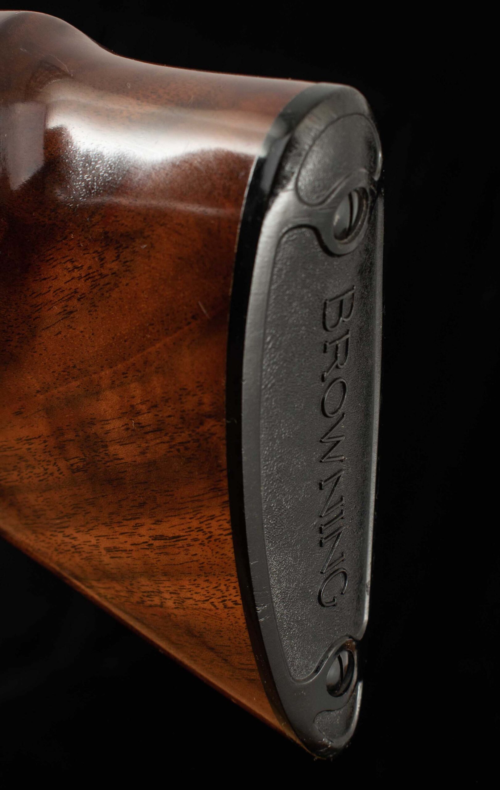 | Type: capped pistol grip Monte-Carlo sporter LOP: 13 3/4″ LOP To End Of Wood: 13 1/2″ Checkering Condition: perfect, skip-line Butt Treatment: browning plate |