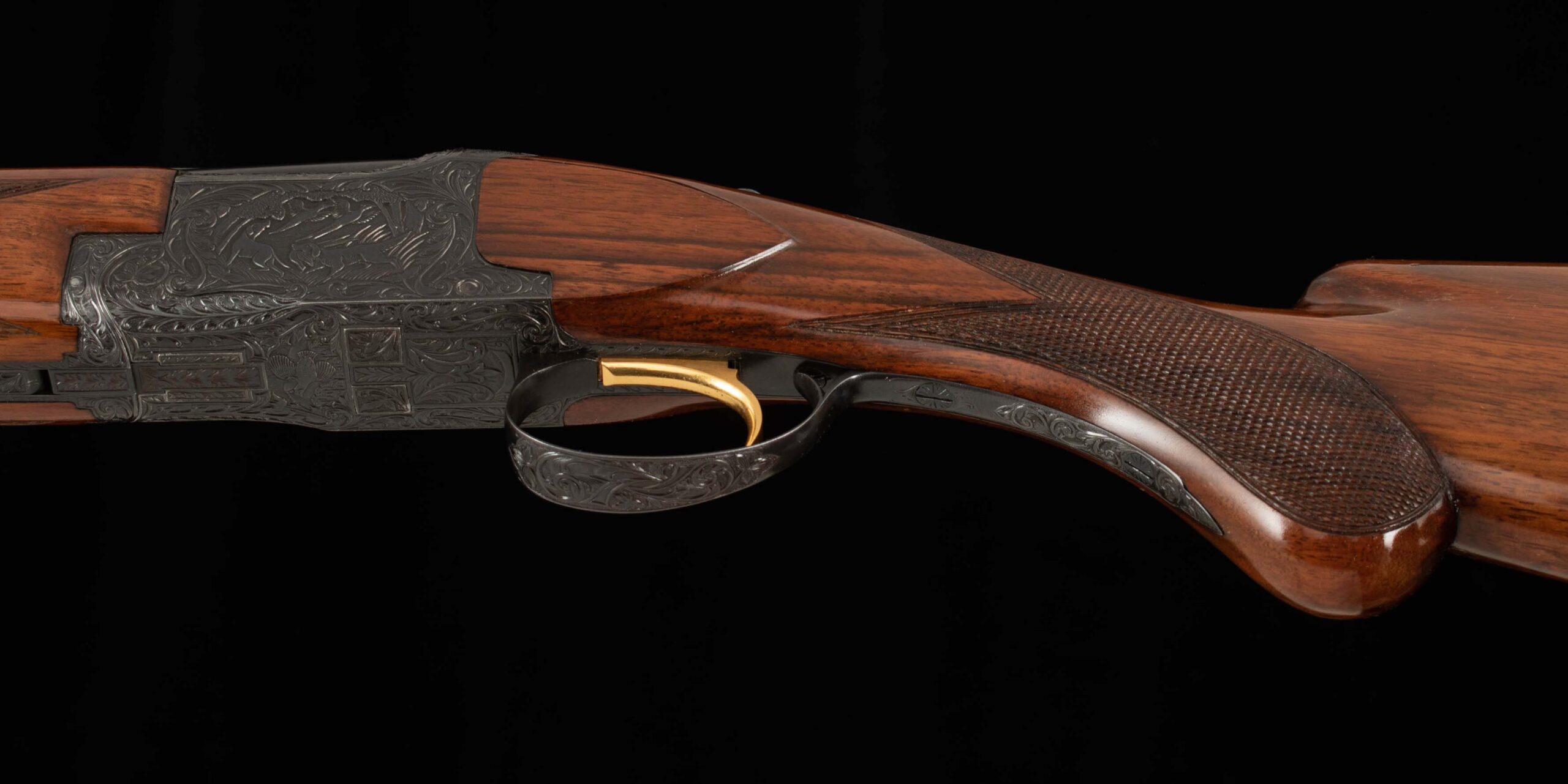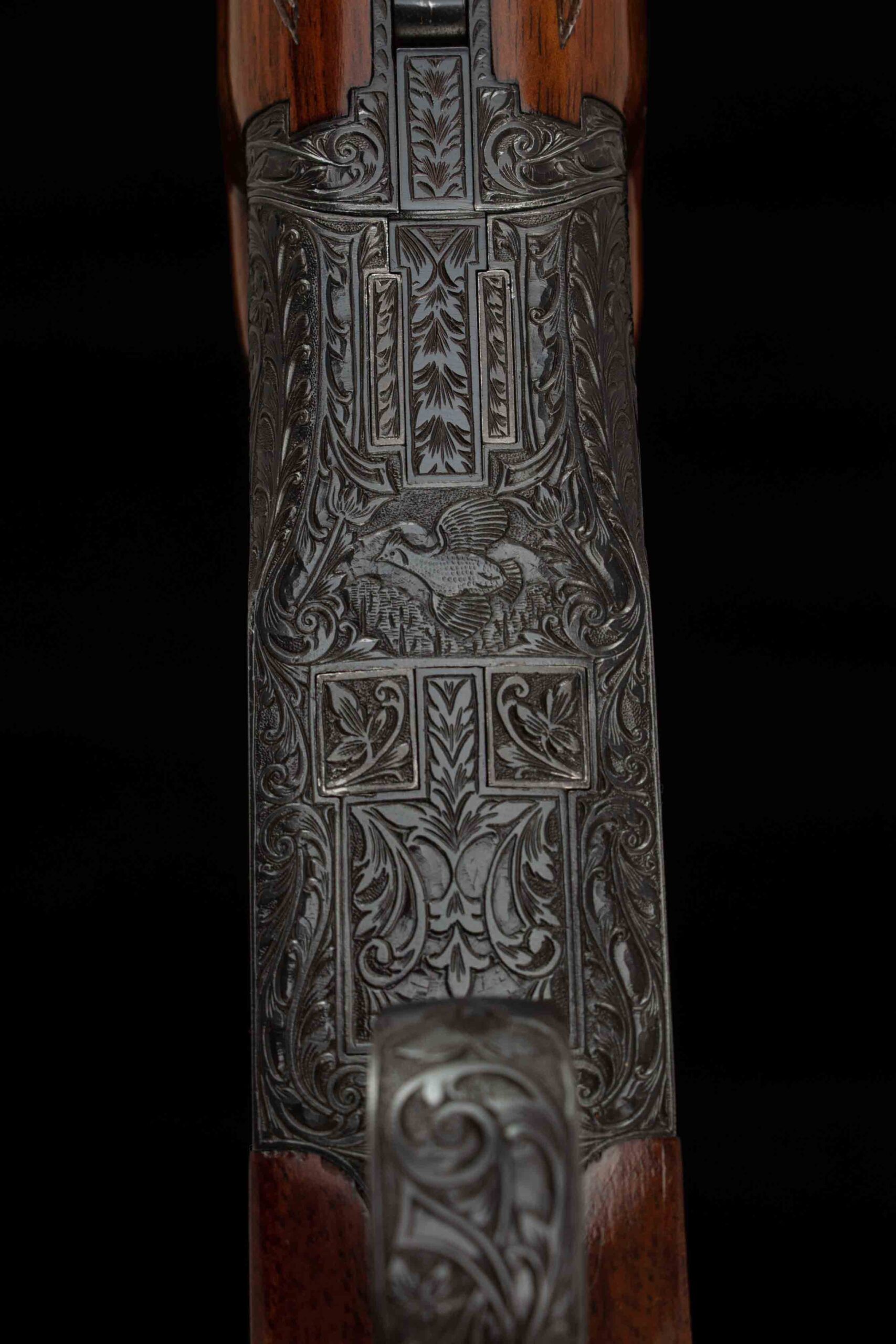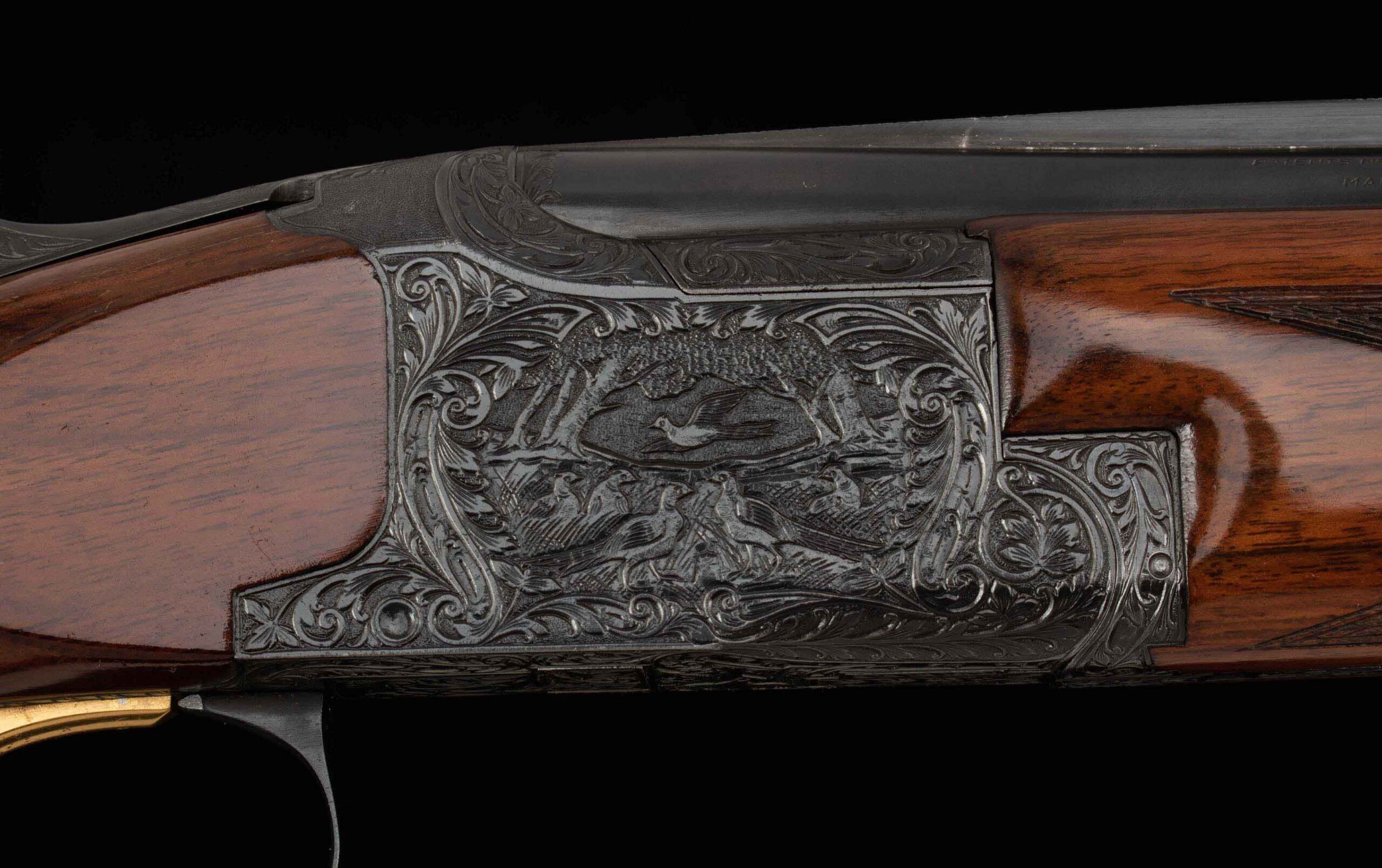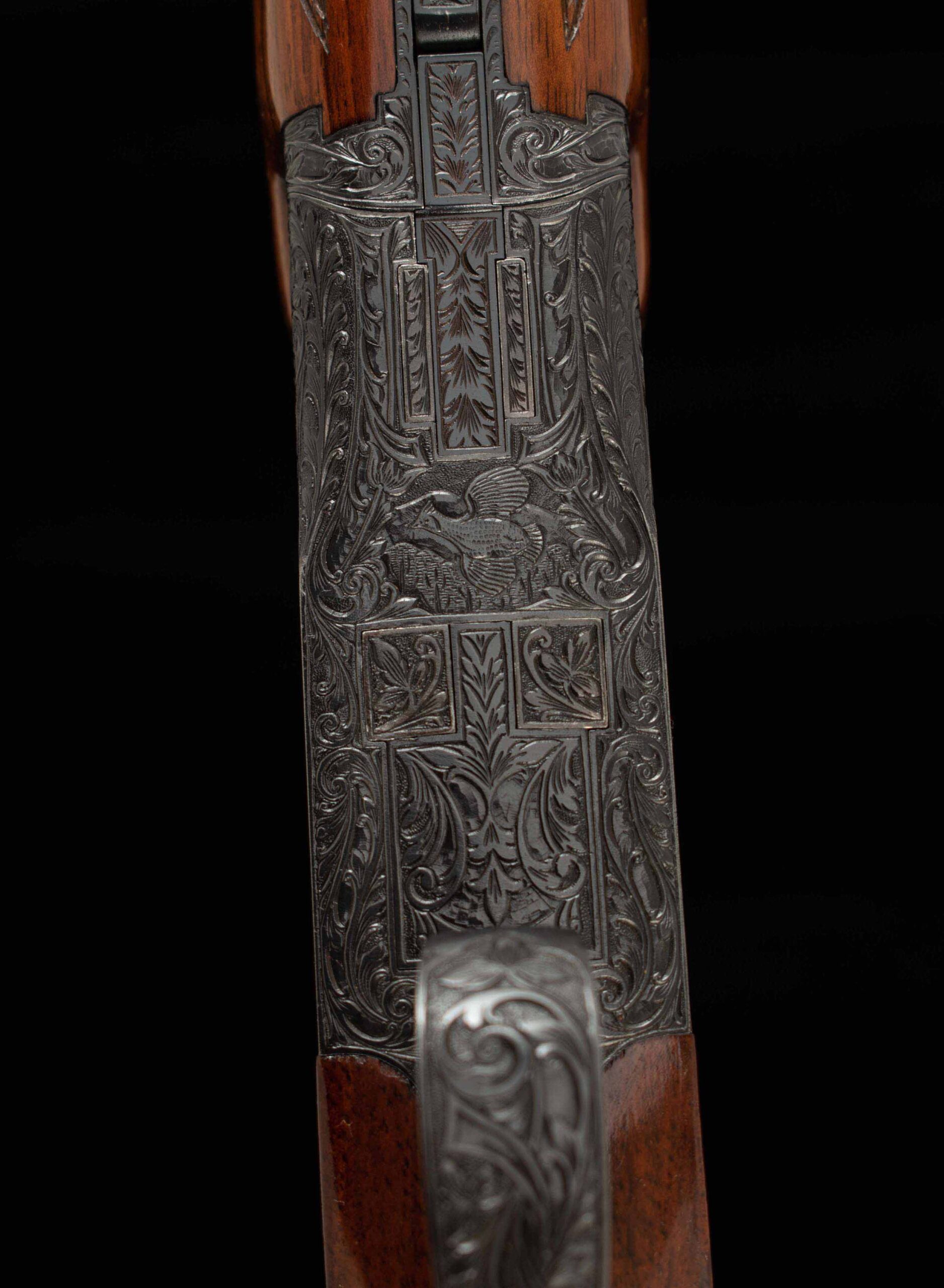 | Action: tight-Right of Center Ejectors: timed Receiver Condition: 100% engraved Screws: excellent Engraving: Upgraded – Deep chisel game scene Trigger Type: single Trigger Guard Color: 100%, engraved |