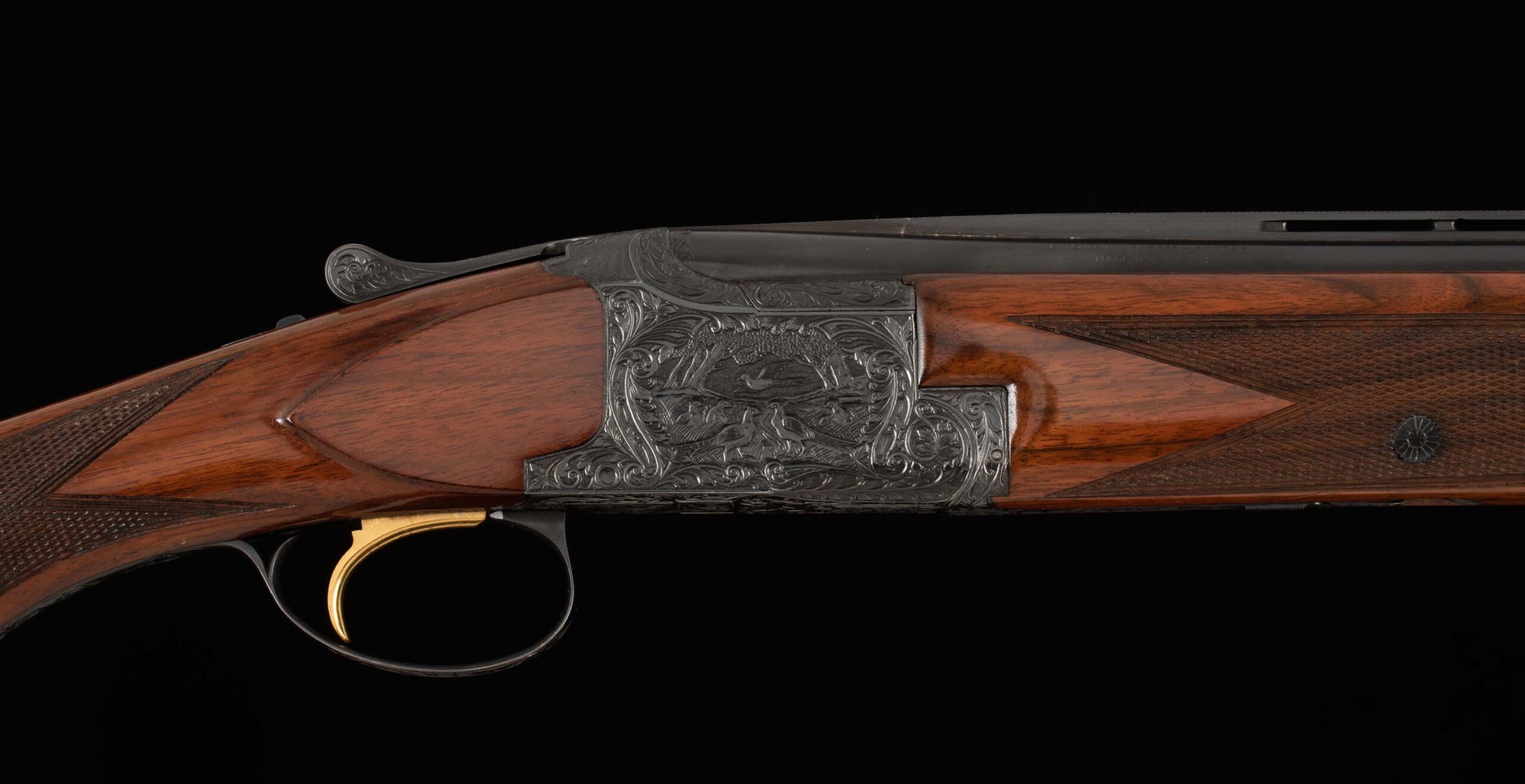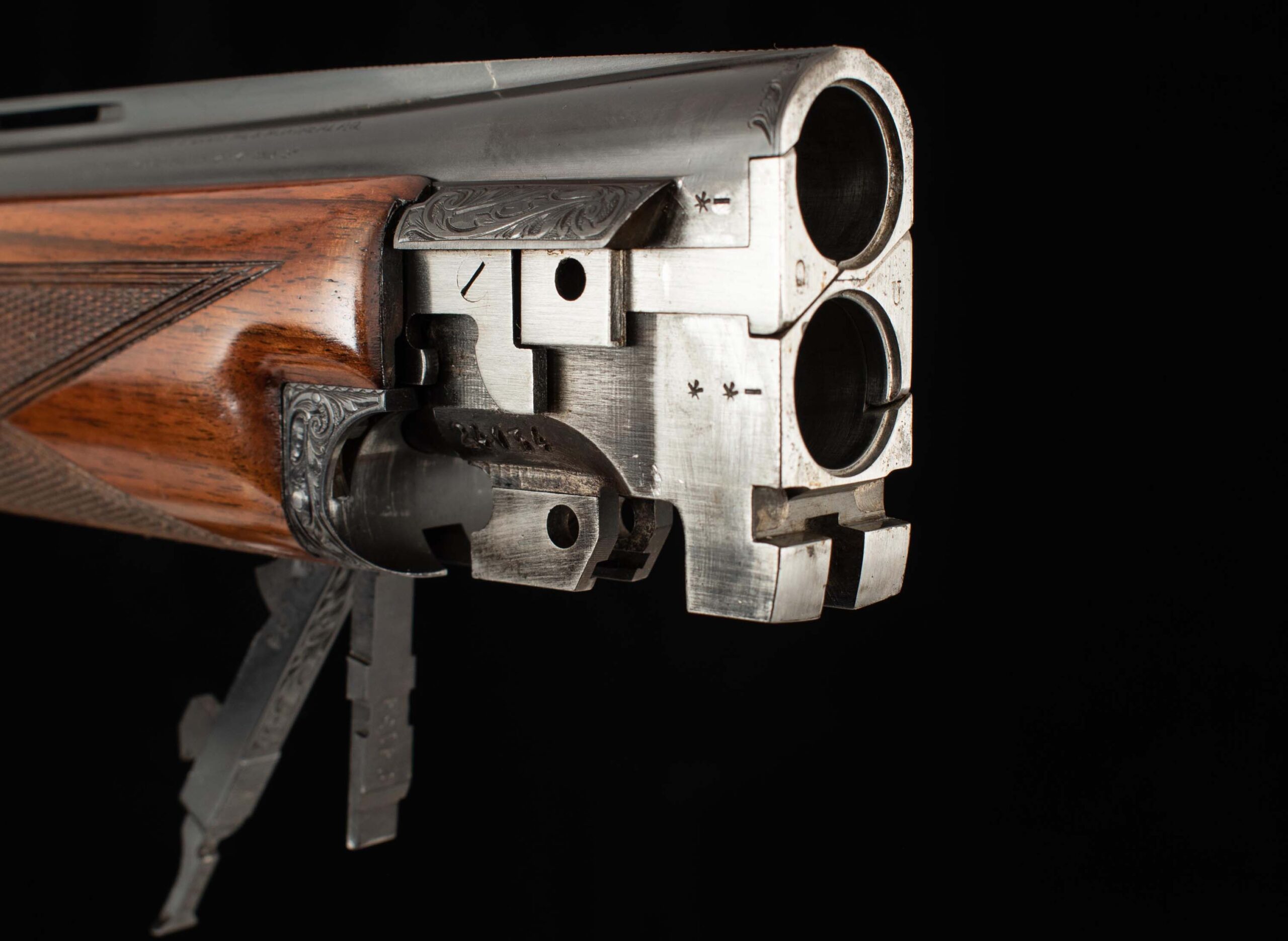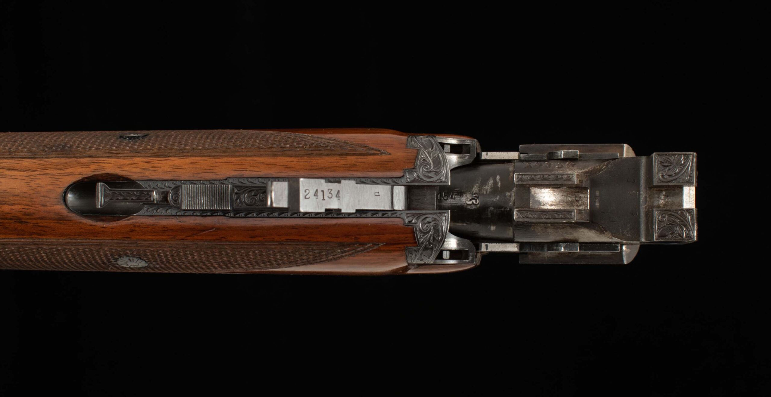 | Action: tight-Right of Center Ejectors: timed Receiver Condition: 100% engraved Screws: excellent Engraving: Upgraded – Deep chisel game scene Trigger Type: single Trigger Guard Color: 100%, engraved |