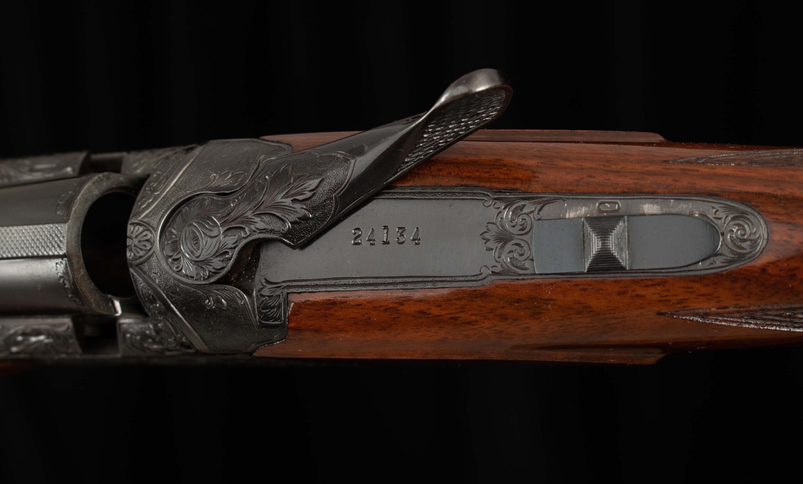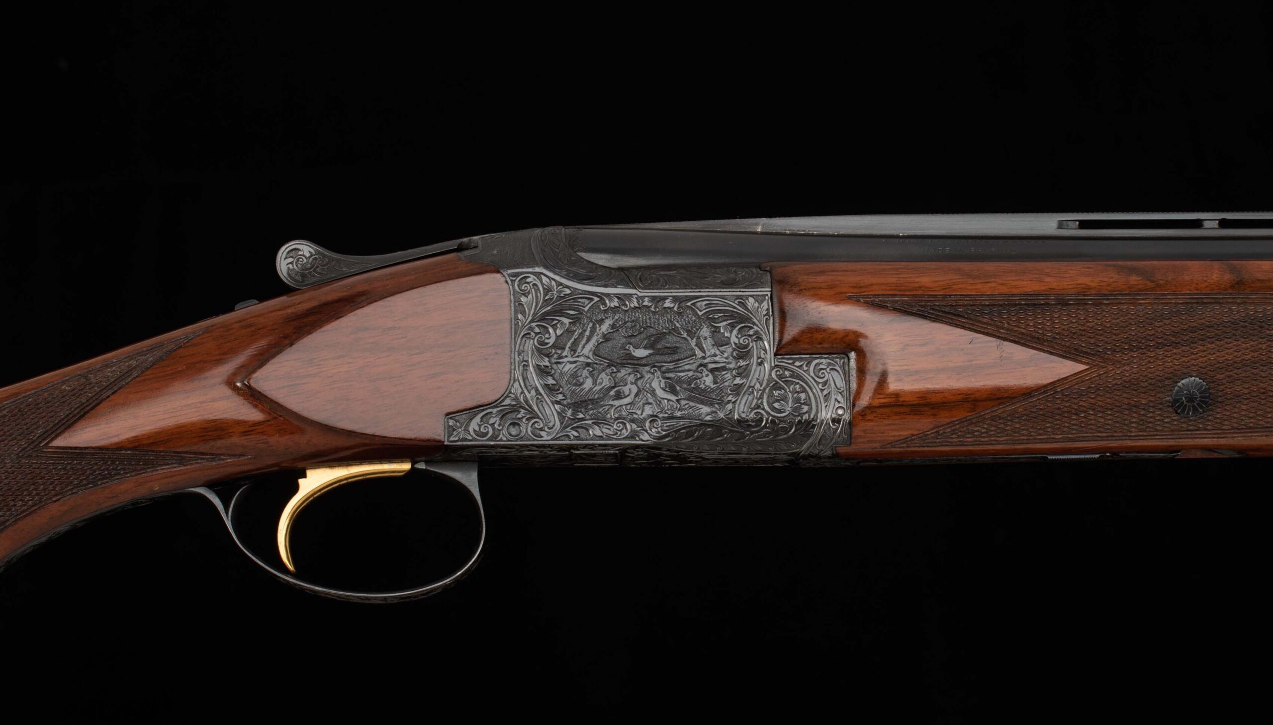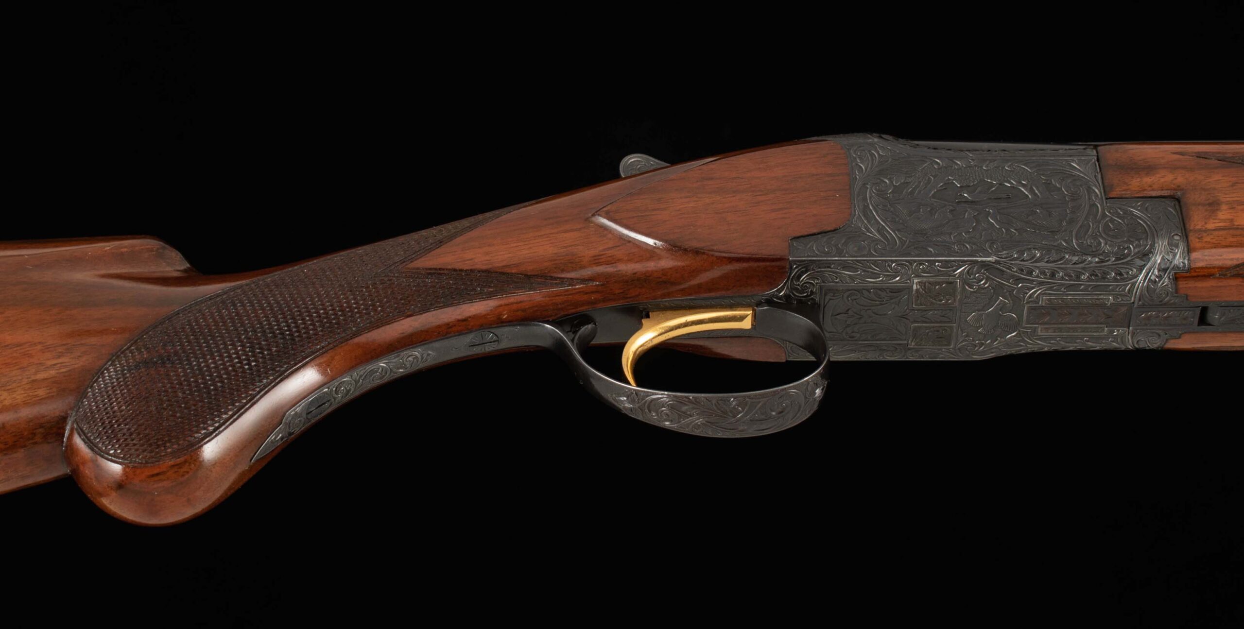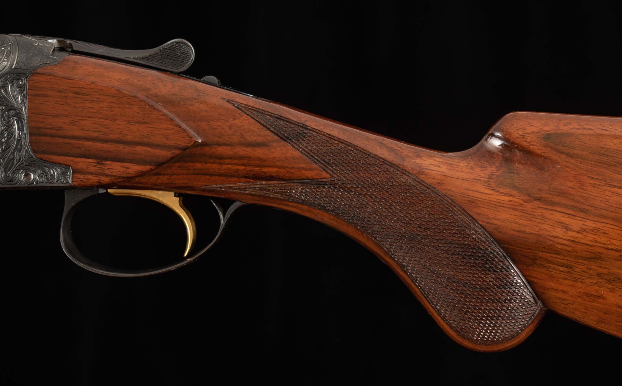 | Action: tight-Right of Center Ejectors: timed Receiver Condition: 100% engraved Screws: excellent Engraving: Upgraded – Deep chisel game scene Trigger Type: single Trigger Guard Color: 100%, engraved |