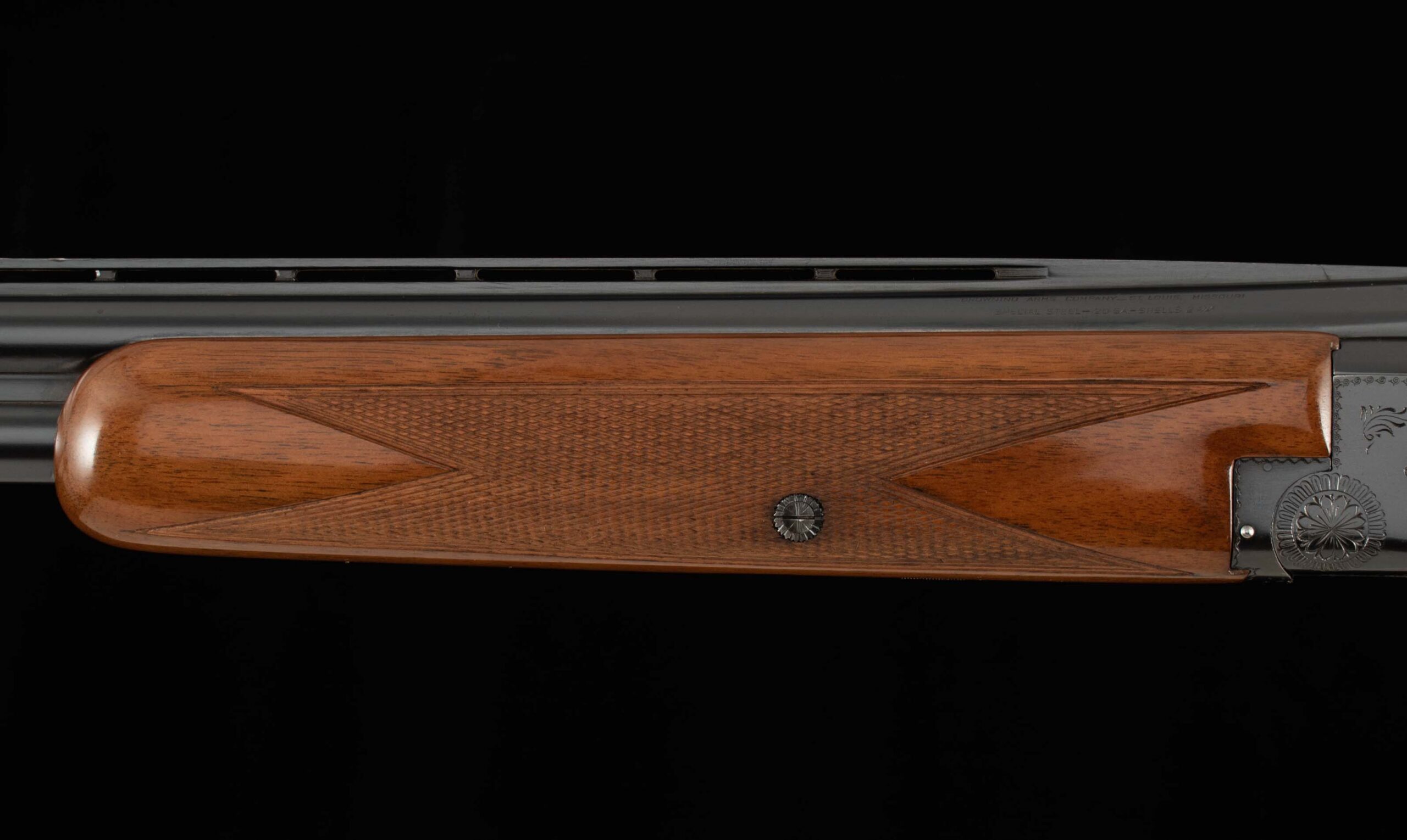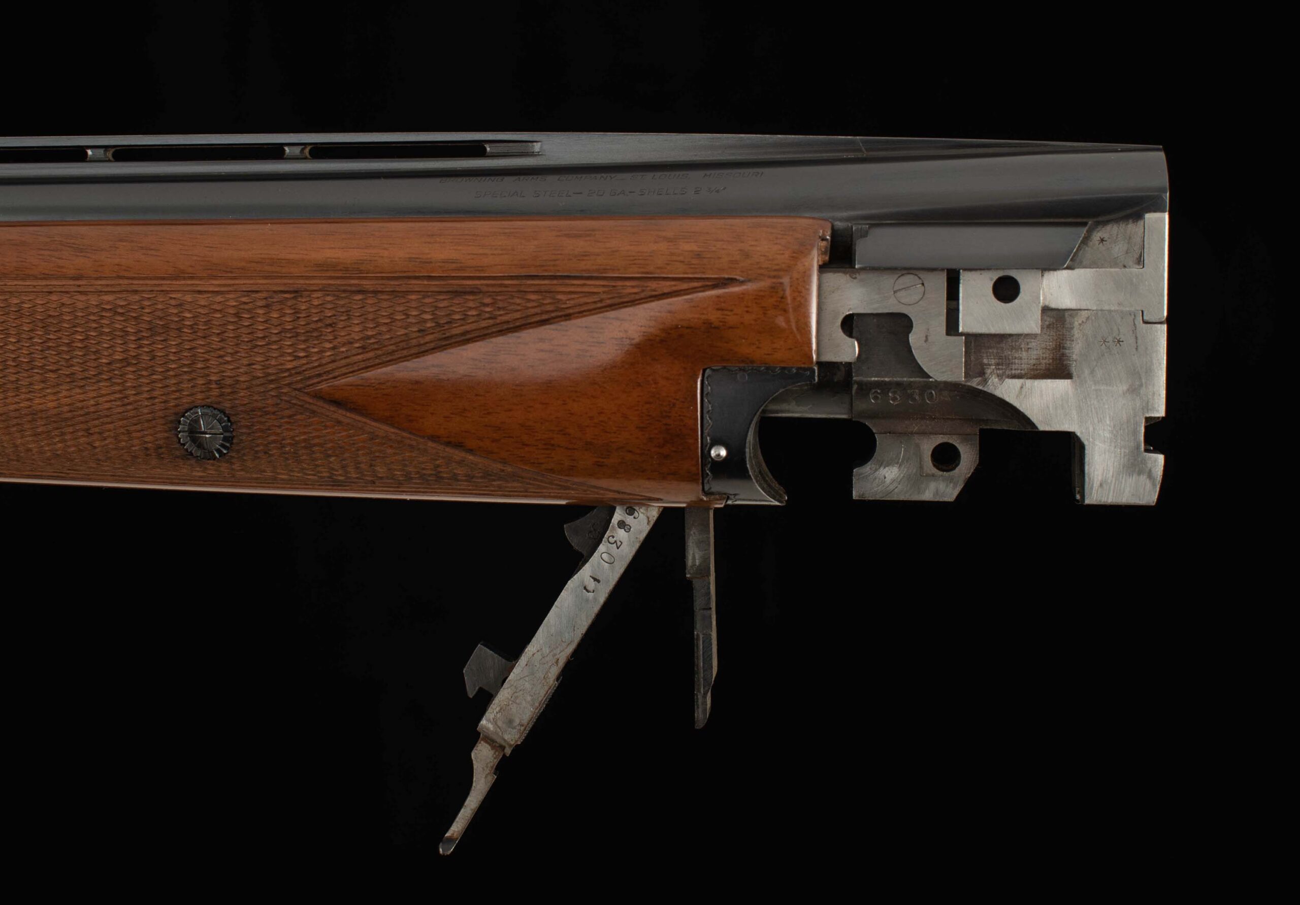 | General Specs: Browning, 1954, 20 Gauge, 6lbs. 8oz., Chokes IM/XF, LOP 14 1/4″, DAH 2 1/2″, DAC 1 5/8″ Serial Number: 6830