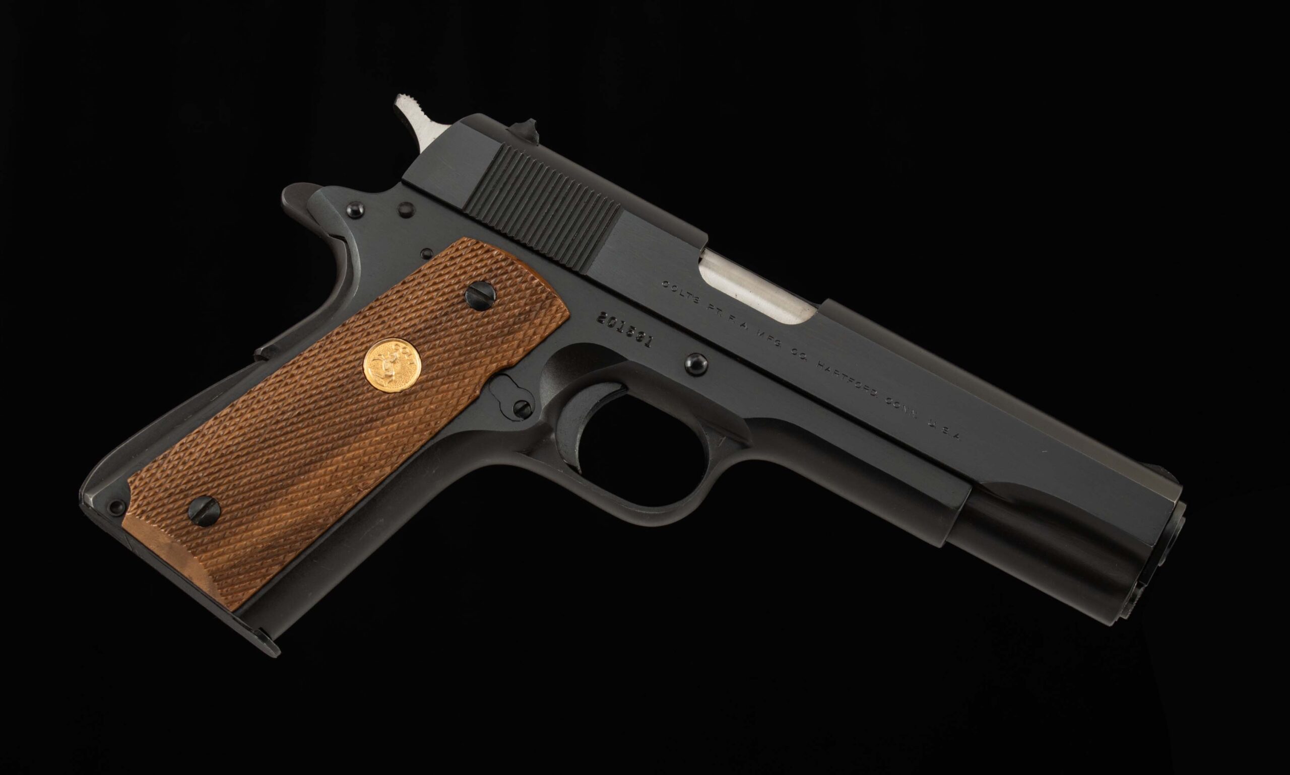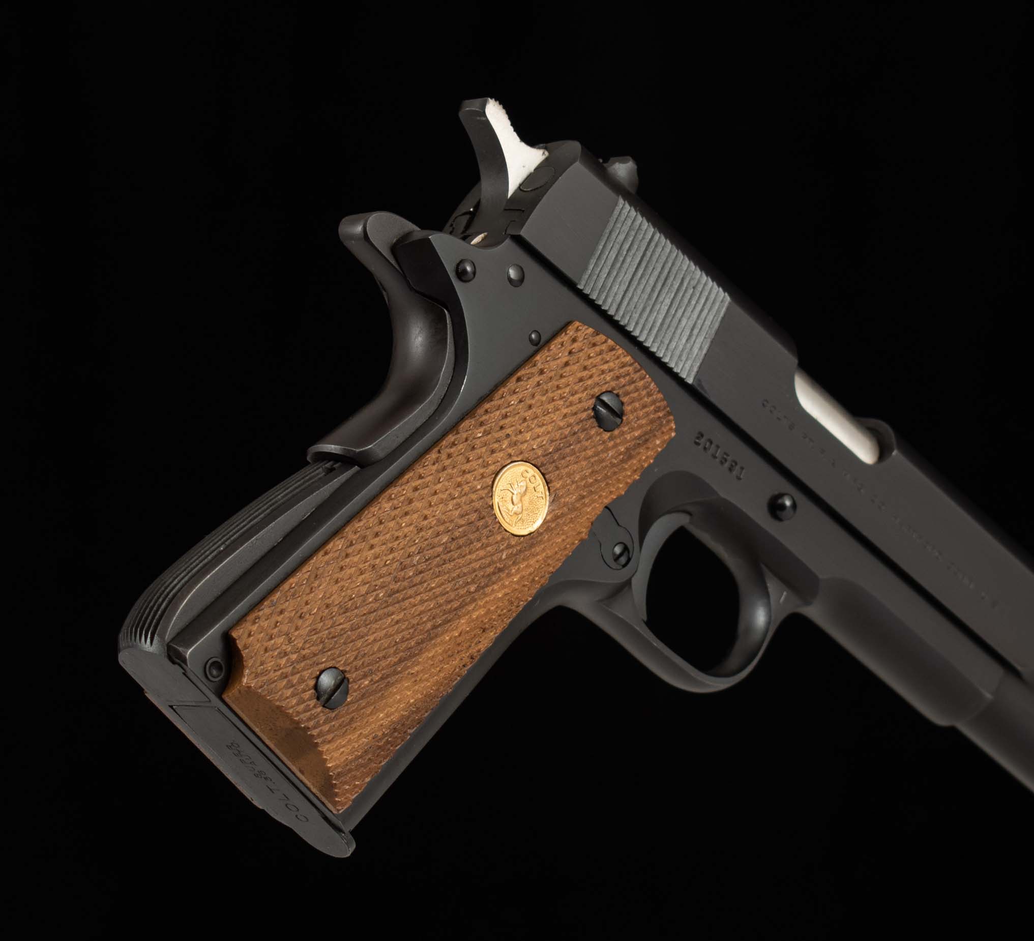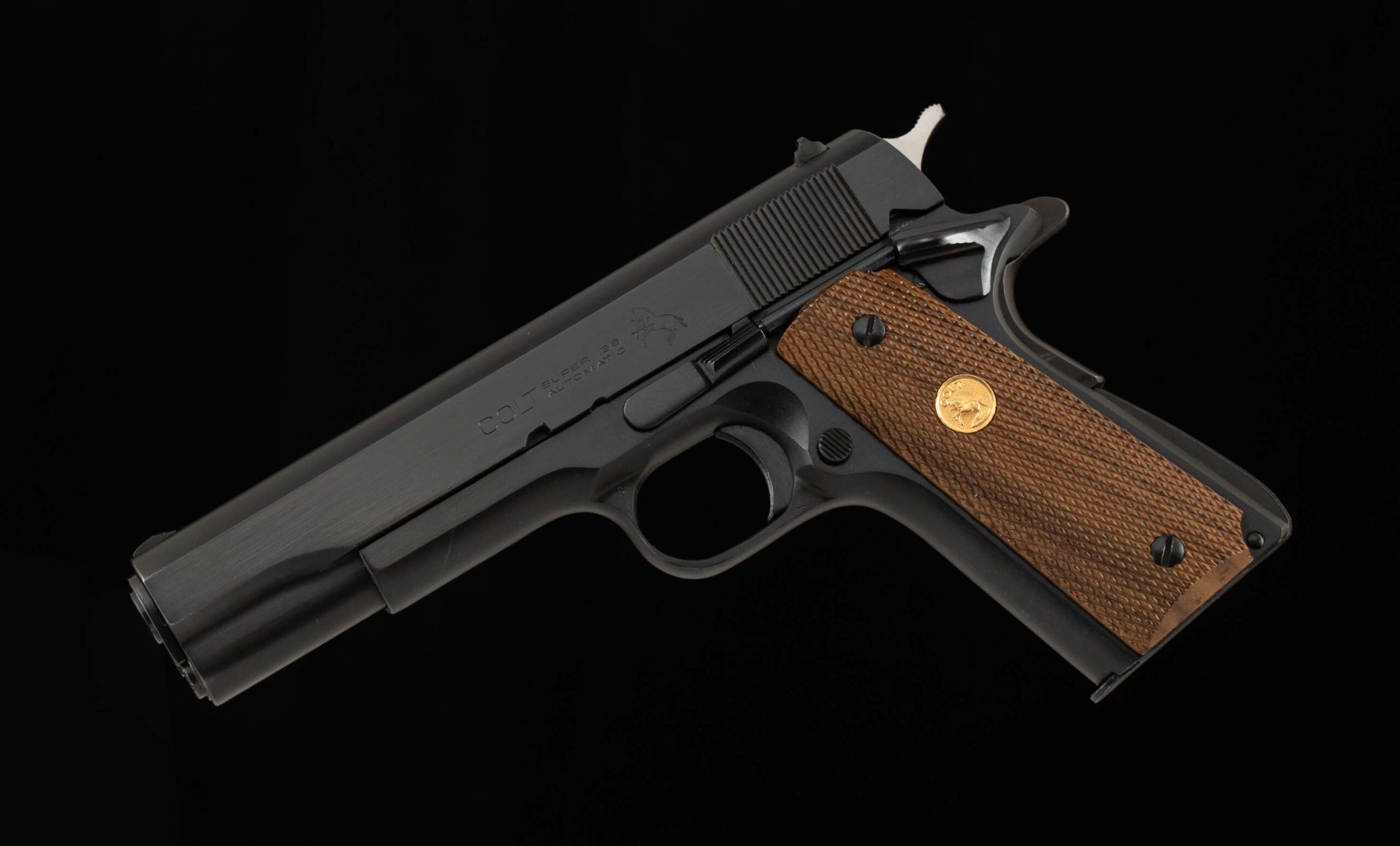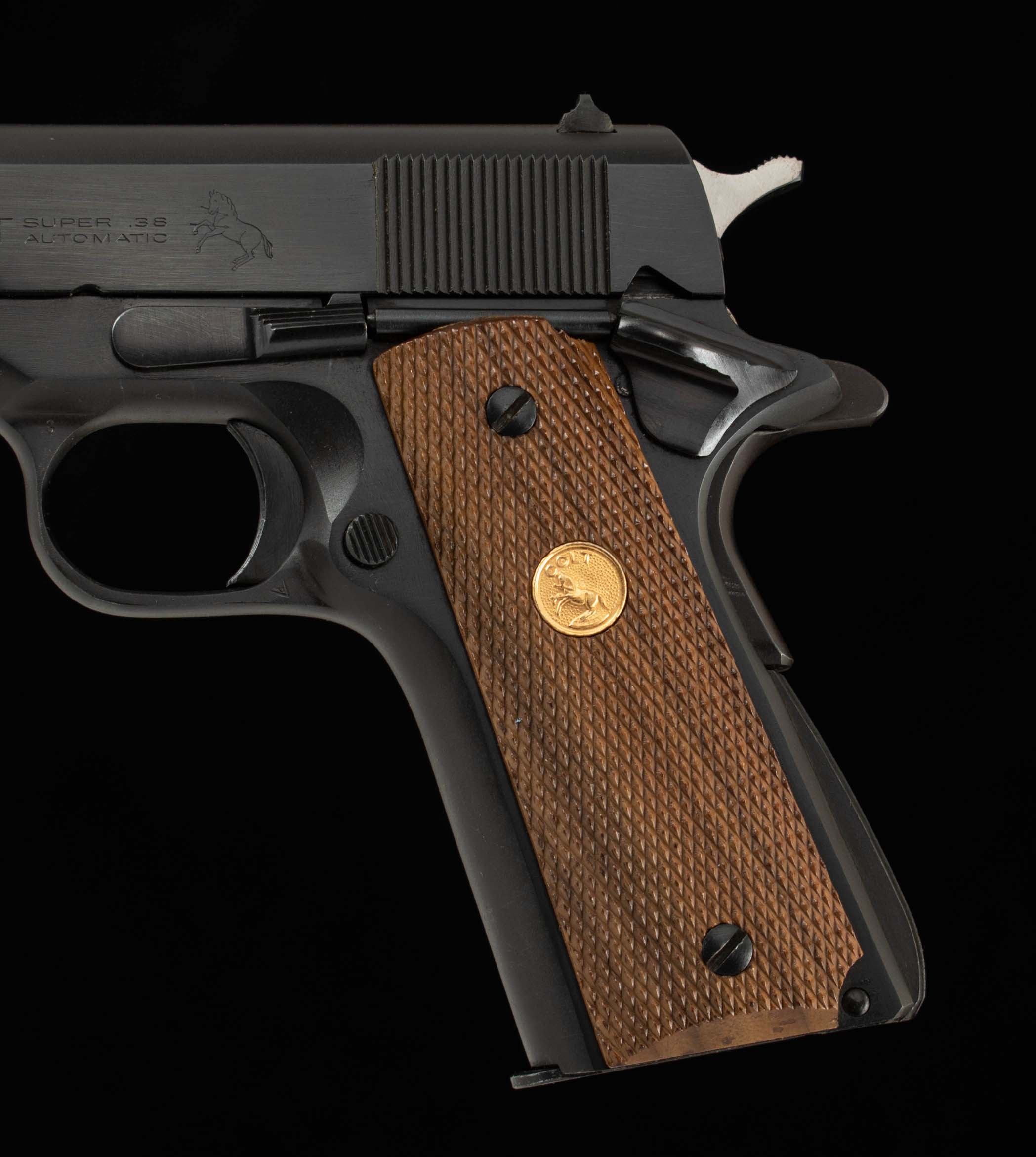 | General Specs: Colt, 1968, .38 Super, 39oz, 5″ Serial Number: 201591 Vintage Firearms is pleased to offer one of the most iconic pistols ever developed. Used by gangsters, soldiers, and law enforcement alike, adopted by dozens of countries, and is still widely manufactured and copied to this day. This 1911, manufactured in 1968, is chambered in .38 Super. This round was originally designed by Colt to combat organized crime in 1929, and ironically, became a favorite of the criminals it was meant to fight! The .38 Super is a well-balanced cartridge with a flat trajectory, good accuracy, and delivers high muzzle velocity relative to other interwar cartridges. This Colt Super is in 99% overall condition, with the receiver, barrel, and trigger guard all displaying 99% original finishes and a mirror bore. At some point in its history someone decided to upgrade its grips, swapping out the factory plastic grips for walnut grips with a Colt medallion. Through its many decades of ownership, its collected a few handling marks but is still in wonderful overall condition. Included with this Colt is its original box and three 9 round Colt magazines, giving you a great leg up as Colt mags can run you a pretty penny. With this package you’ll has everything needed to get started, just add the ammo! Please note, Vintage Firearms does have boxes of .38 super in stock, contact us for availability, ammo ships separately and will incur its own shipping cost. A great choice for those in the “know” or those who just want to add an interesting Colt 1911 to their collection. We at Vintage Firearms invite you to have a look at the detailed specifications and pictures below. Thanks for looking!