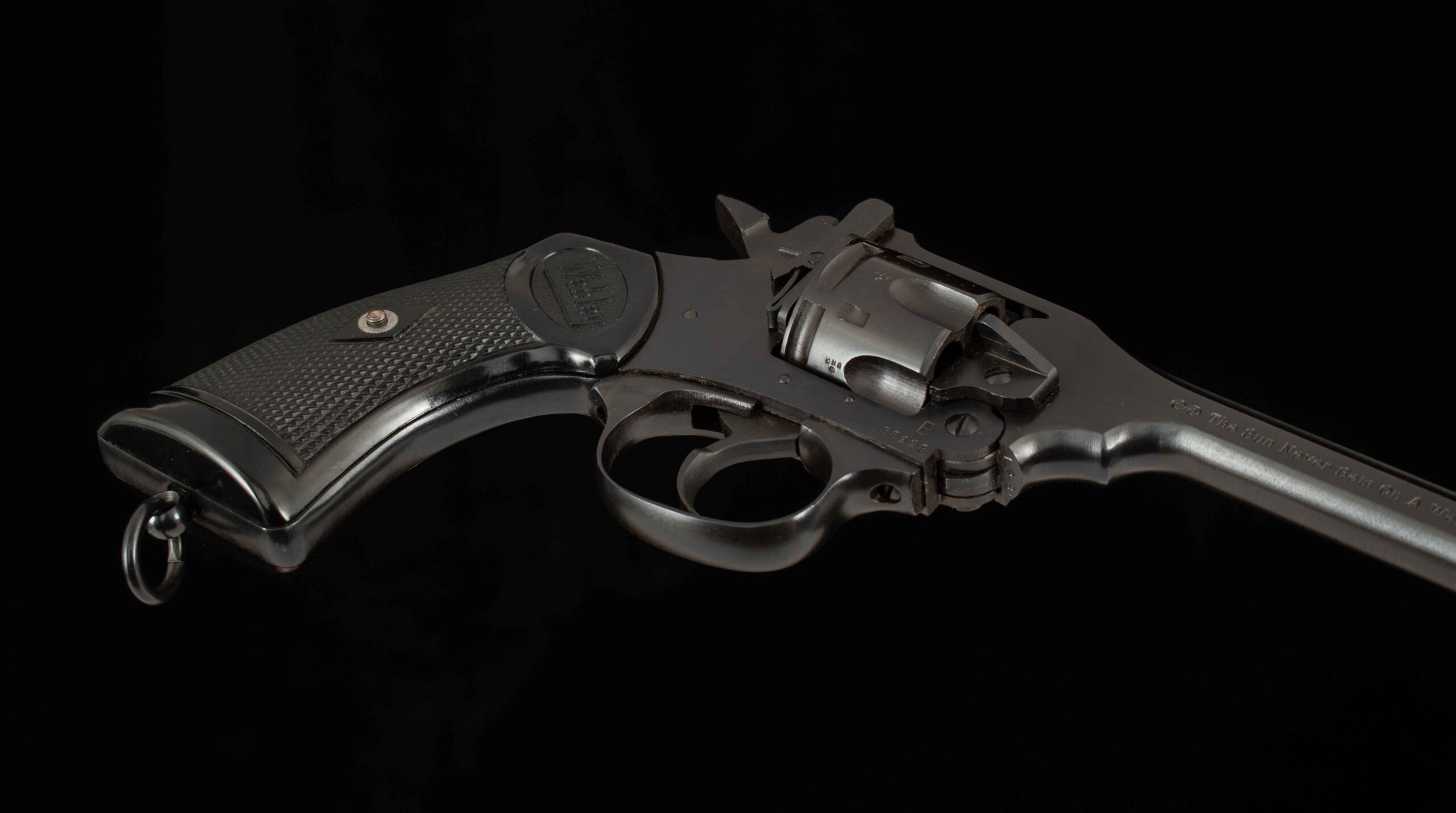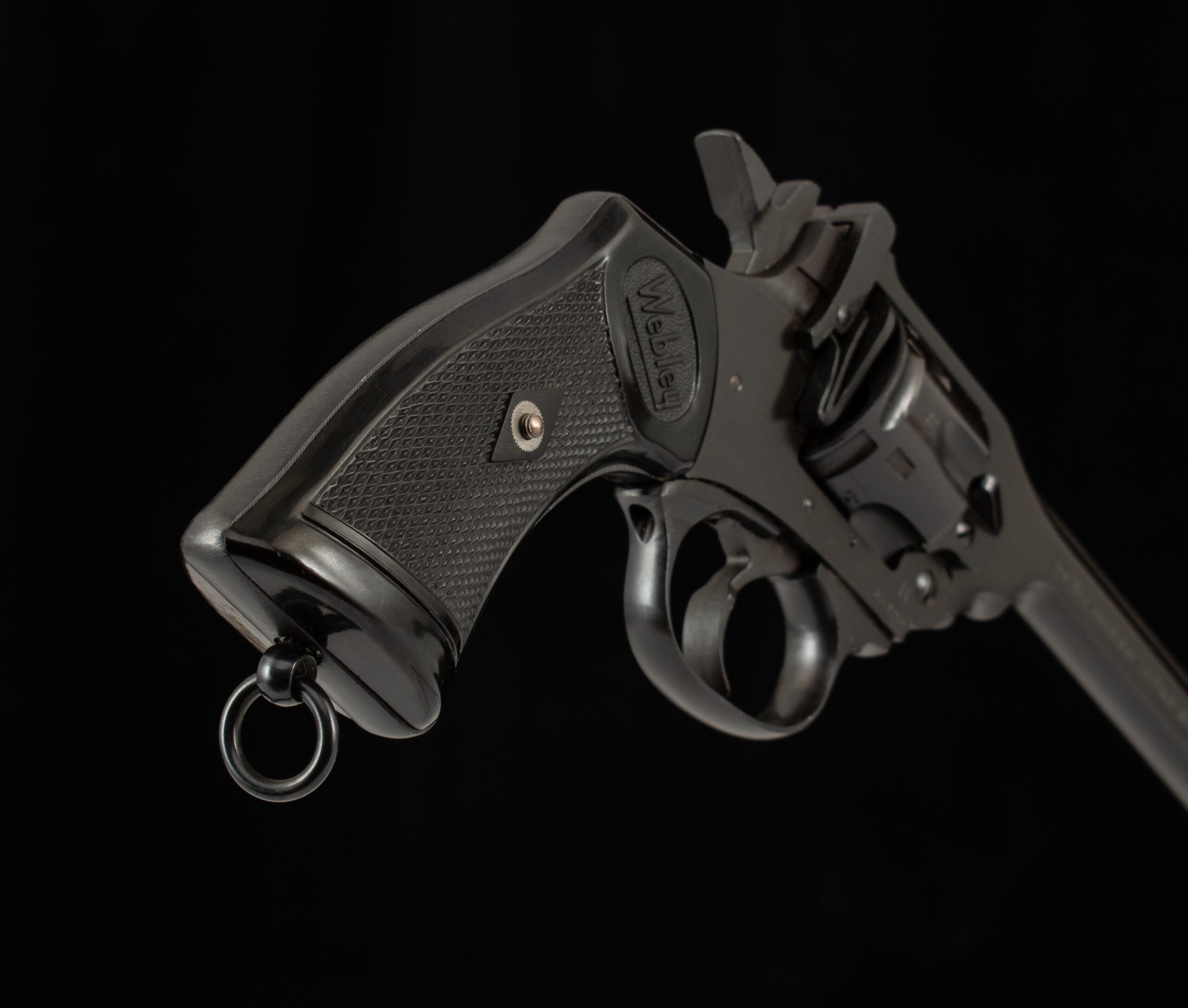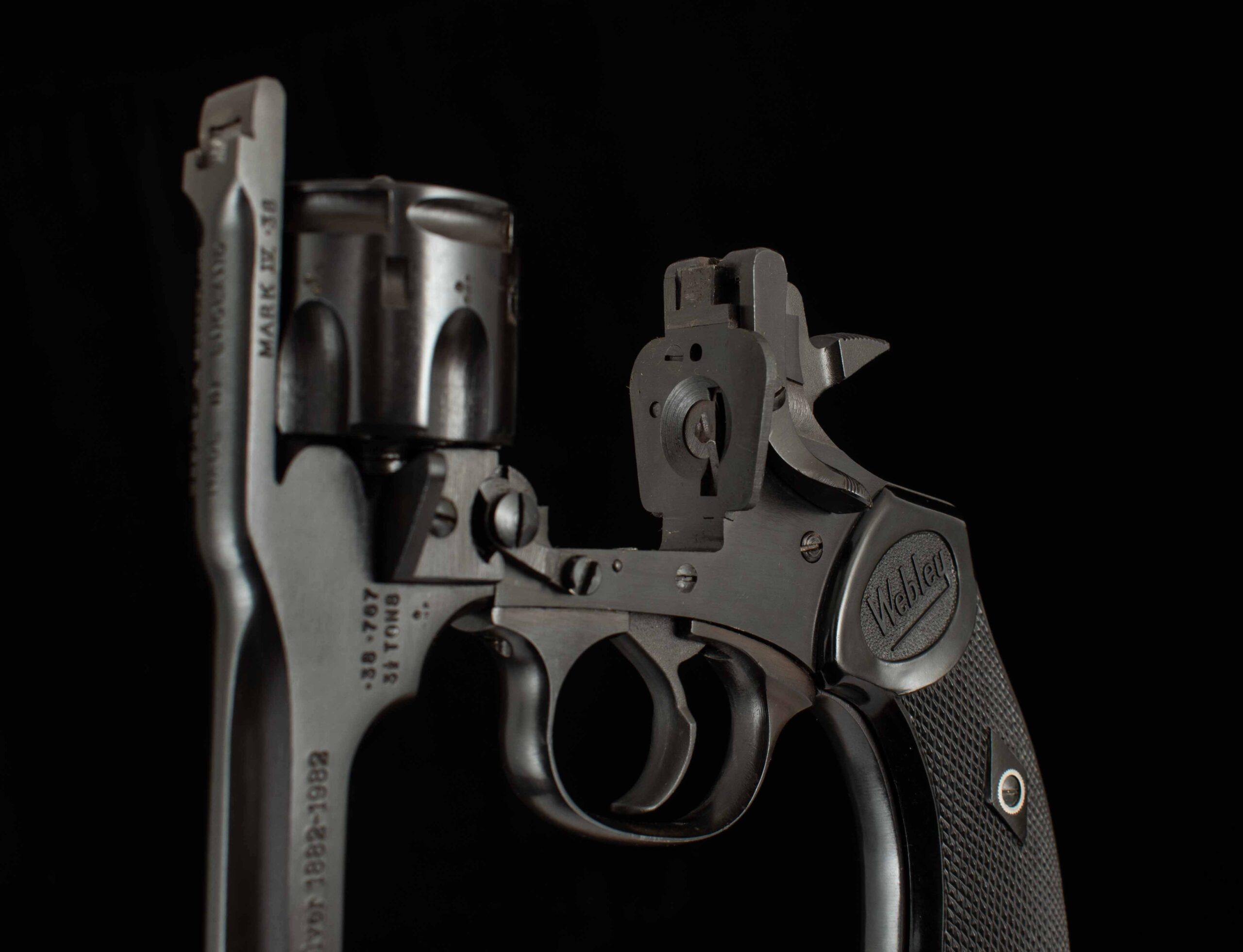 | General Specs: Webley & Scott, 1982, .38 cal, 28oz. 5″ Serial Number: 88128 Vintage Firearms is pleased to offer this Commemorative Webley Mark IV; the Webley revolver was adopted as the British service revolver in 1887 and served that role until 1963. The Mk IV was adopted in 1899 and rose to prominence in the Boer War and thus is occasionally referred to as the “Boer War” Model. The Webley Revolvers earned the moniker of the “Webley Self-Extracting Revolver” for its top break action which ejects spent casings, thus quickening reloads. As a last hurrah Webley & Scott released the Commemorative Webley Mark IV, for the 100th Anniversary of the Mk IV, and one of the last 250 ever made. This example is in mint condition and appears unfired. It comes with its original wooden display case, which has done its job well accumulating a few dings and scratches throughout the years. The blued frame and black Webley grips suit this classic revolver nicely and sends the Mark IV off with dignity. These Special issue Webley’s are a rare sight on the internet so if your Webley collection is missing this “last Hurrah” act quickly and make it the center piece of your display. We at Vintage Firearms invite you to have a look at the detailed specifications and pictures below. Thanks for looking!