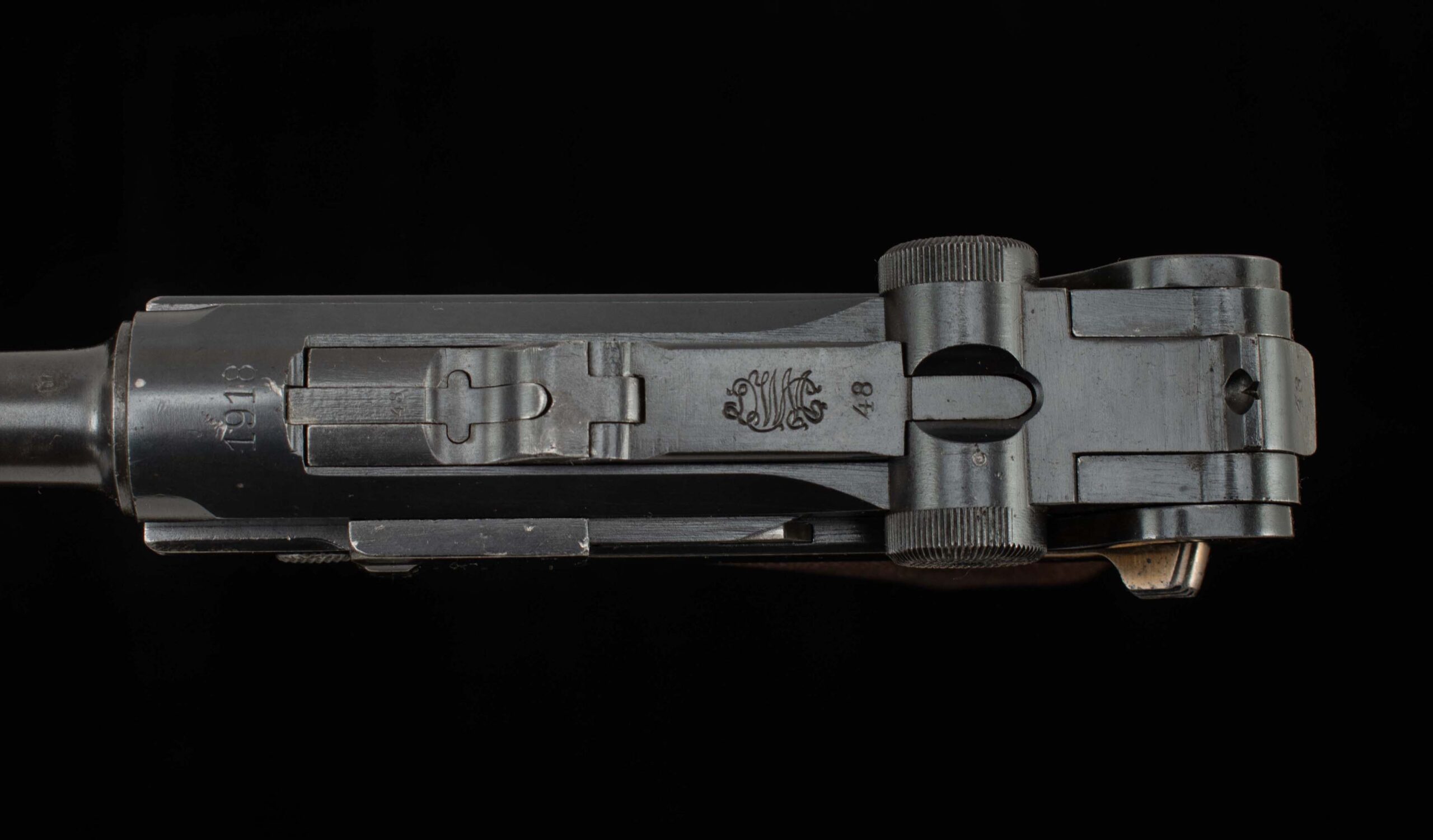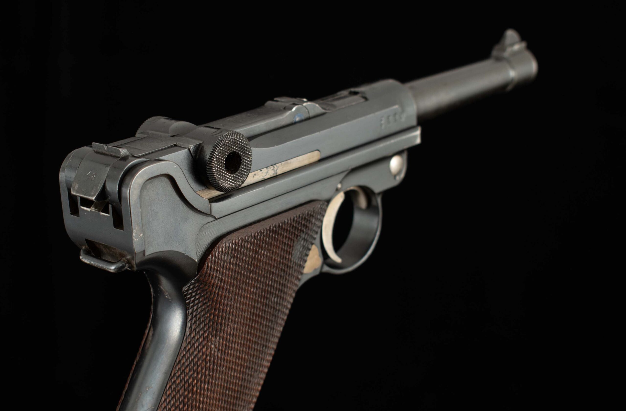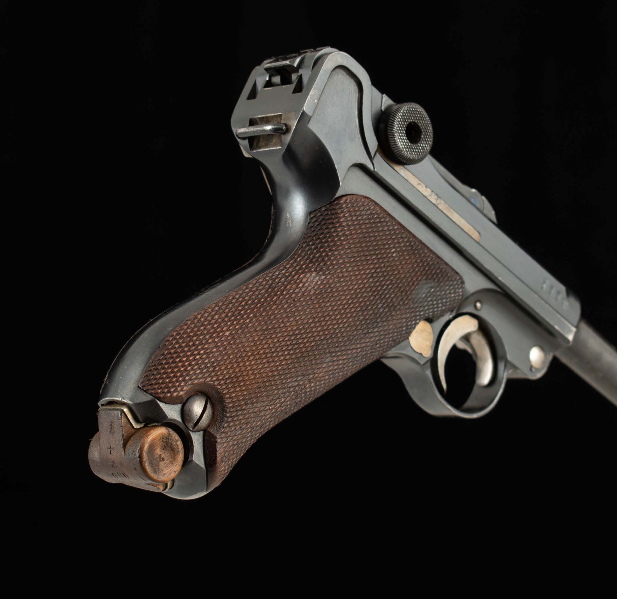 | General Specs: DWM, 1908, 9mm, 30oz., Barrel 4″ Serial Number: 59913