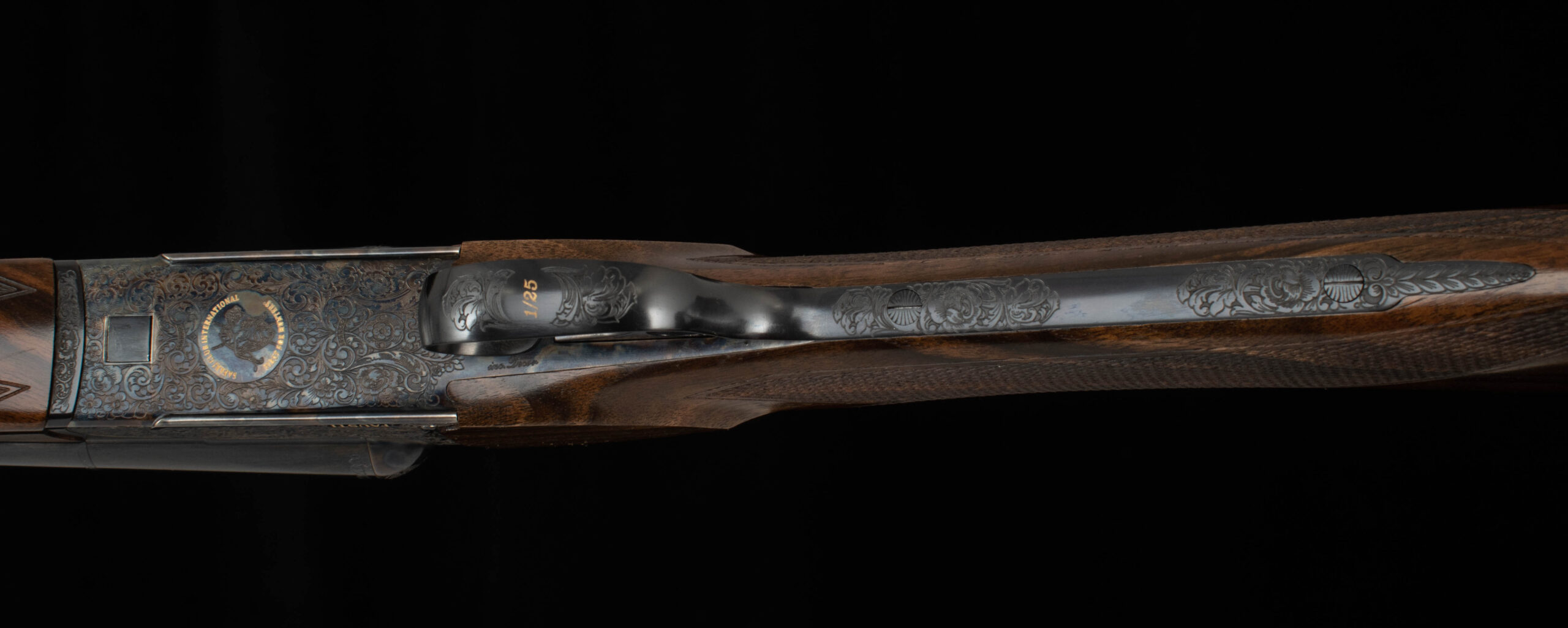 | Action: tight-Way Right of Center Ejectors: timed Receiver Condition: 100% Factory Case Color Screws: superb Engraving: crisp, sharp Trigger Type: single-crisp Trigger Guard Color: 100% with gold wire 1/25 on bow |