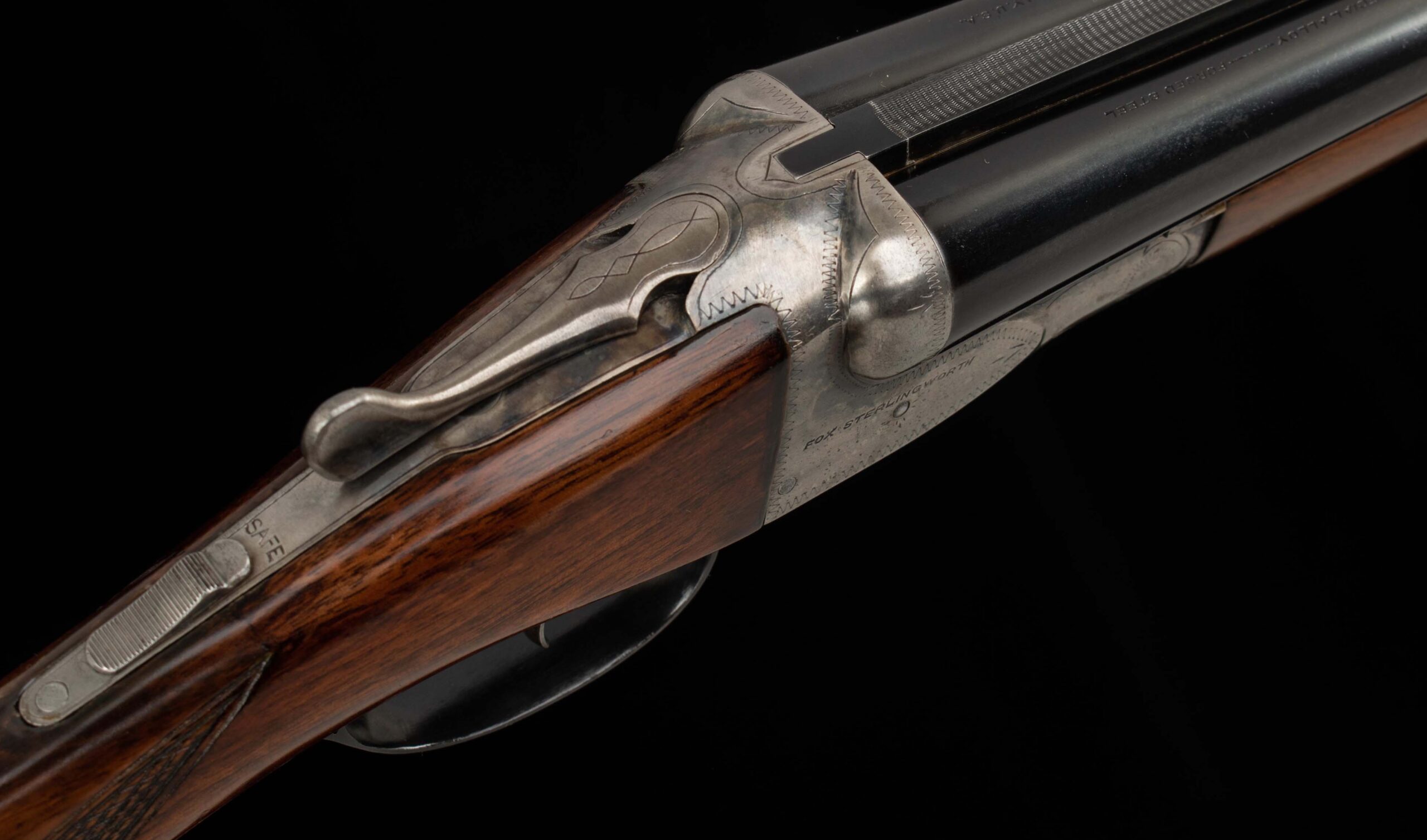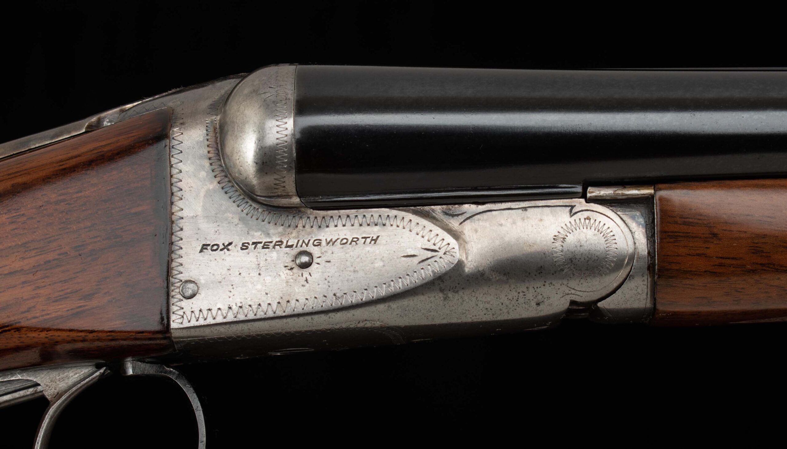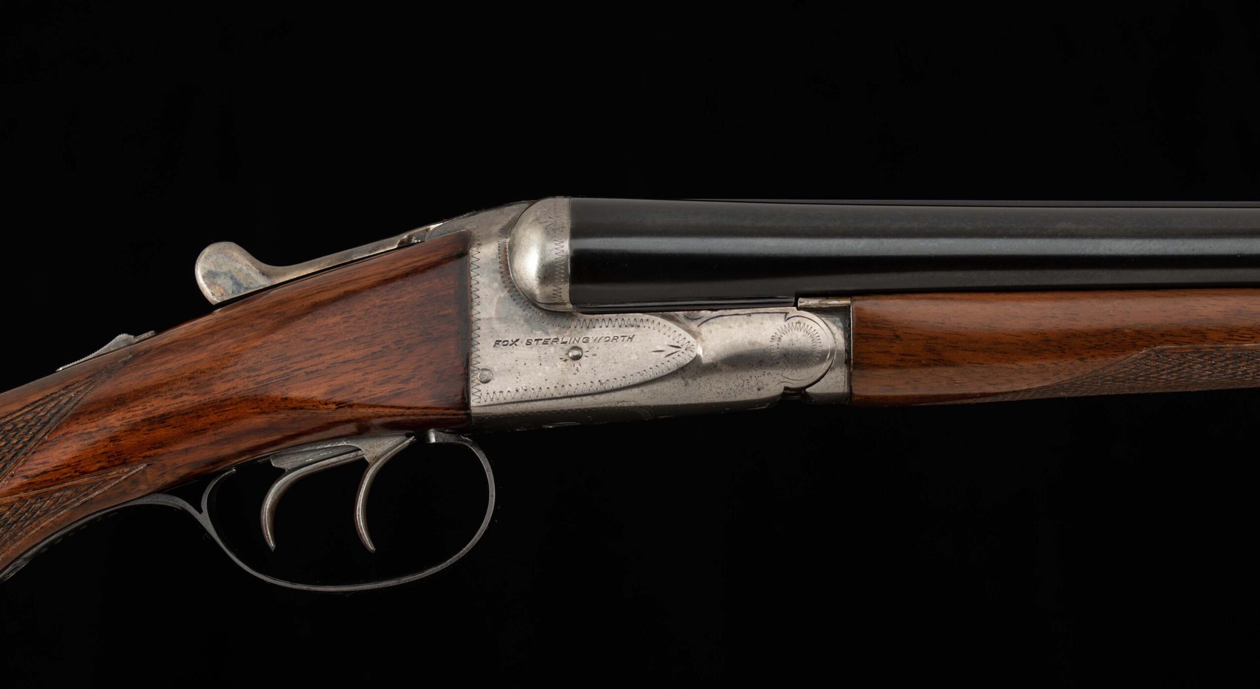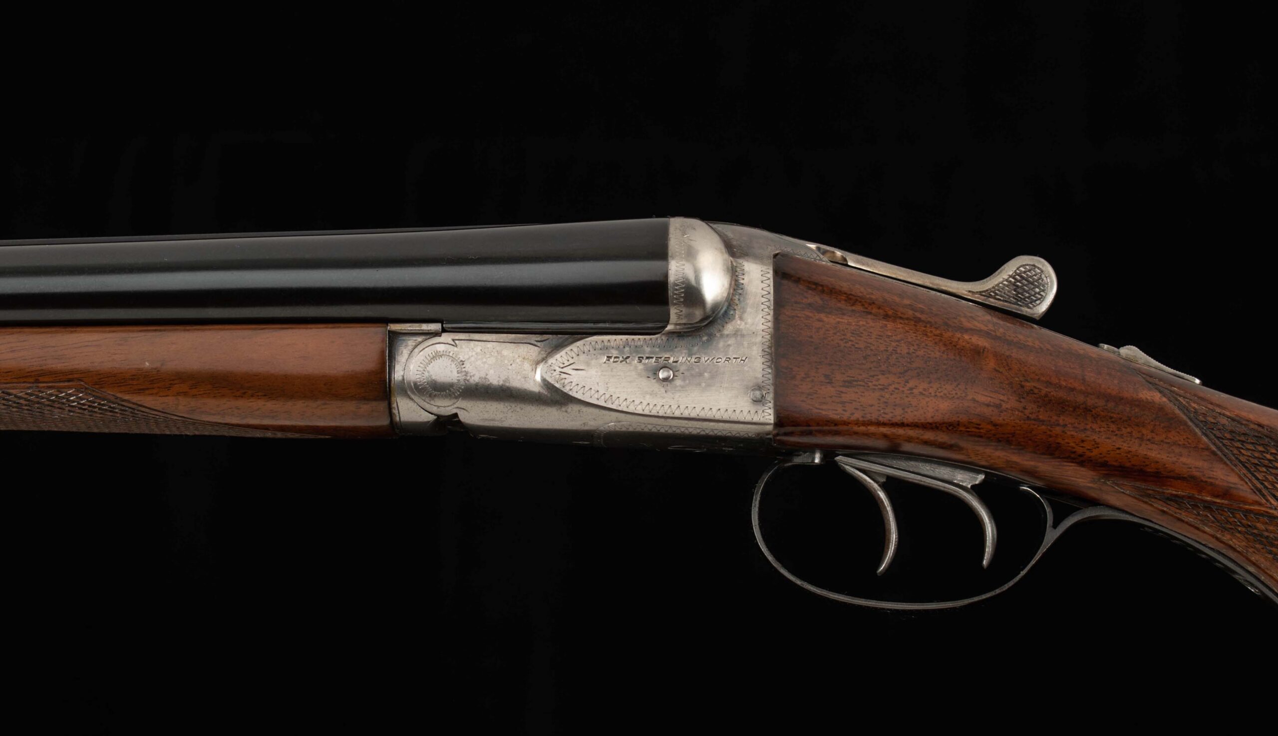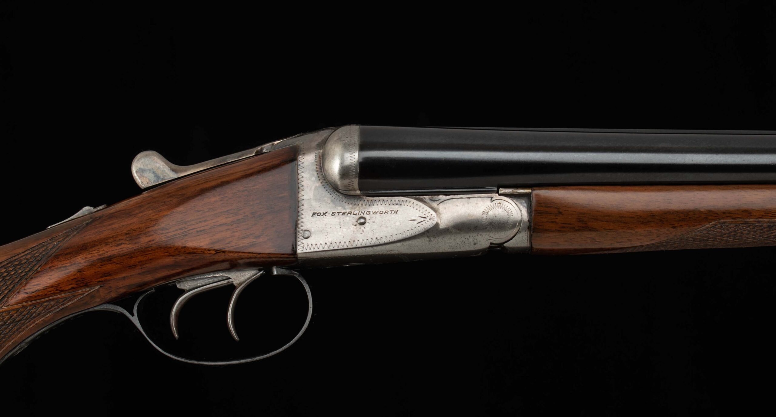 | General Specs: Fox, 1938, 16 Gauge, 6lbs. 4oz., Chokes LM/F, LOP 13 5/8″, DAH 2 13/16″, DAC 1 11/16″ Serial Number: 375156