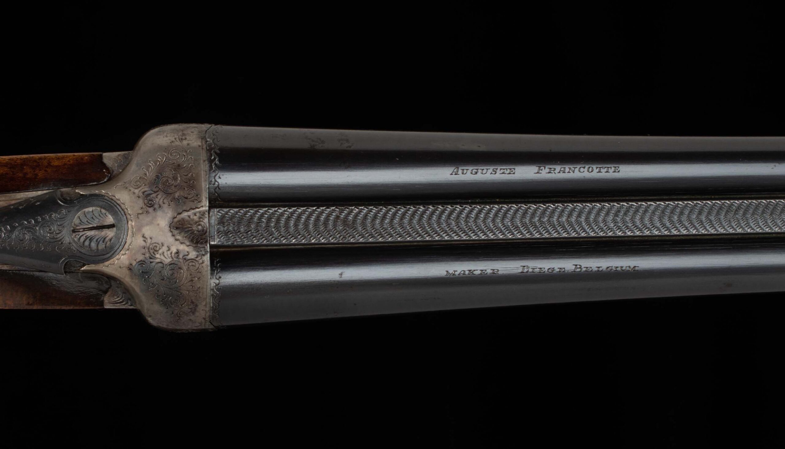 | General Specs: Francotte , c1936, .410 Bore, 4lbs. 10oz. Chokes CYL/M, LOP 14 5/16″, DAH 2 1/2″, DAC 1 3/8″ Serial Number: 8013 Auguste Francotte is world famous as a high-quality firearms maker from the gun making center of Liege, Belgium dating back as far as 1805 and doing business into the early 21st century making fine shotguns with price tags starting at $18,000. Francotte is a brand recognized and used by heads of state, business tycoons, and in some cases, the fortunate “Average Joe”. They are nicely built side by sides with a solid reputation for graceful looks and handling characteristics as well as rock solid dependability. This fine Francotte is a very nice find, a boxlock extractor with 27 1/2″ barrels and an English gripped stock of nicely figured French walnut. Built circa 1936, serial number 8013 is in wonderful overall condition. The barrels have mirror bores, are choked Cylinder and Modified, and ribs that ring like bells and are chambered for 2 1/2” shells. An honest little double, it has some field marks from its adventures. It comes fitted with a straight/splinter stock configuration capped off with a wooden butt plate. However, if you’d like to upgrade to a purdy style pad contact us and we’ll be happy to add one to this little Francotte, all alterations to purchased guns are given priority, a Purdey pad takes about a week. A unique quality of this little Belgian double is that its built upon a .410 frame as opposed to a 20-gauge frame, thus you get a true scaled .410 double. The receiver retains 95% factory case color with engraved borders and scroll still sharp from the engraver’s chisel. The action features delicate side clips, superb screws and wood to metal fit including a rebated frame; both hinge and action are tight with the lever sitting center. This is a gorgeous Belgium gun with chokes that cover a wide range of shooting scenarios – ideal for game like quail, Woodcock, or even pheasant if you’re a good shot! The dainty little gun weighs just 4lbs 10oz. making an ideal gun for long days in the woods and uplands, a truly versatile gun from one of the best Belgium gun makers. If you like peewee shotguns, don’t miss out on this fine little Francotte. Vintage Firearms invites you to have a look at the detailed specifications and pictures below. Thanks for looking!