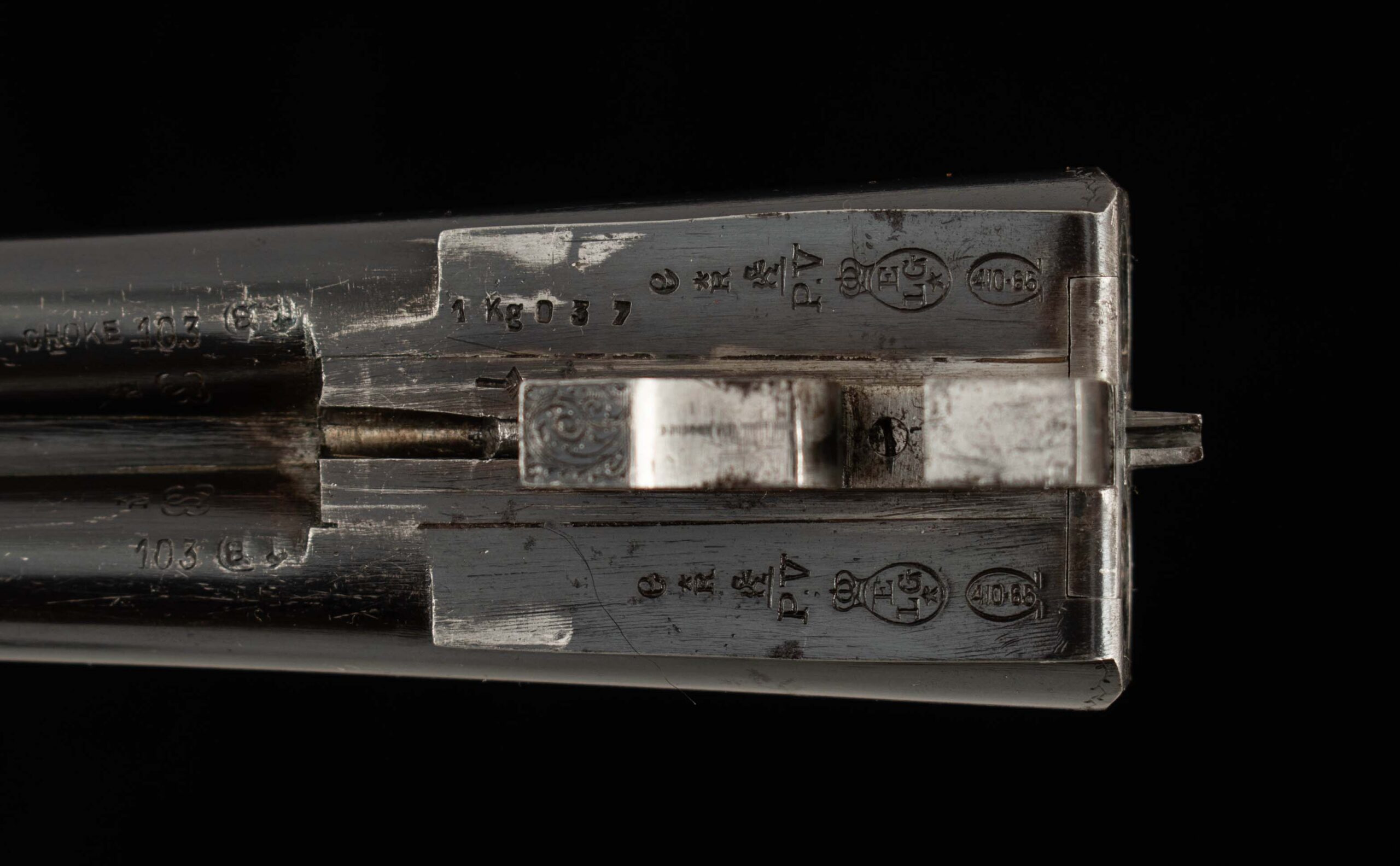| Barrel Length: 27 1/2″ Chokes: .001/.013 CYL/M Bores: mirror Bore Diameter: .409/.408 % Blue: 99% factory finish Chambers: 2 1/2″ Ribs: tight-bells Sights: front brass |