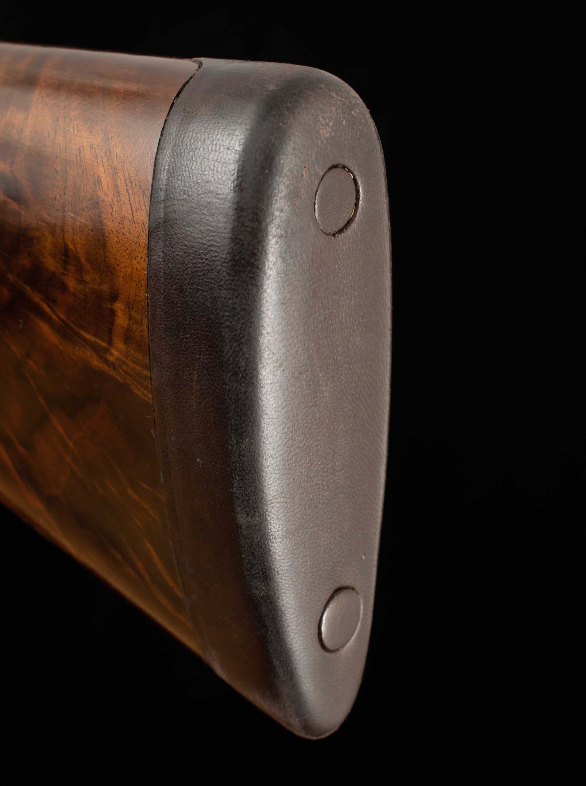Butt Treatment:   Purdey style leather covered pad, with widows peak