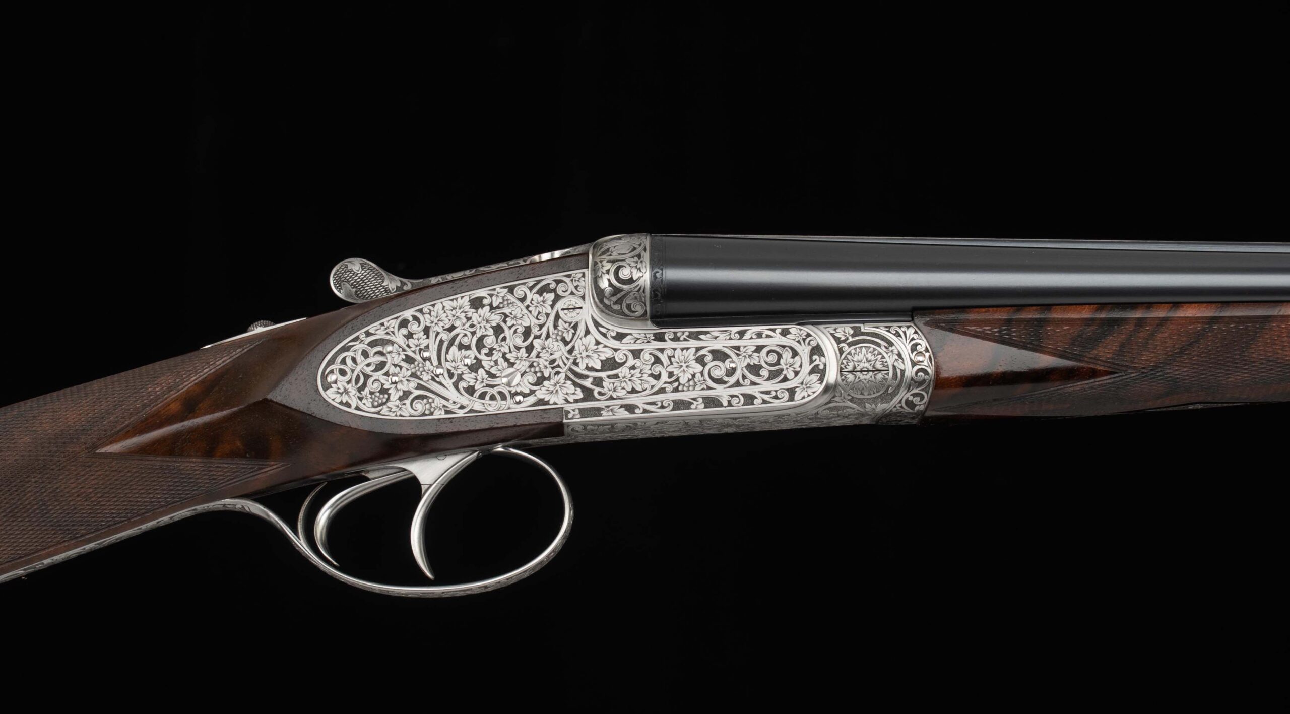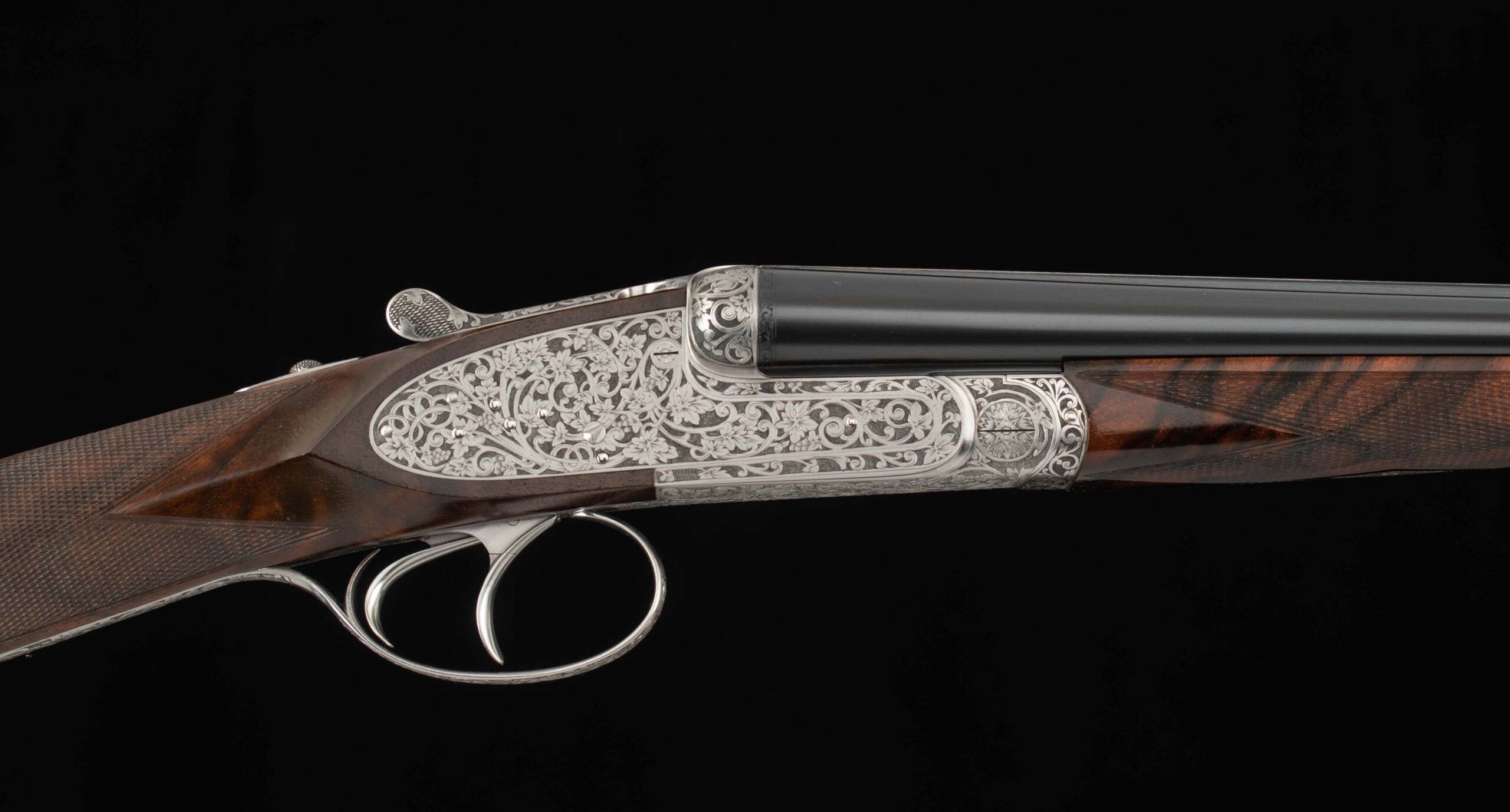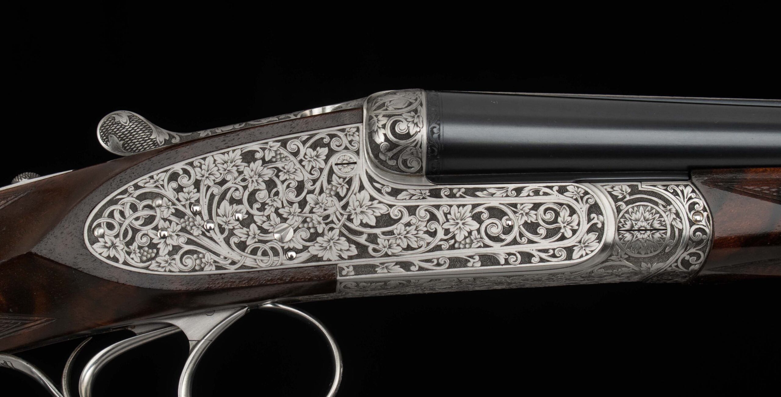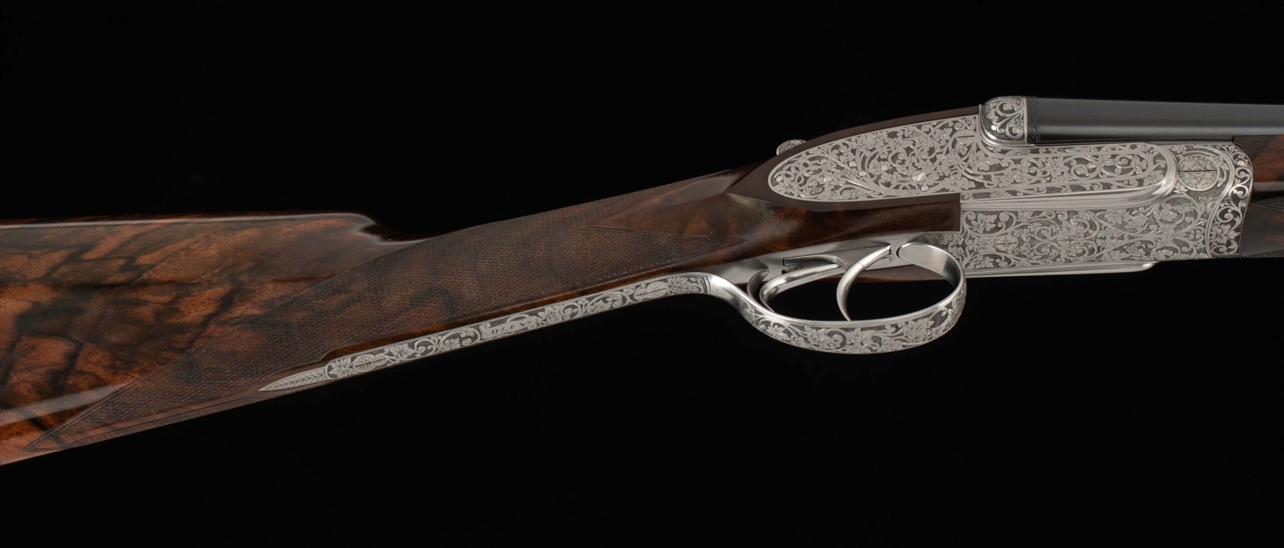 Trigger Guard Color:   100%, rolled right hand edge; engraved