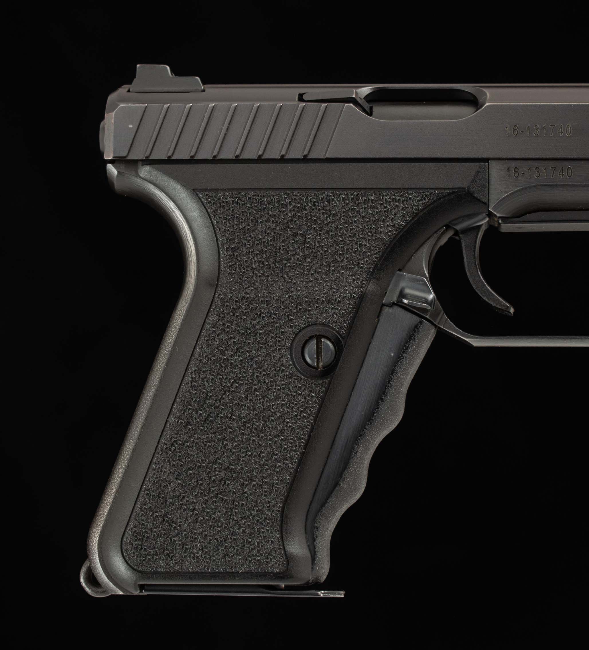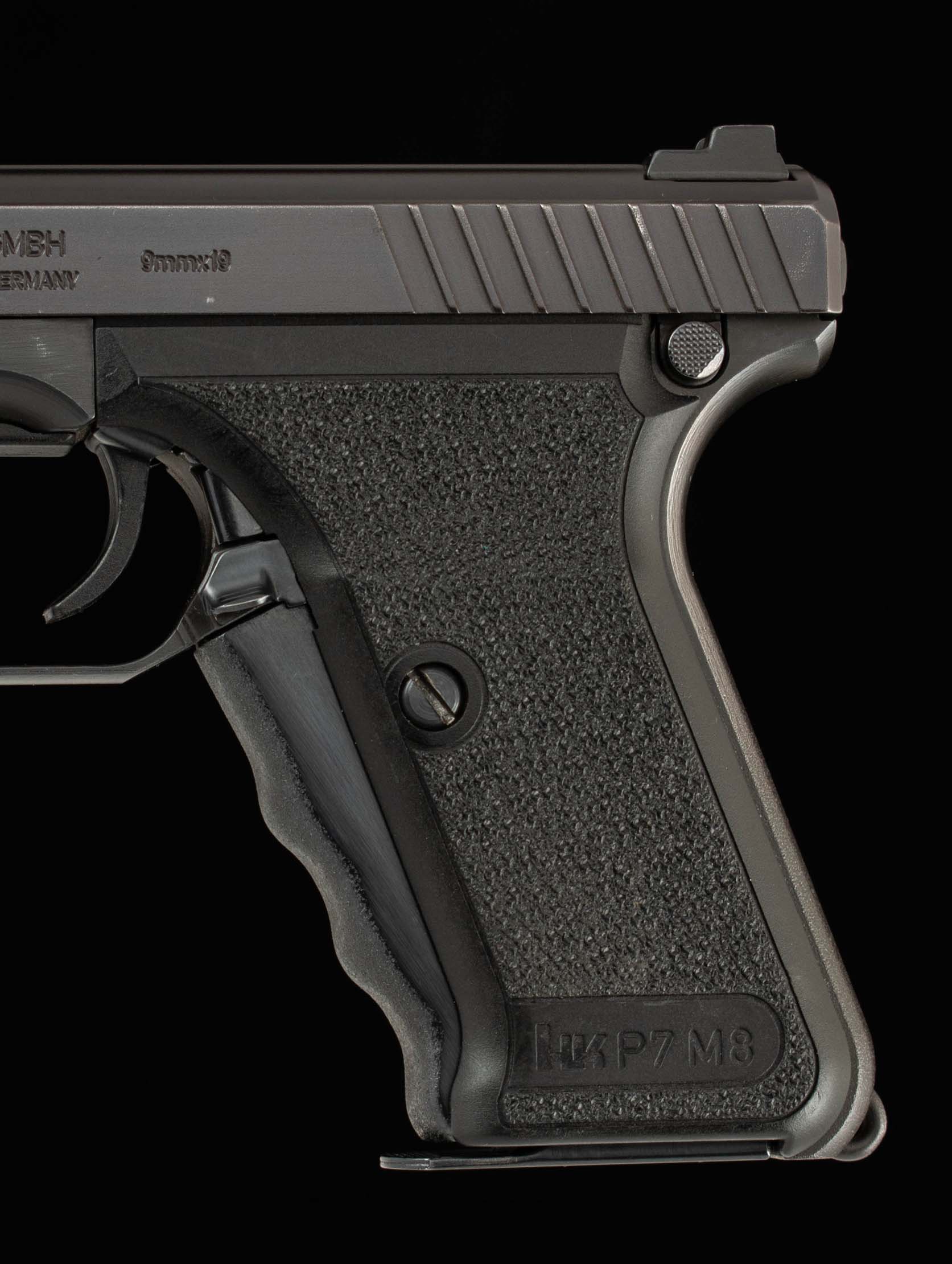 | General Specs: Heckler & Koch GmbH, 2002, 9mm, 30oz. 4″ Serial Number: 16-131740 Vintage Firearms is pleased to offer this unique West German handgun, made famous in the movie Die Hard, the Heckler & Koch GmbH P7 M8, also known as the squeeze cocker for its unique mechanism which requires that the grip be squeezed to cock the gun which in effect acts as the pistol’s safety. This example manufactured in 2002 in Germany, serial number 16-131740, is in 99% overall condition. With this P7 you’re getting the whole package, its original case, instruction manual, tools, and two 8 round single stack mags. Don’t hesitate to snag this little piece of film history before it’s gone! A great choice for the die hard or just the unique West German gun enthusiasts. We at Vintage Firearms invite you to have a look at the detailed specifications and pictures below. Thanks for looking!