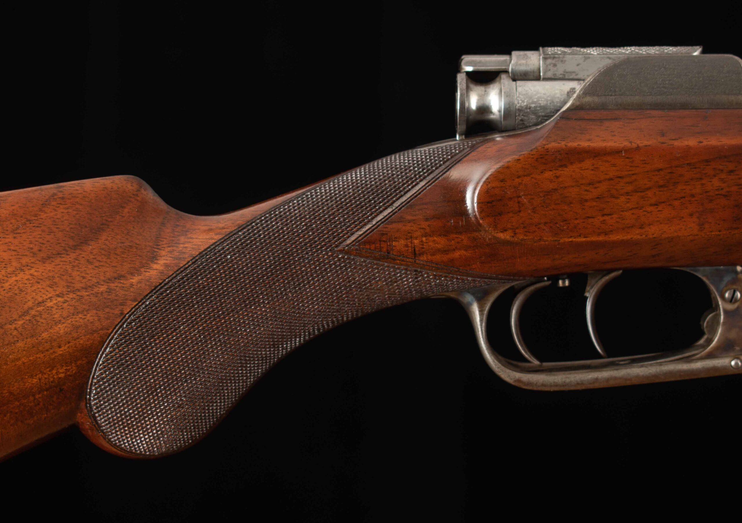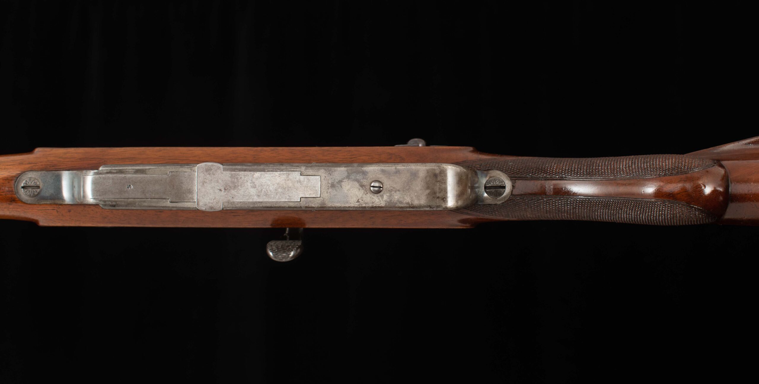 | Action: bolt Receiver Condition: 98% Screws: very good Engraving: stippled receiver Trigger Type: double set trigger Trigger Guard Color: 97% case color |