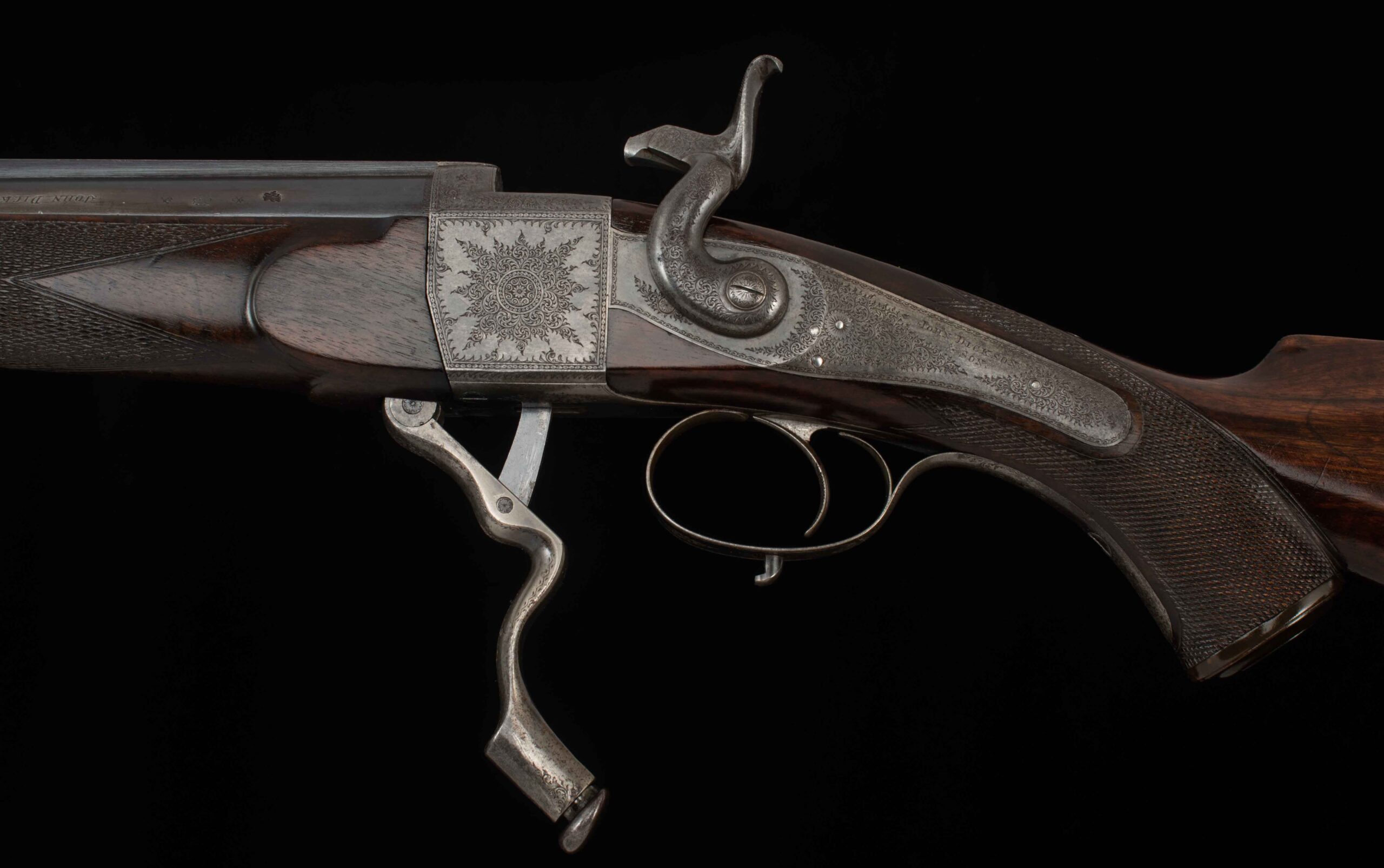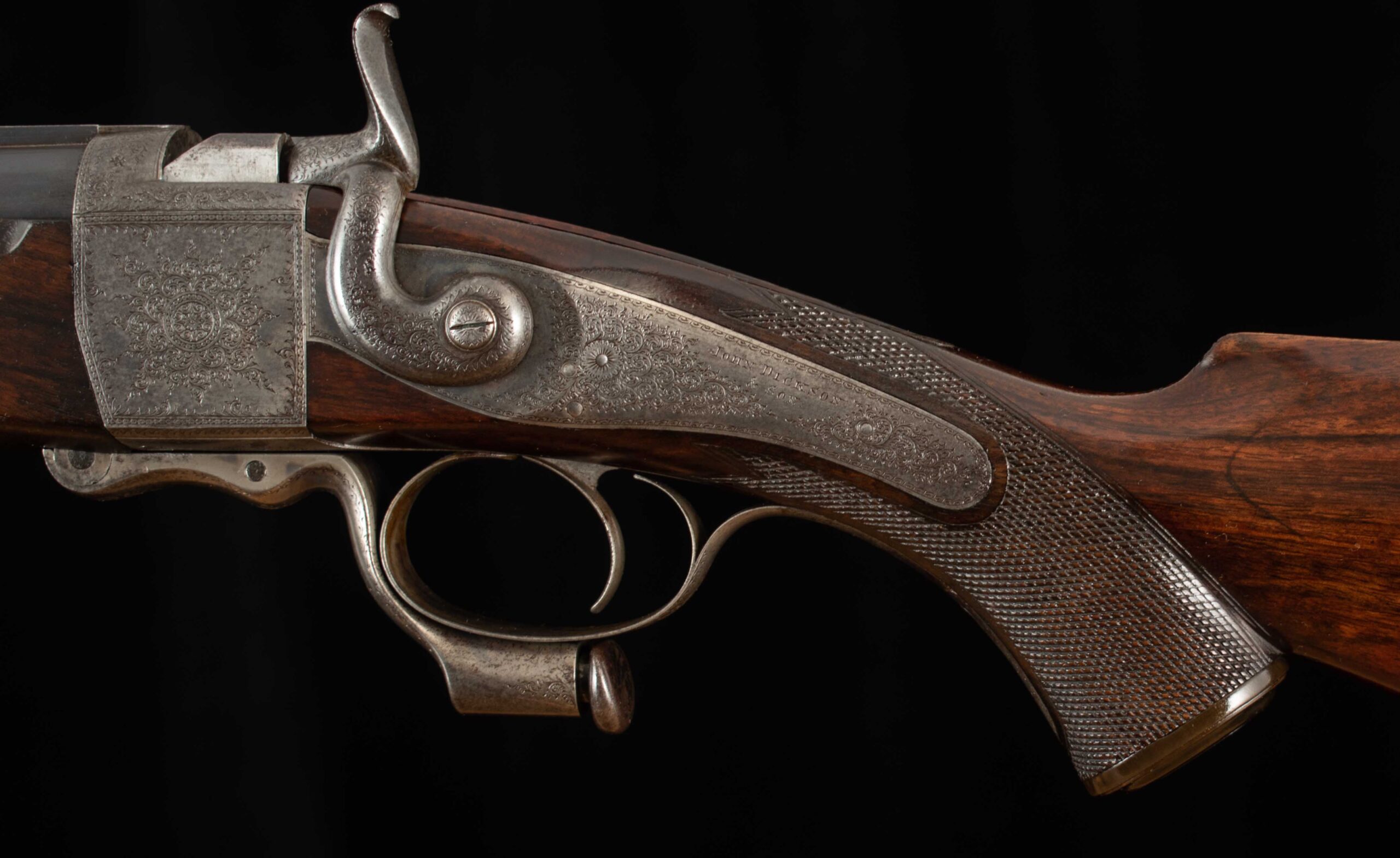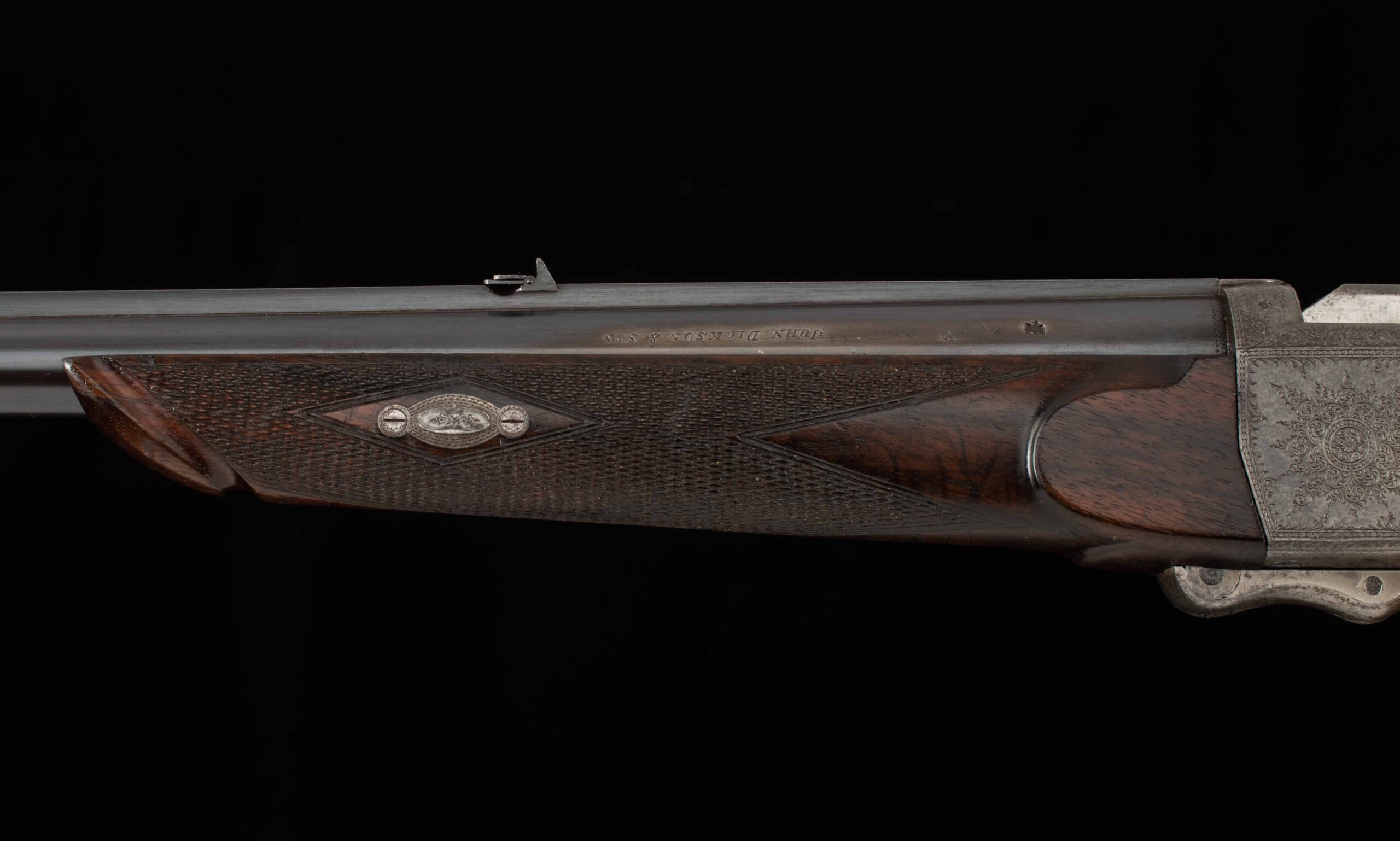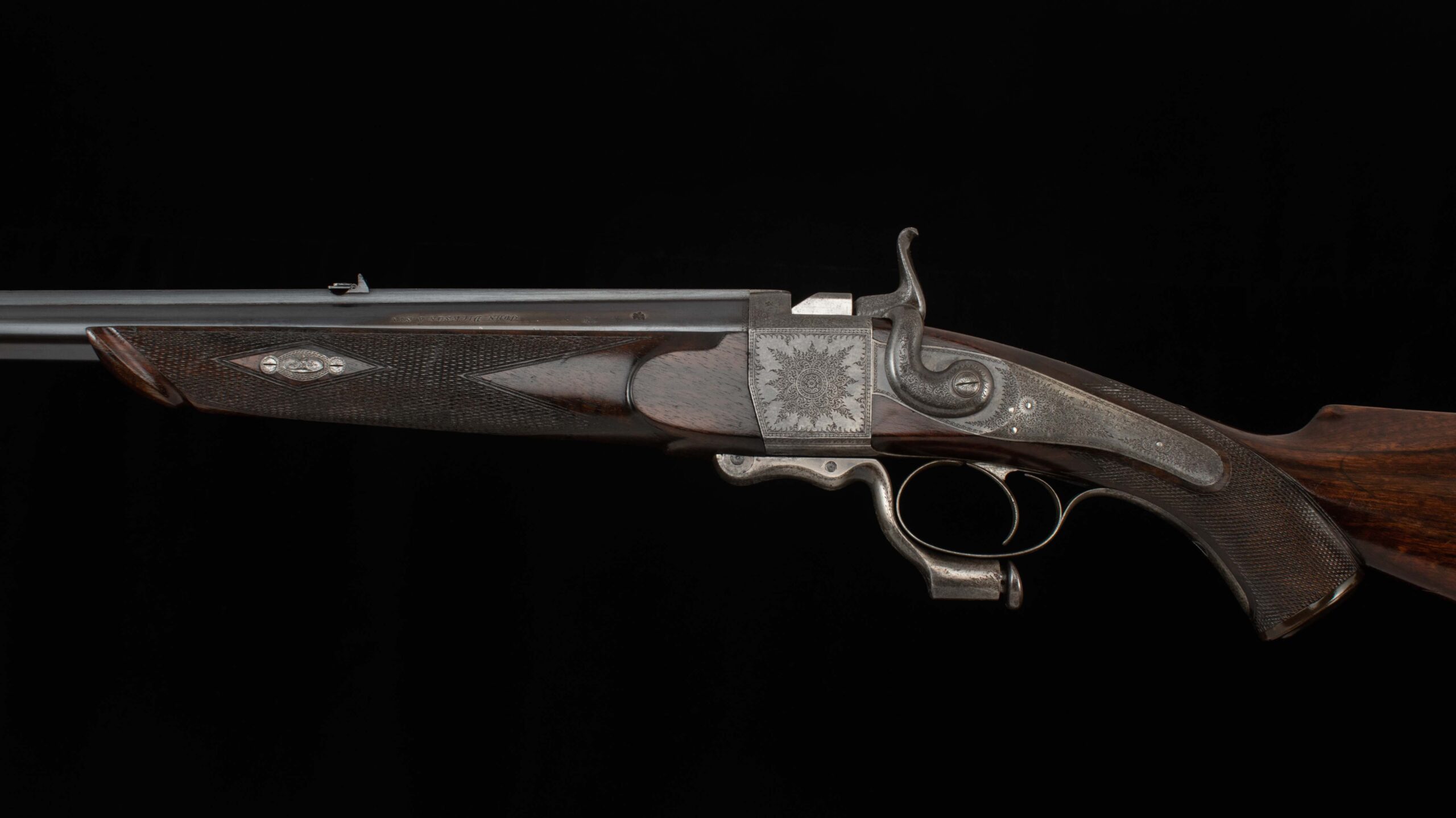 | General Specs: John Dickson & Son , 1879, .500 Black Powder Express, 7lbs. 5oz., LOP 14 3/8″ Serial Number: 3530