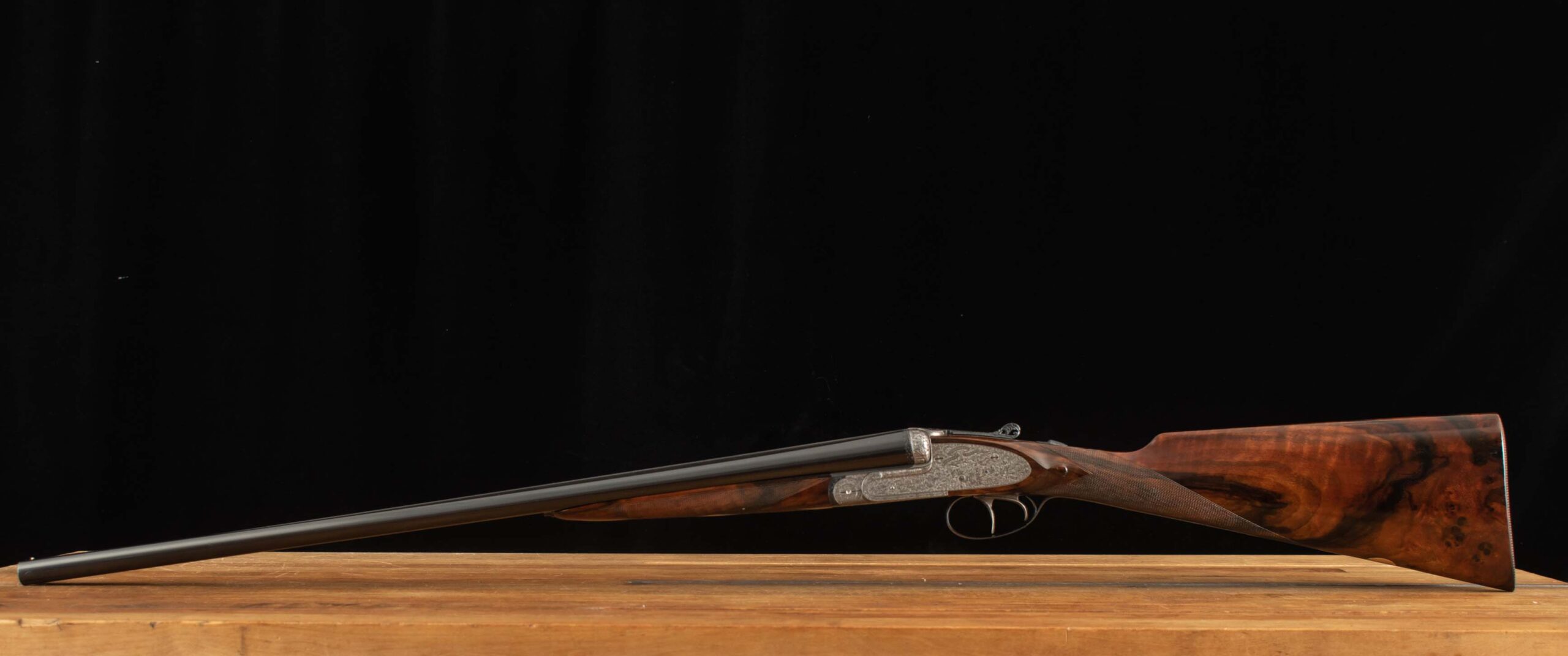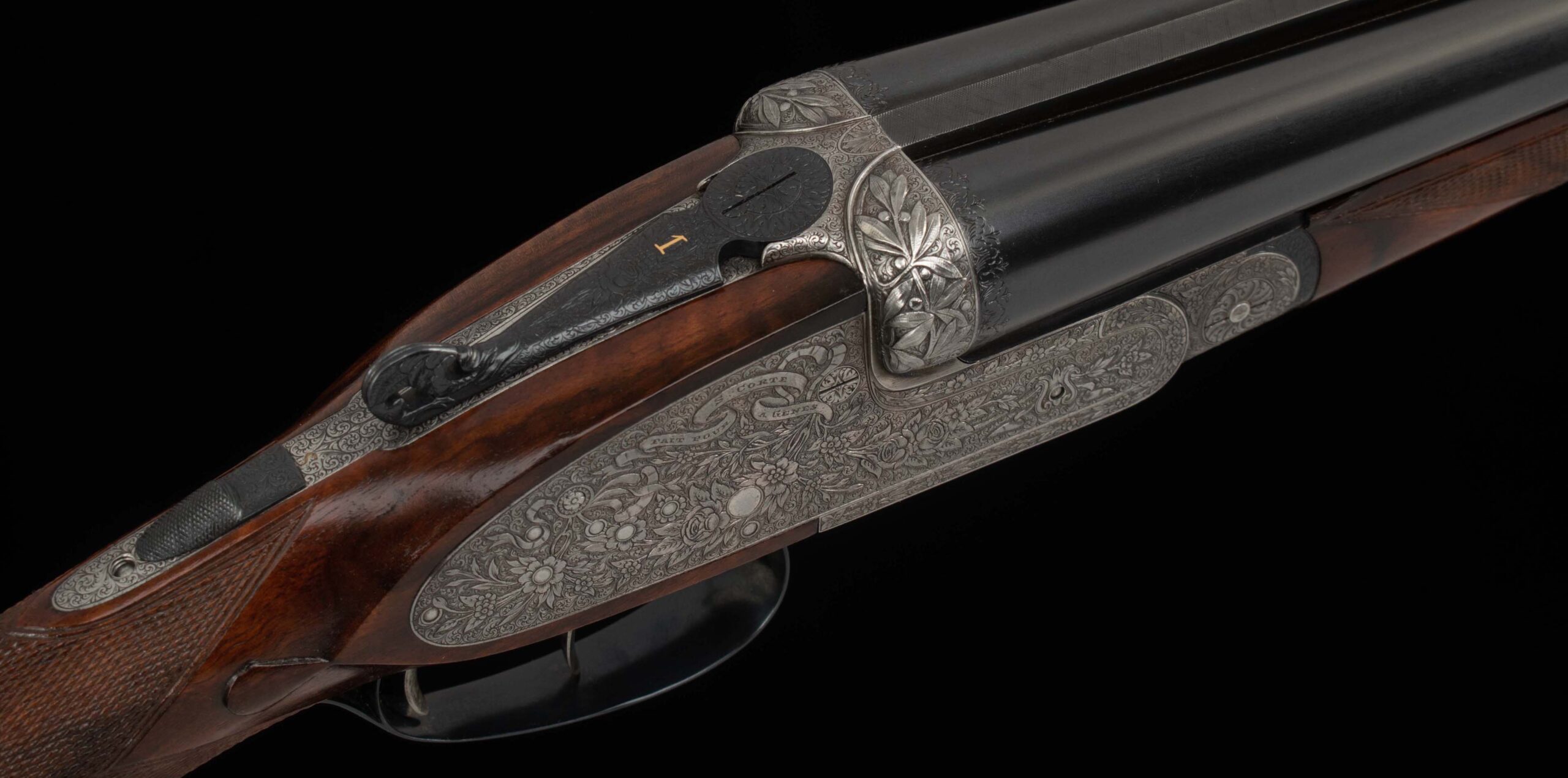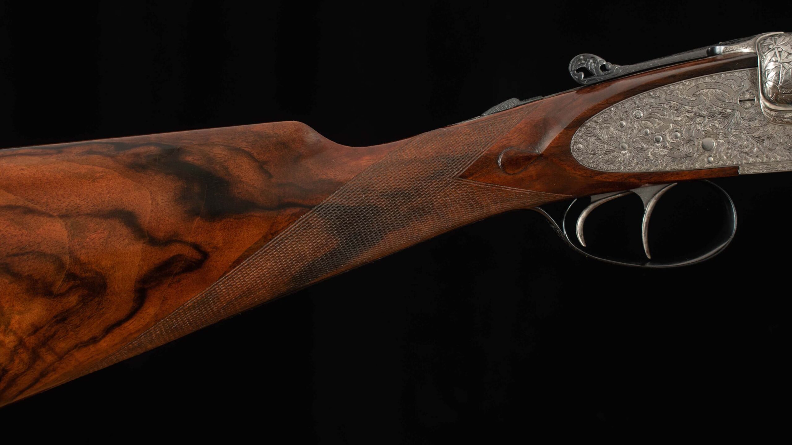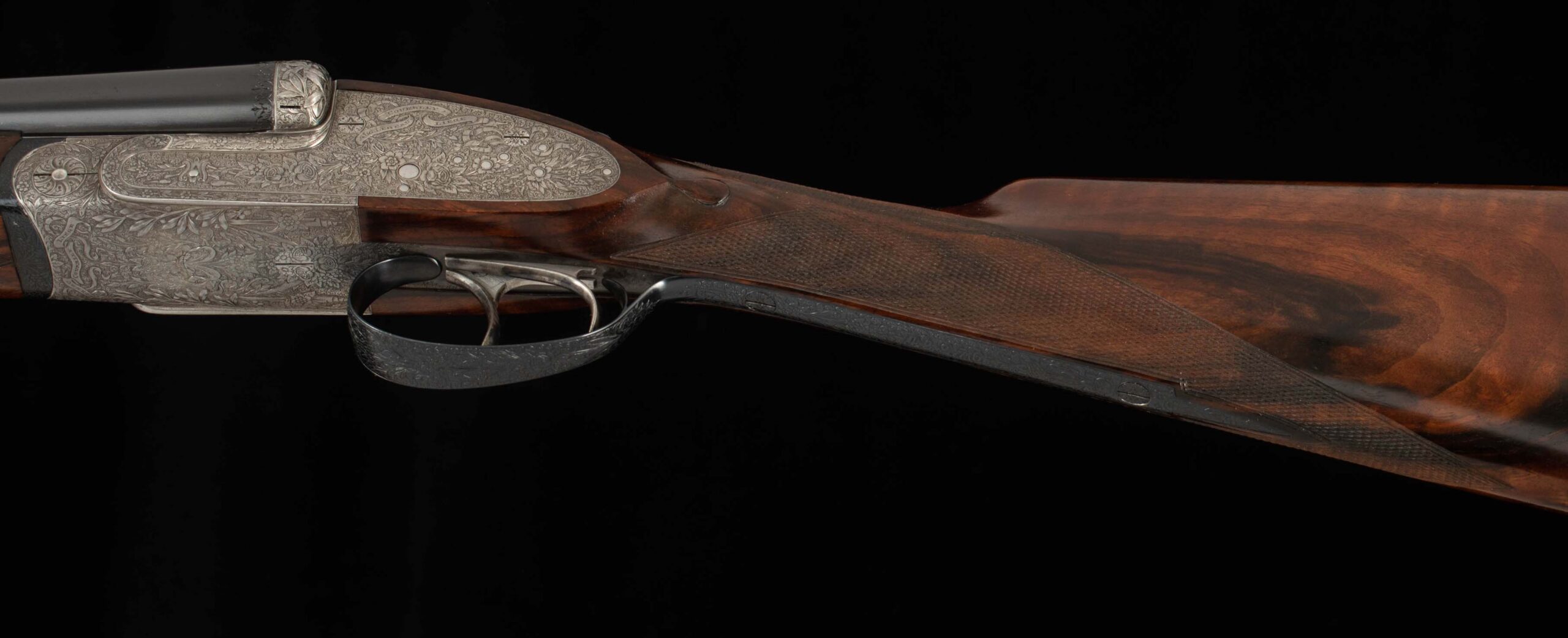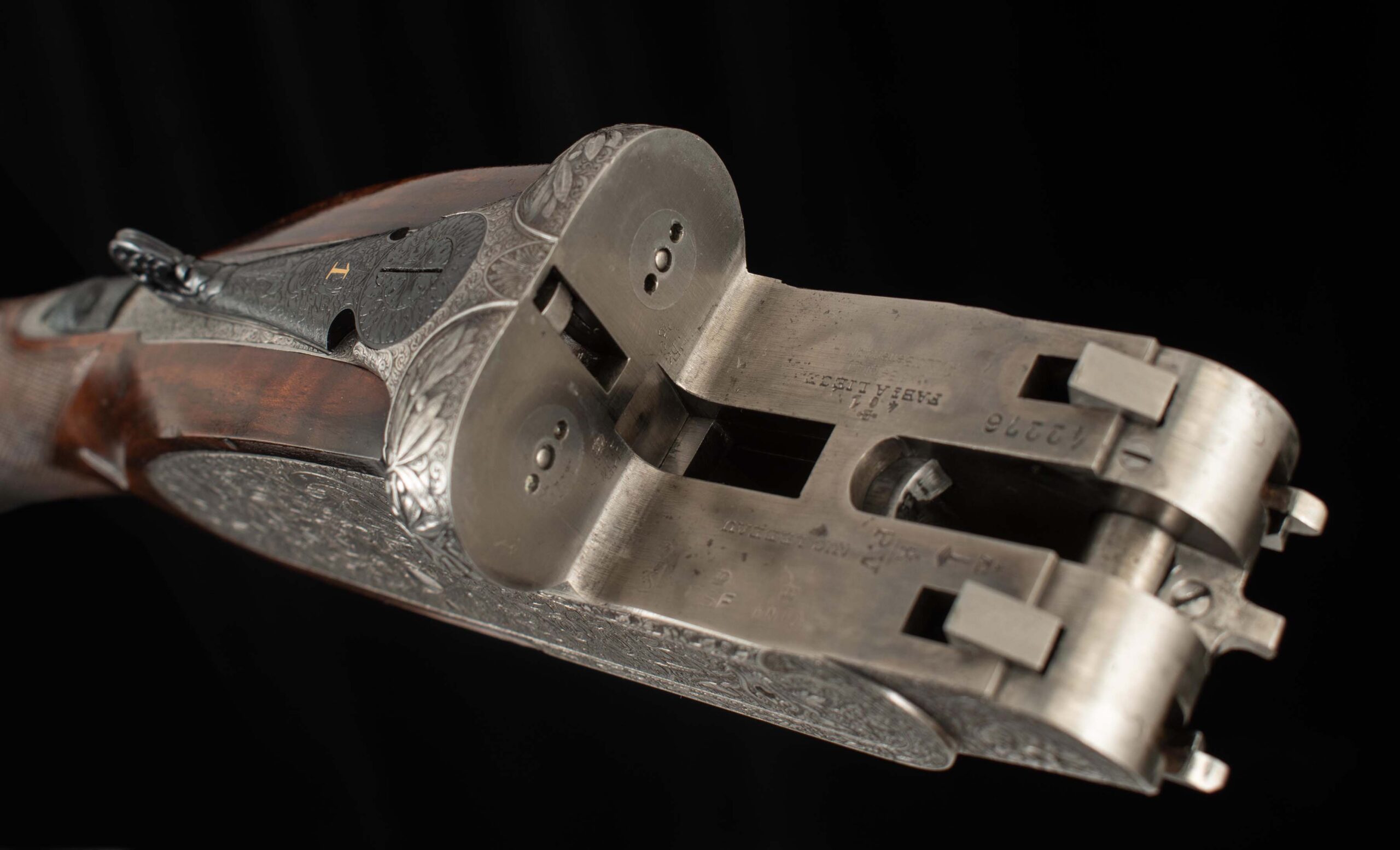 | Action: tight-Slight Left of Center Ejectors: timed Receiver Condition: 100% Screws: perfect Engraving: 100% coverage, exceptional floral engraving Trigger Type: double-crisp Trigger Guard Color: 100% engraved blued |