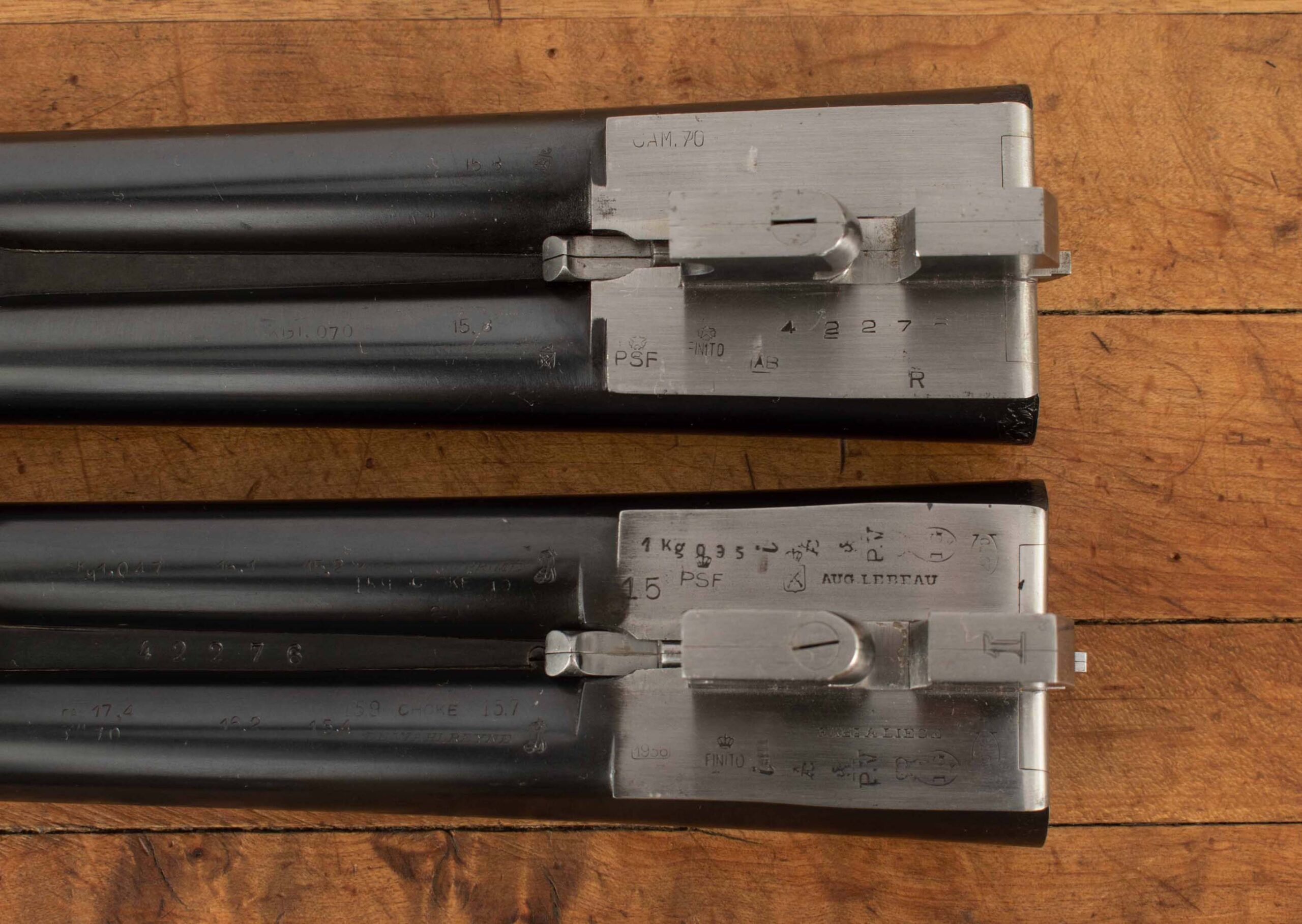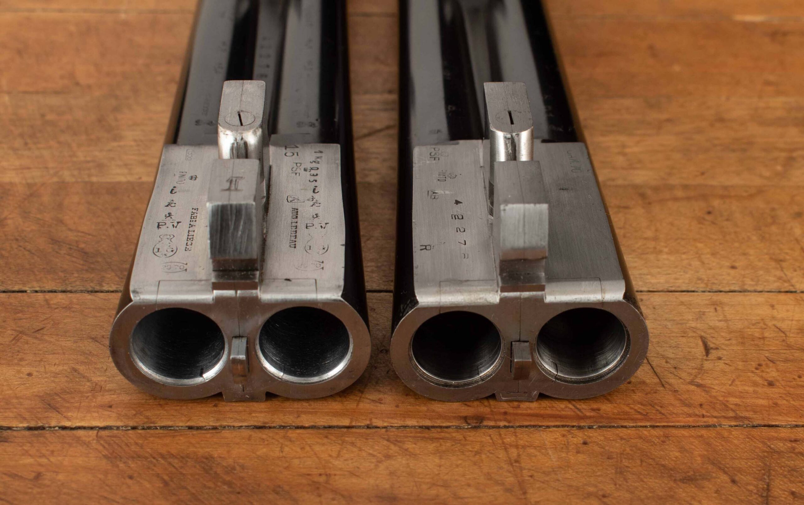 | Barrel Length: 25 1/2″ both Chokes: .040/.040 XF,XF; .015/.028 M/F Bores: excellent+; mirror Bore Diameter: .649/.640; .624/.625 Wall Thickness: .020/.025; .028/.029 % Blue: 99% both Chambers: 3″ all Ribs: tight; tight Sights: front brass, front silver |