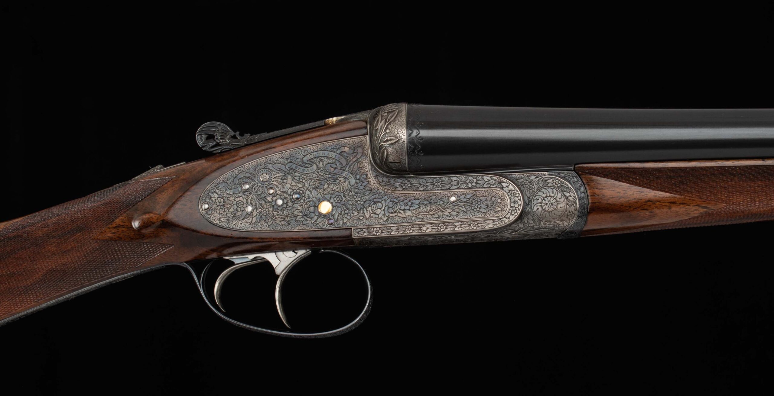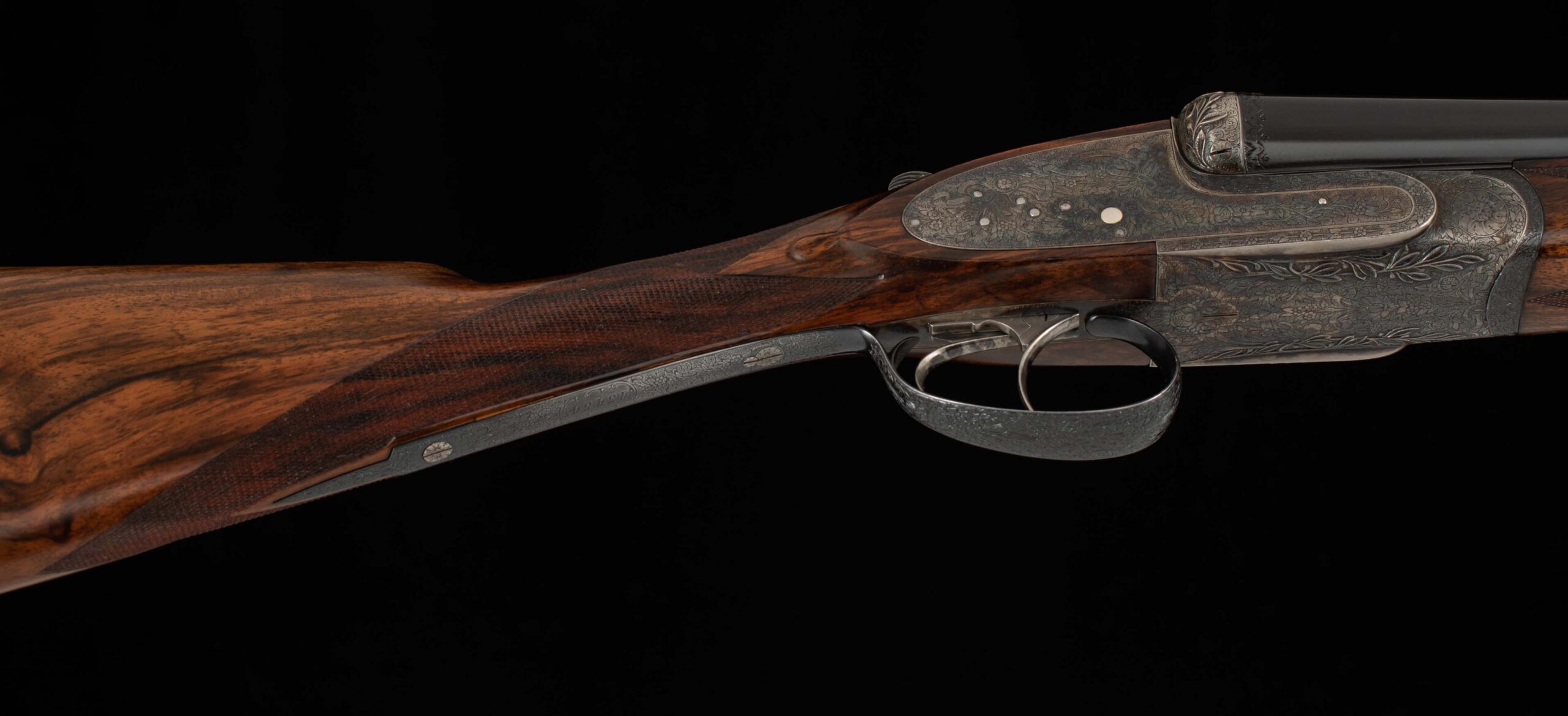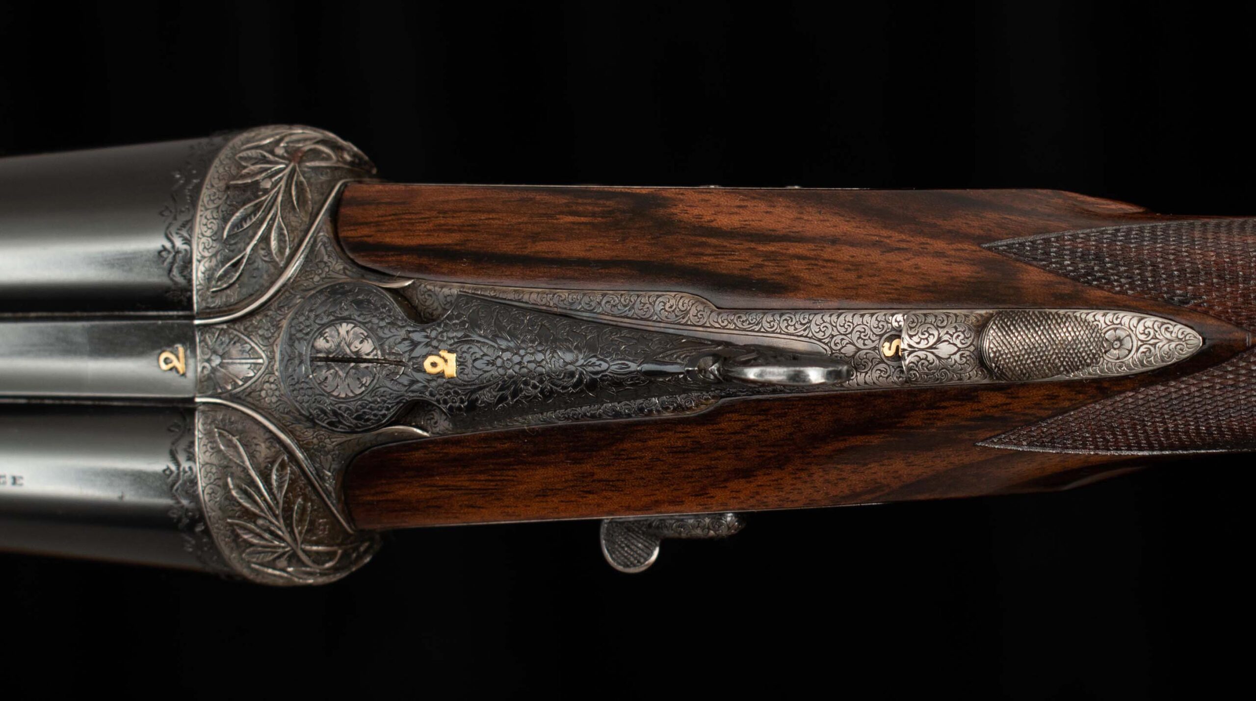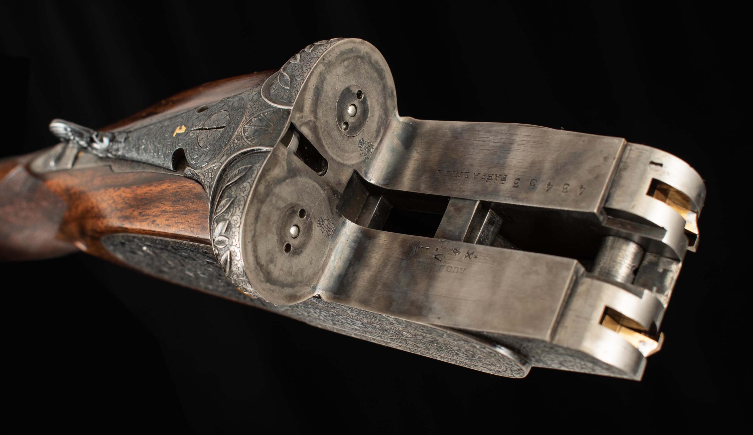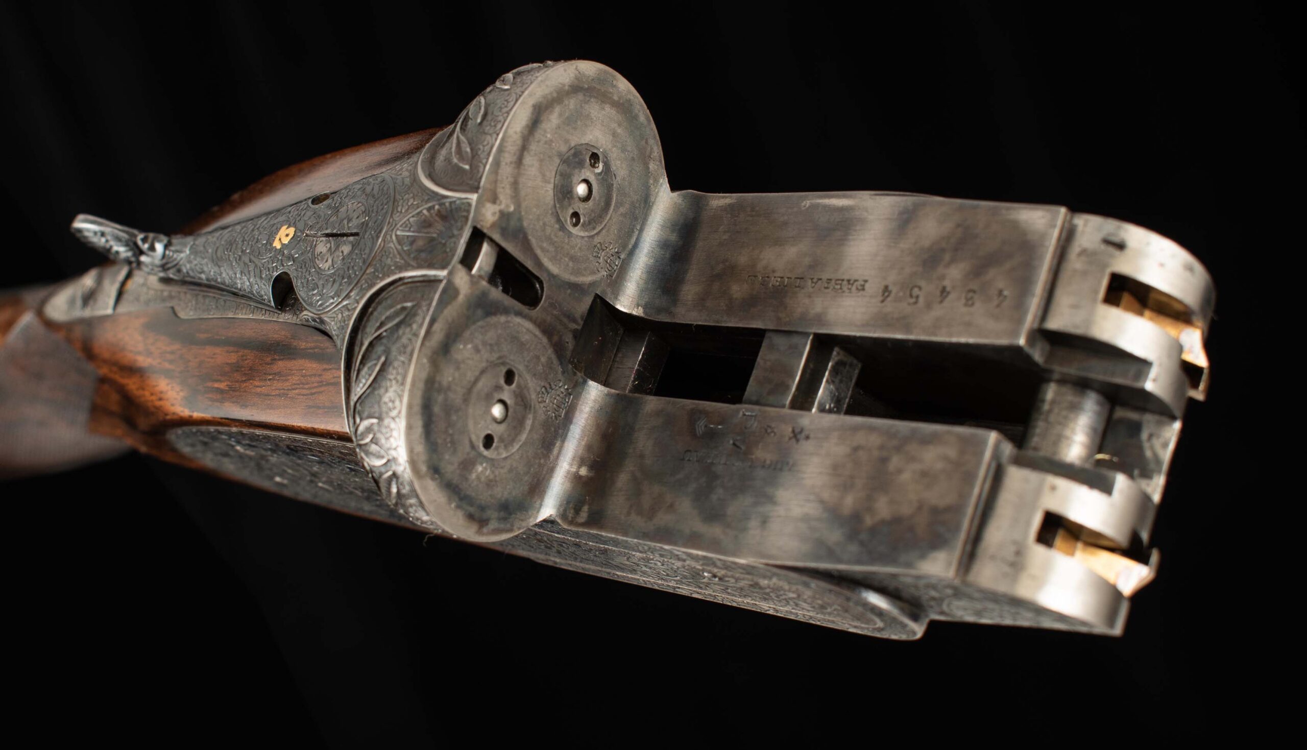 | Action: Centered; Slight Left of Center Ejectors: timed, both Receiver Condition: both 98% factory Case Color Screws: both superb+ Engraving: 98% deep relief, scroll, floral Trigger Type: double-crisp, both Trigger Guard Color: 98% factory blue both |