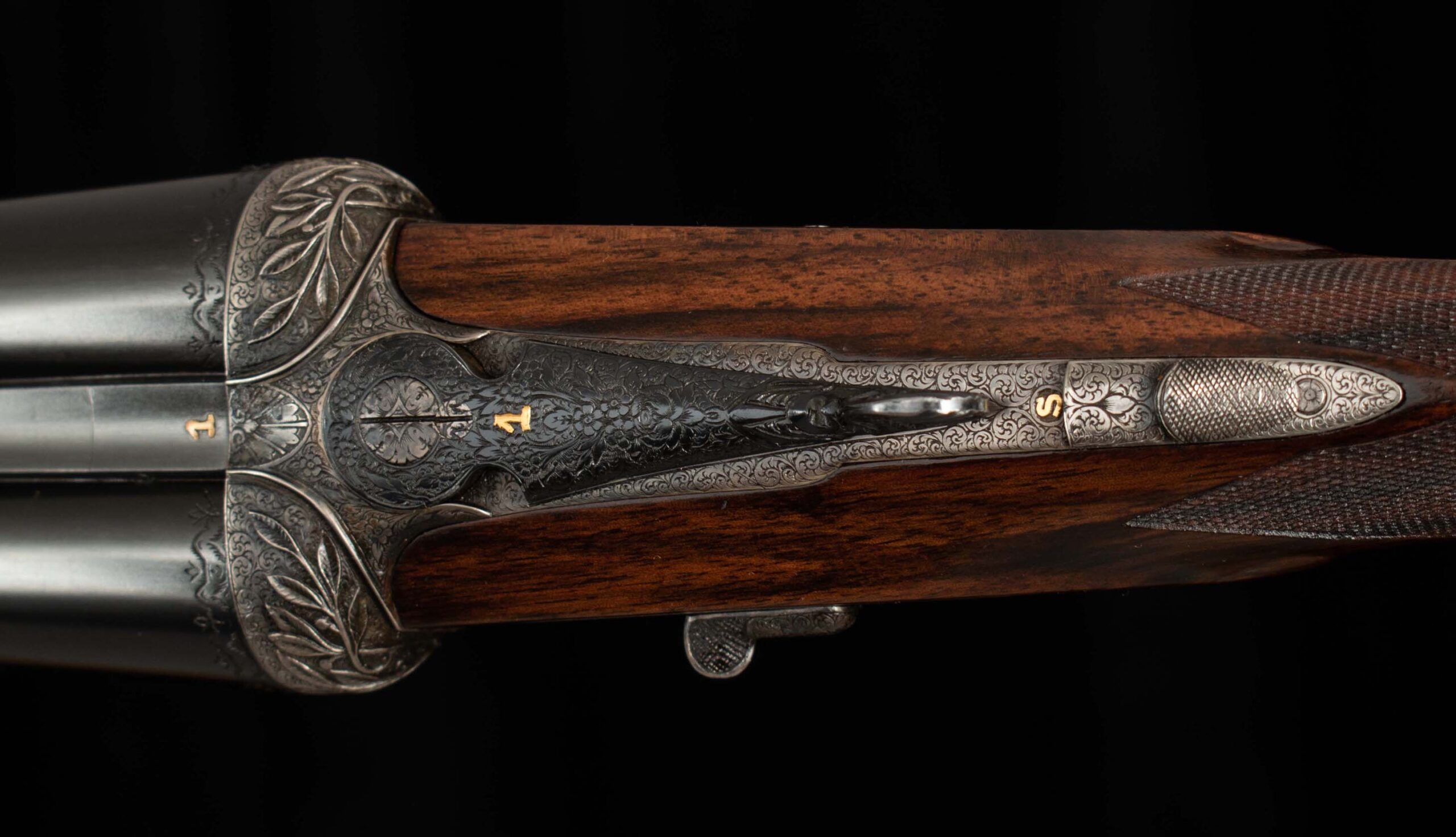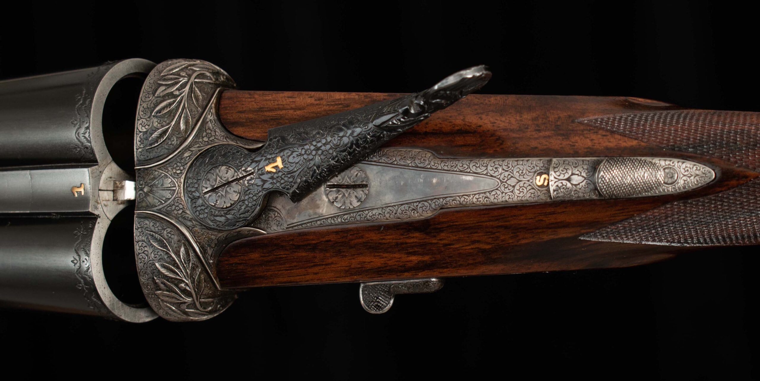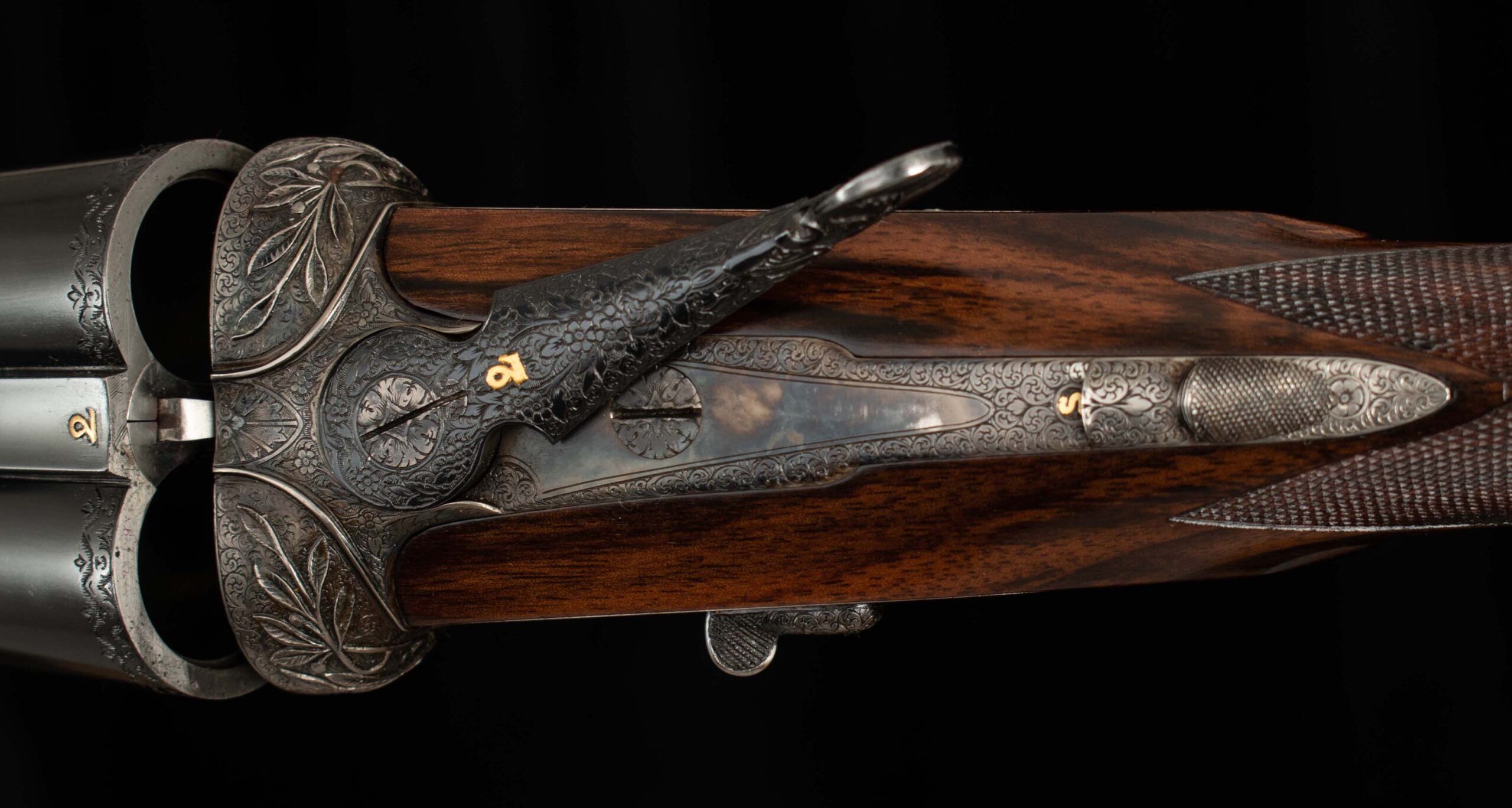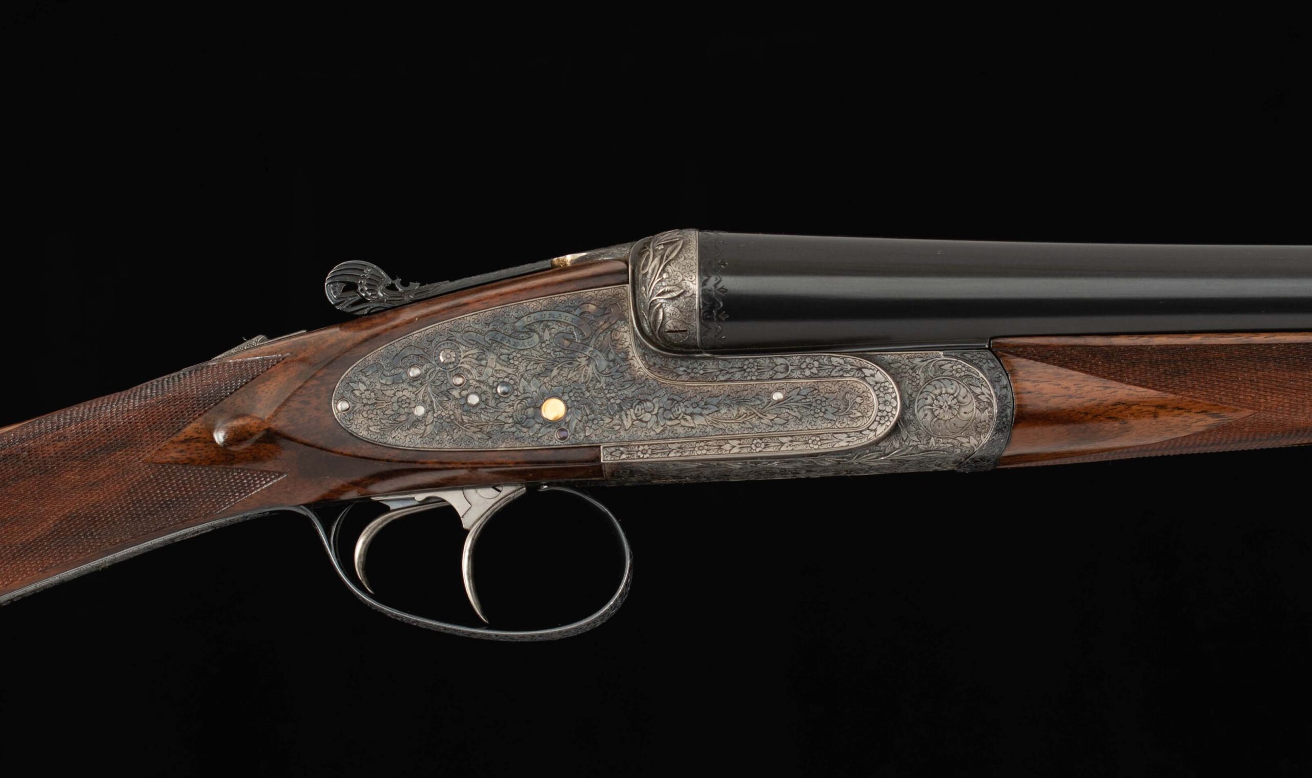 | Action: Centered; Slight Left of Center Ejectors: timed, both Receiver Condition: both 98% factory Case Color Screws: both superb+ Engraving: 98% deep relief, scroll, floral Trigger Type: double-crisp, both Trigger Guard Color: 98% factory blue both |