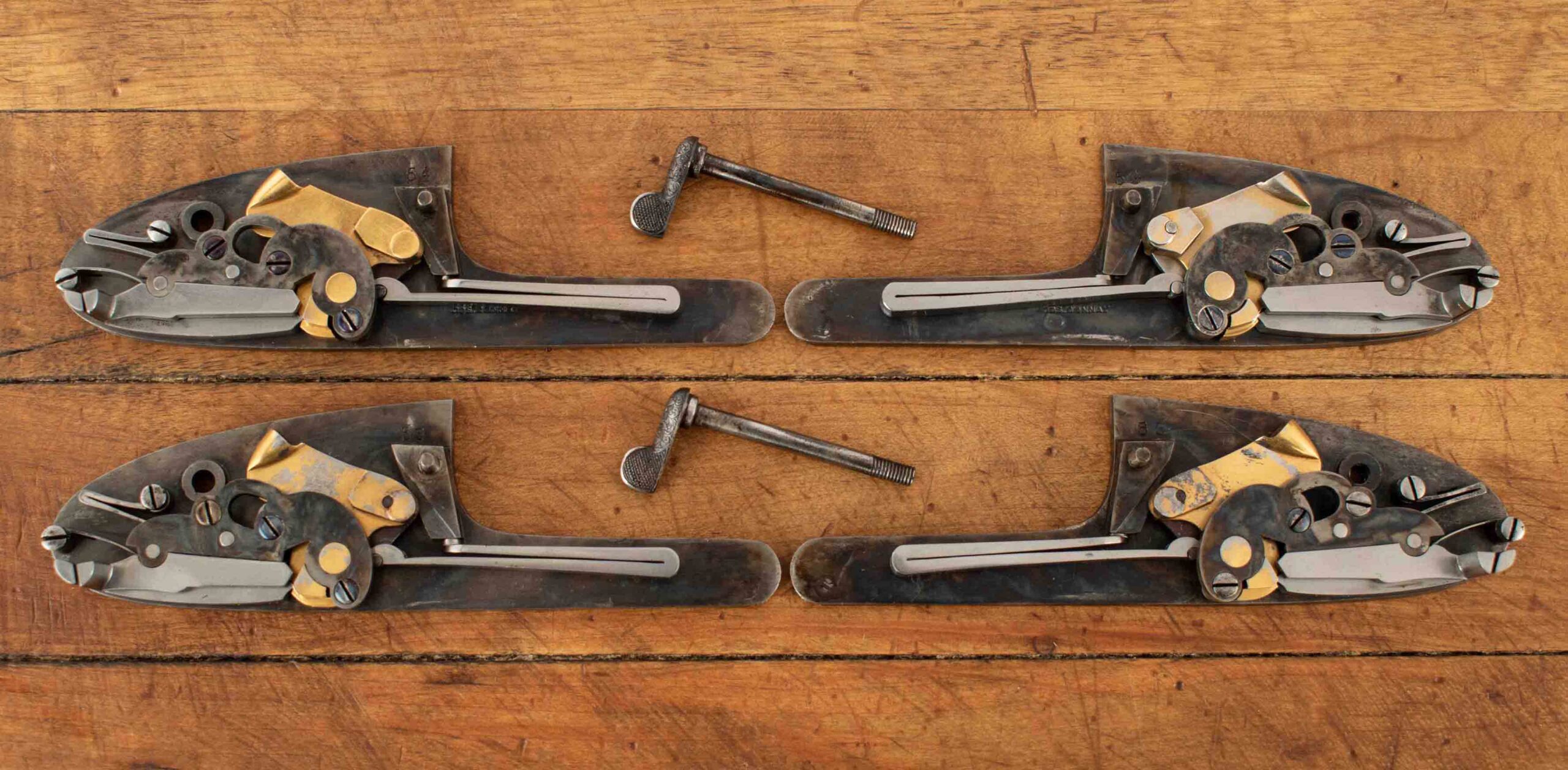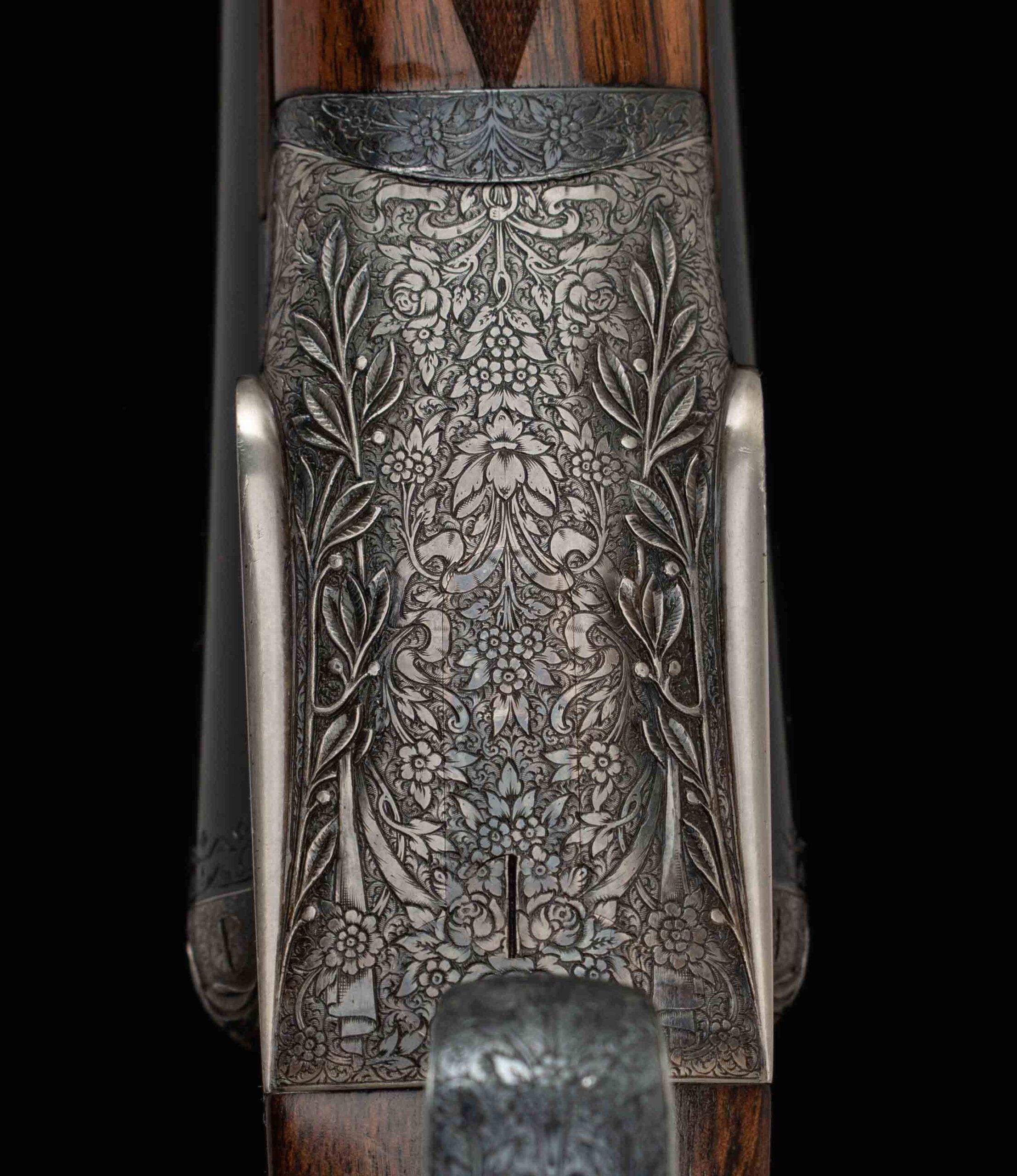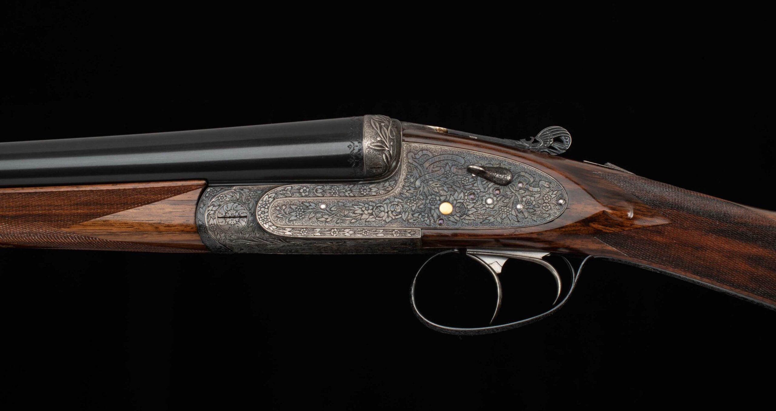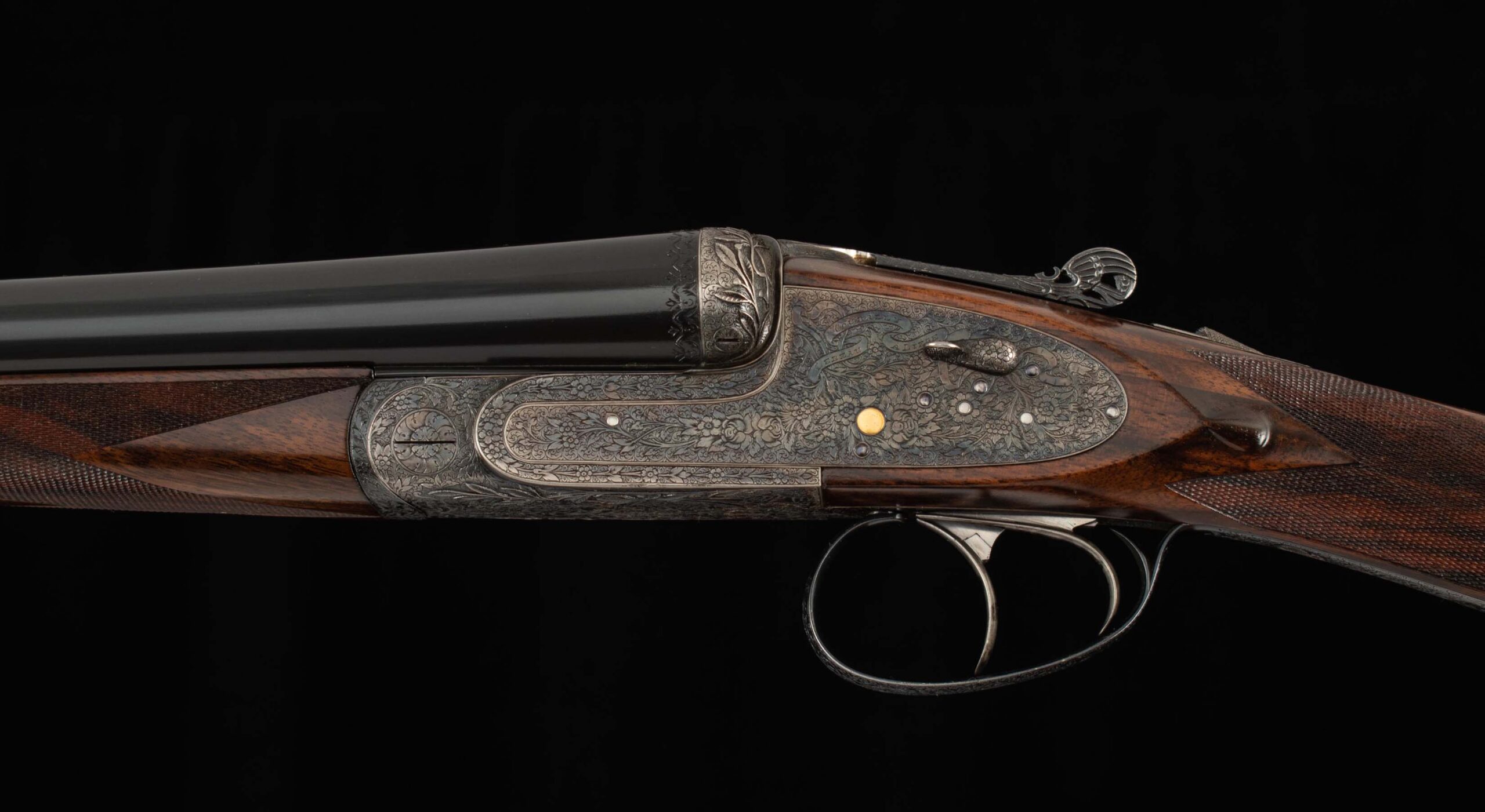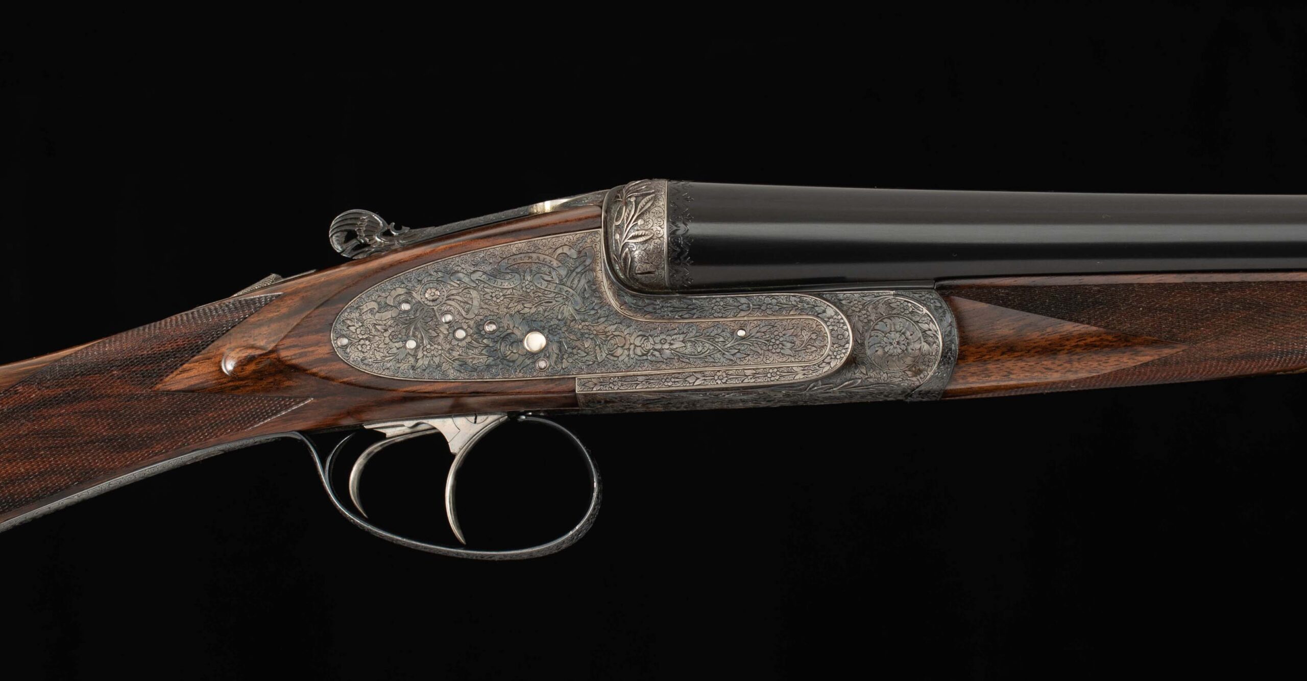 | Action: Centered; Slight Left of Center Ejectors: timed, both Receiver Condition: both 98% factory Case Color Screws: both superb+ Engraving: 98% deep relief, scroll, floral Trigger Type: double-crisp, both Trigger Guard Color: 98% factory blue both |