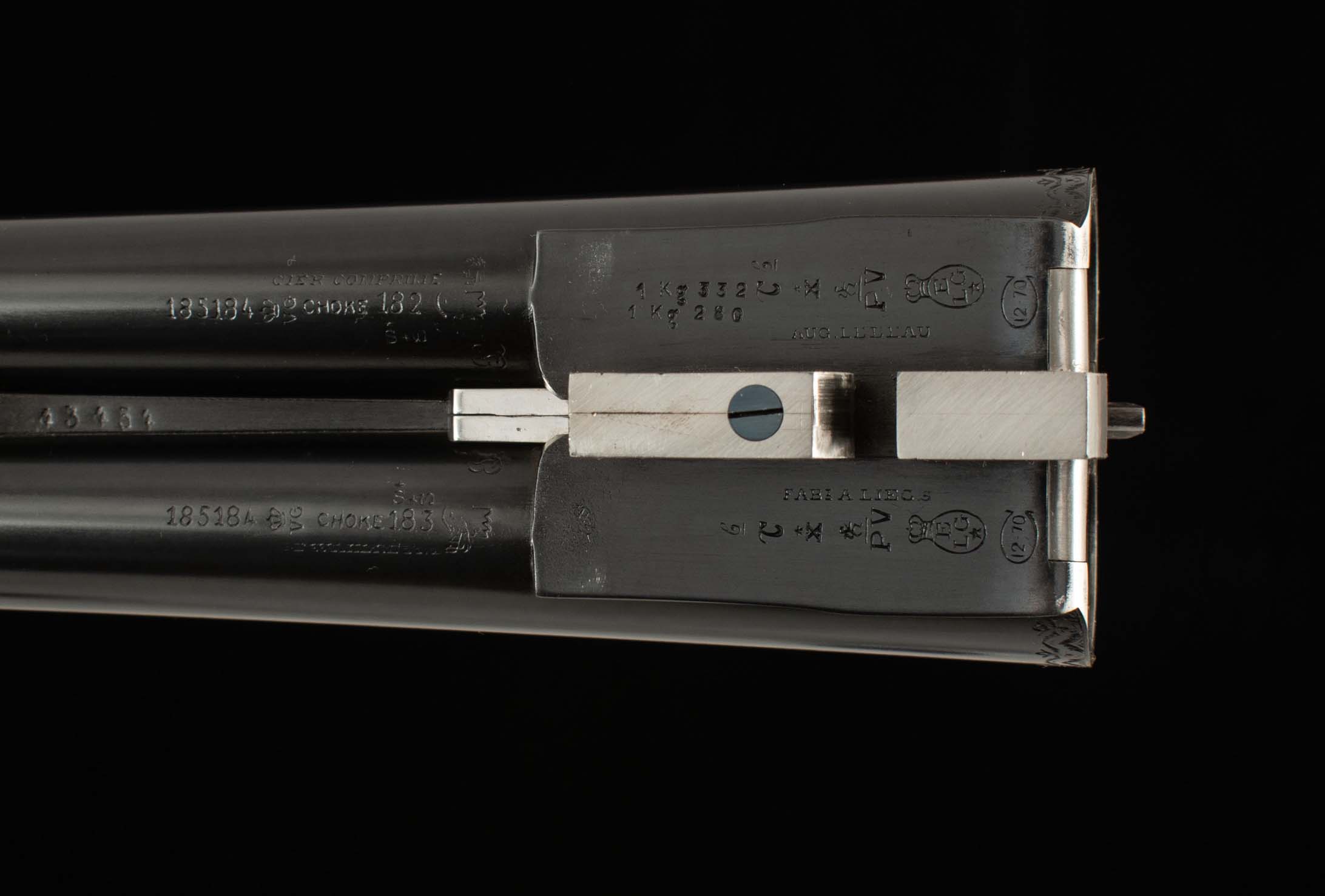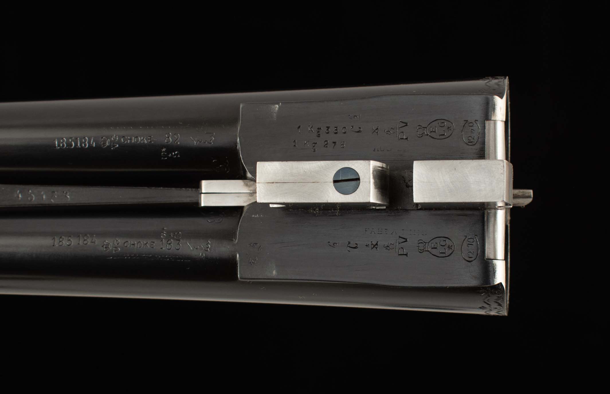 | Barrel Length: both 28″ Chokes: .027/.035 IM/F; .029/.035 IM/F Bores: both mirror Bore Diameter: .735/.732; .734/.732 Wall Thickness: .023/.024; .024/.023 % Blue: 100% factory, both Chambers: both 2 3/4″ Ribs: tight-bells, both Sights: both front brass |
