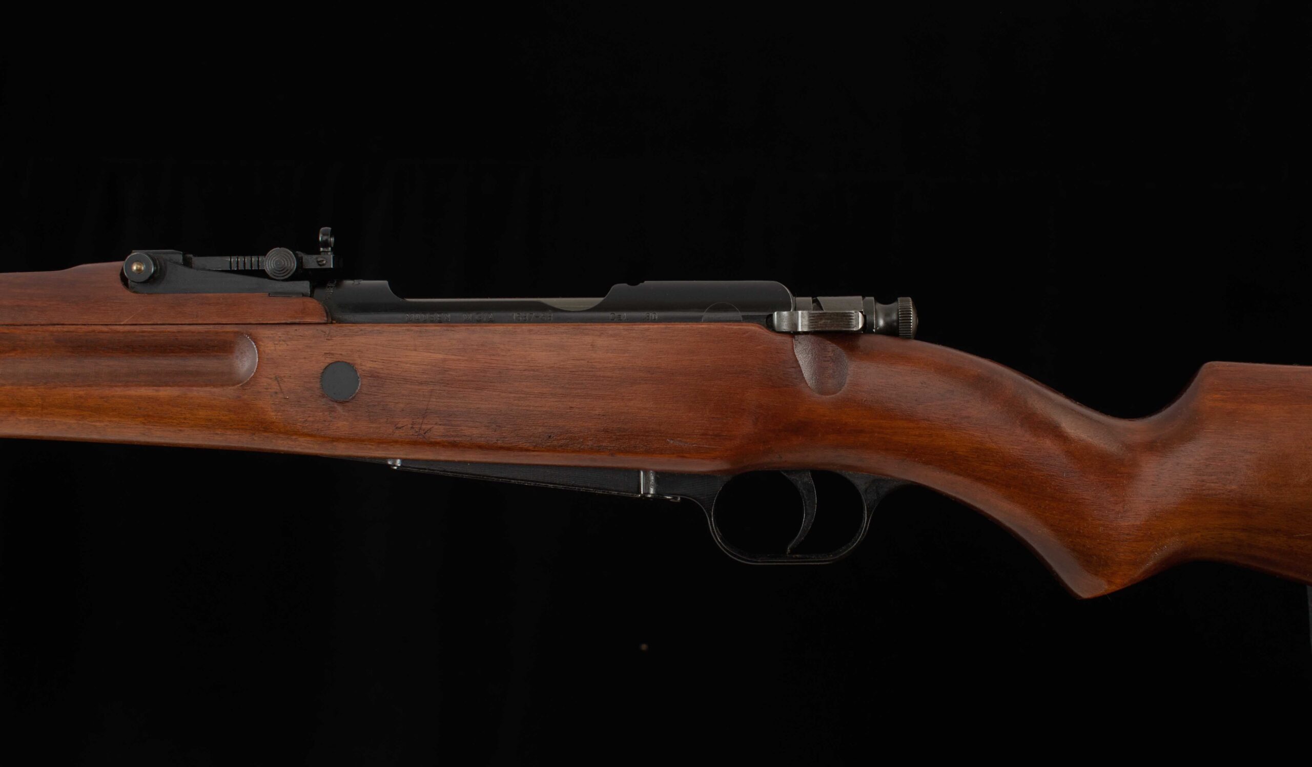 | General Specs: Madsen, 1958, .30-06, 8LBS. 10OZ., LOP 13 3/8″ Serial Number: 1587-58 The Madsen M47 was manufactured by the Danes as the first post-war bolt-action design, but in a world flooded with WWII surplus they found little interest. The M47 was to become the last military bolt-action rifle designed for general issue. Madsen would receive only one Military contract for their post war design; 6000 were sold to the Columbian Navy, and these rifles are not known to have been issued outside of ceremonial use, most were stored as surplus until brought into the United Sates of America in the 1960’s. The 6,000 rifles that Madsen made for Colombia were chambered for the .30-06 Springfield cartridge, they had 23 ½” barrels marked Madsen M.G/A Cal. 30 with Fuerzas Armadas de Colombia over the chamber. This example is in near mint condition with some light handling; it appears unfired and shows 99.5% finishes on the metal. Because of the limited production these rifle are rare and sought after. It is a particularly well-made weapon firing an easily available cartridge. Add this gem to your collection ASAP! Thanks for looking.