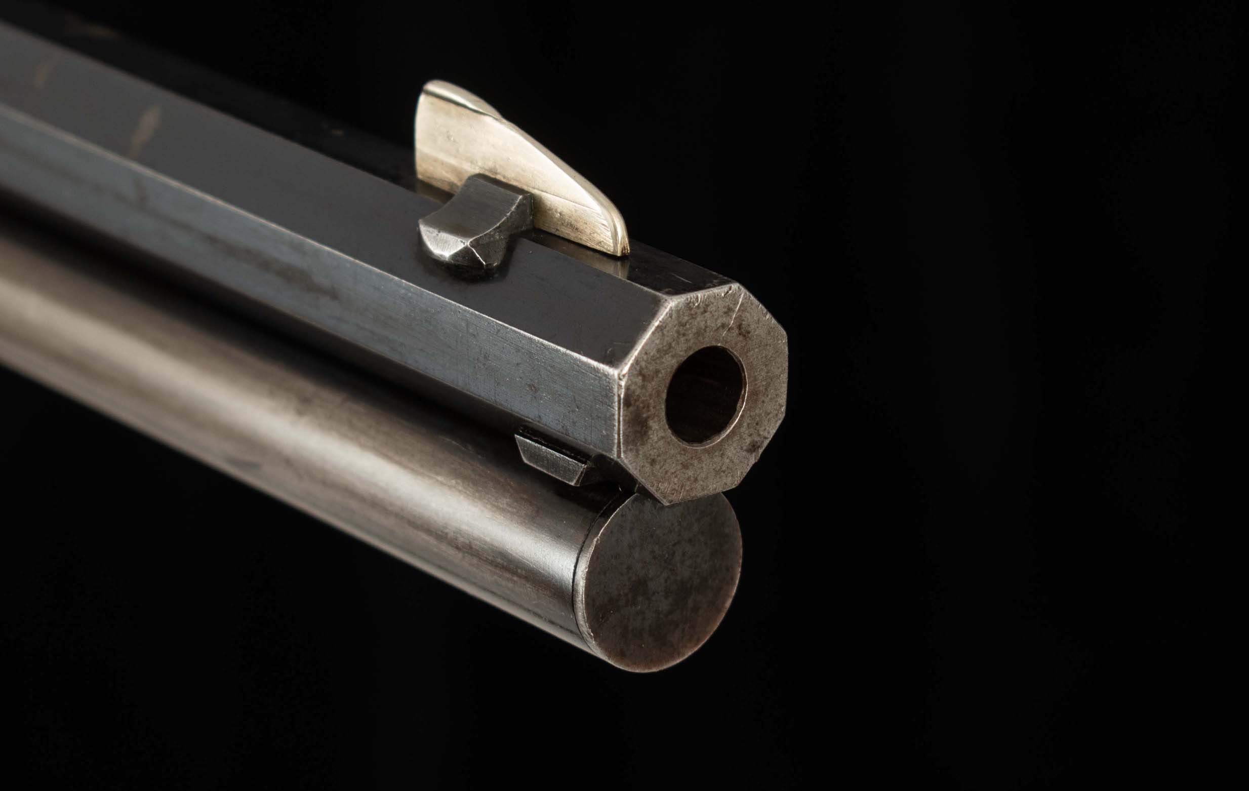 | Barrel Length: 26″ octagon Bores: excellent 9 out of ten, no pitting; shiny % Blue: 98% factory blue Chambers: 10+1 Sights: factory Rocky Mountain front and rear |