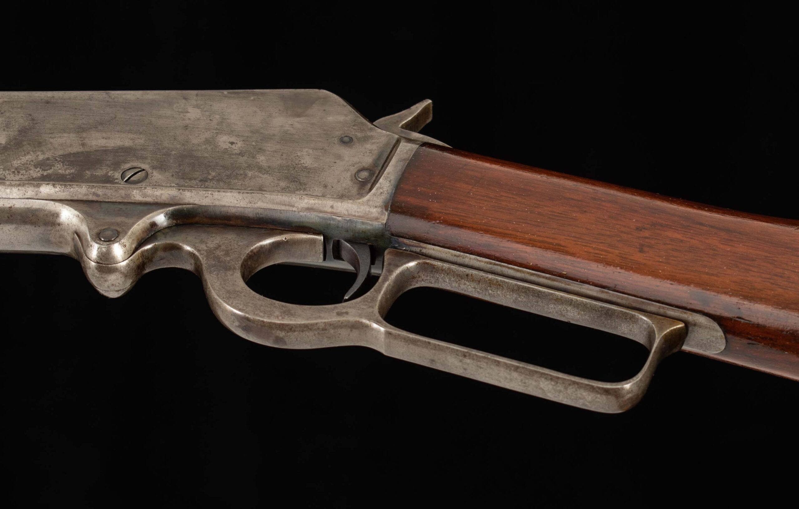 | General Specs: Marlin, c1908, .30-30, 7lbs. 12oz. LOP 13 1/4″ Serial Number: 387238