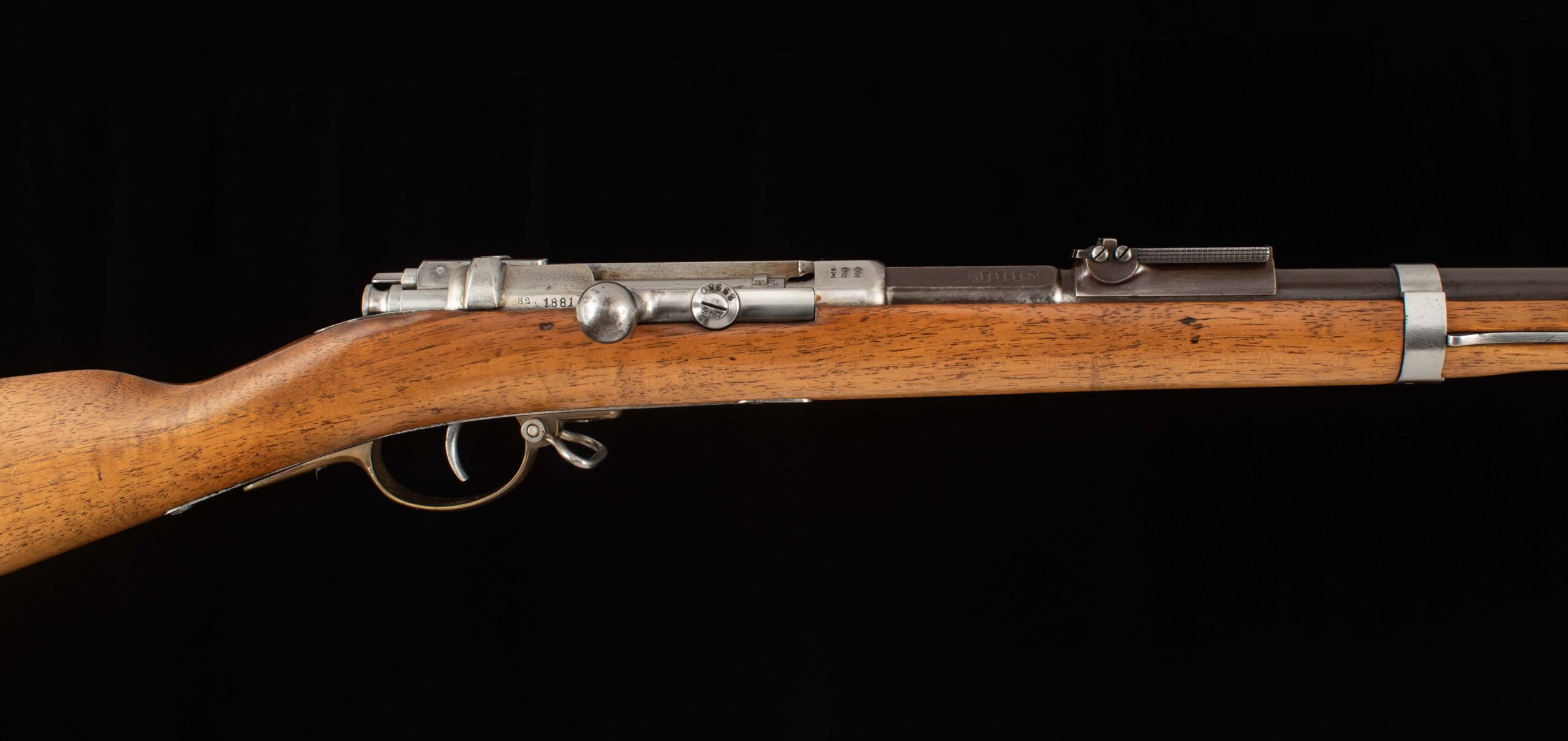 | General Specs: Mauser, 1881, 11x60mmR, 9lbs. 11oz., LOP 13 1/2″ Serial Number: 89950