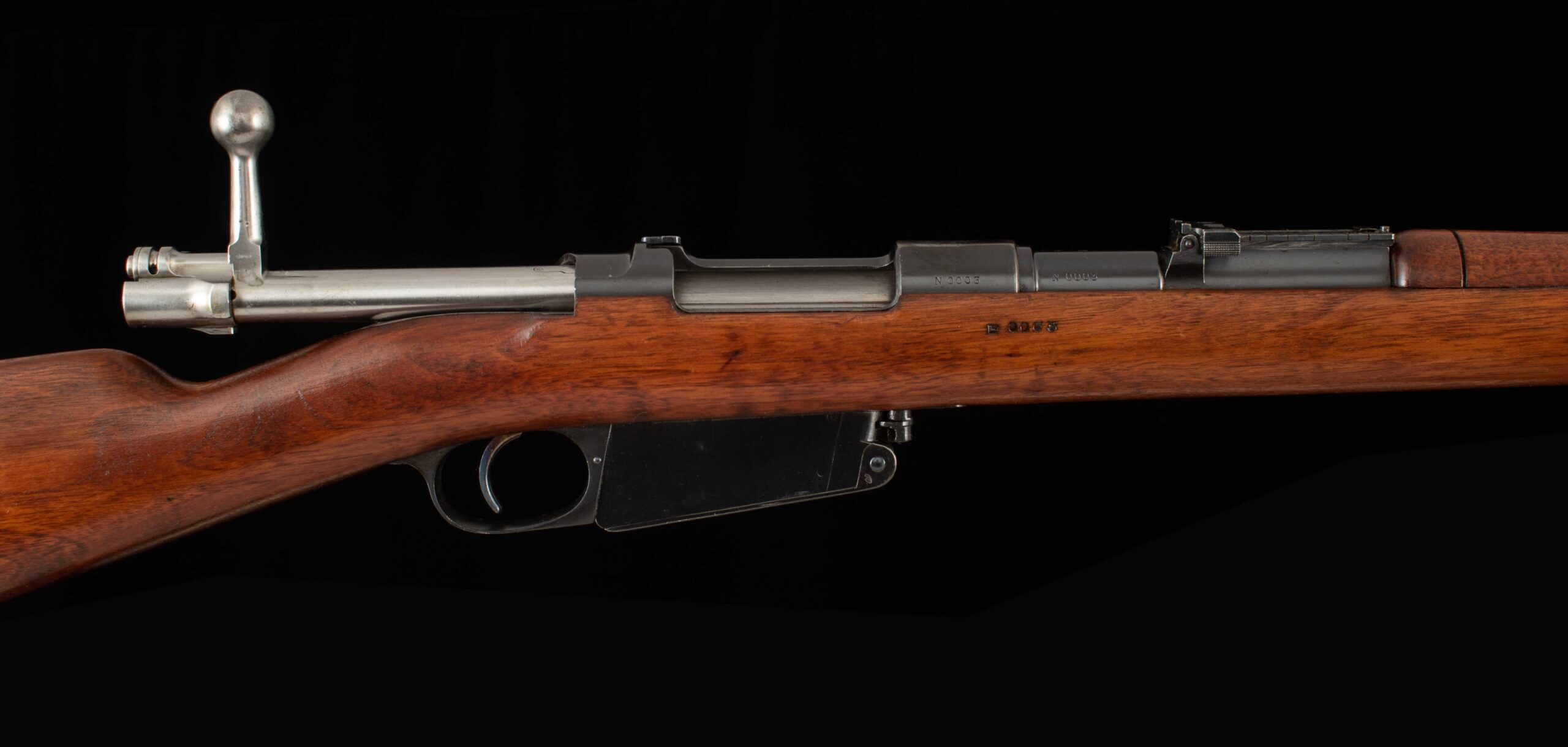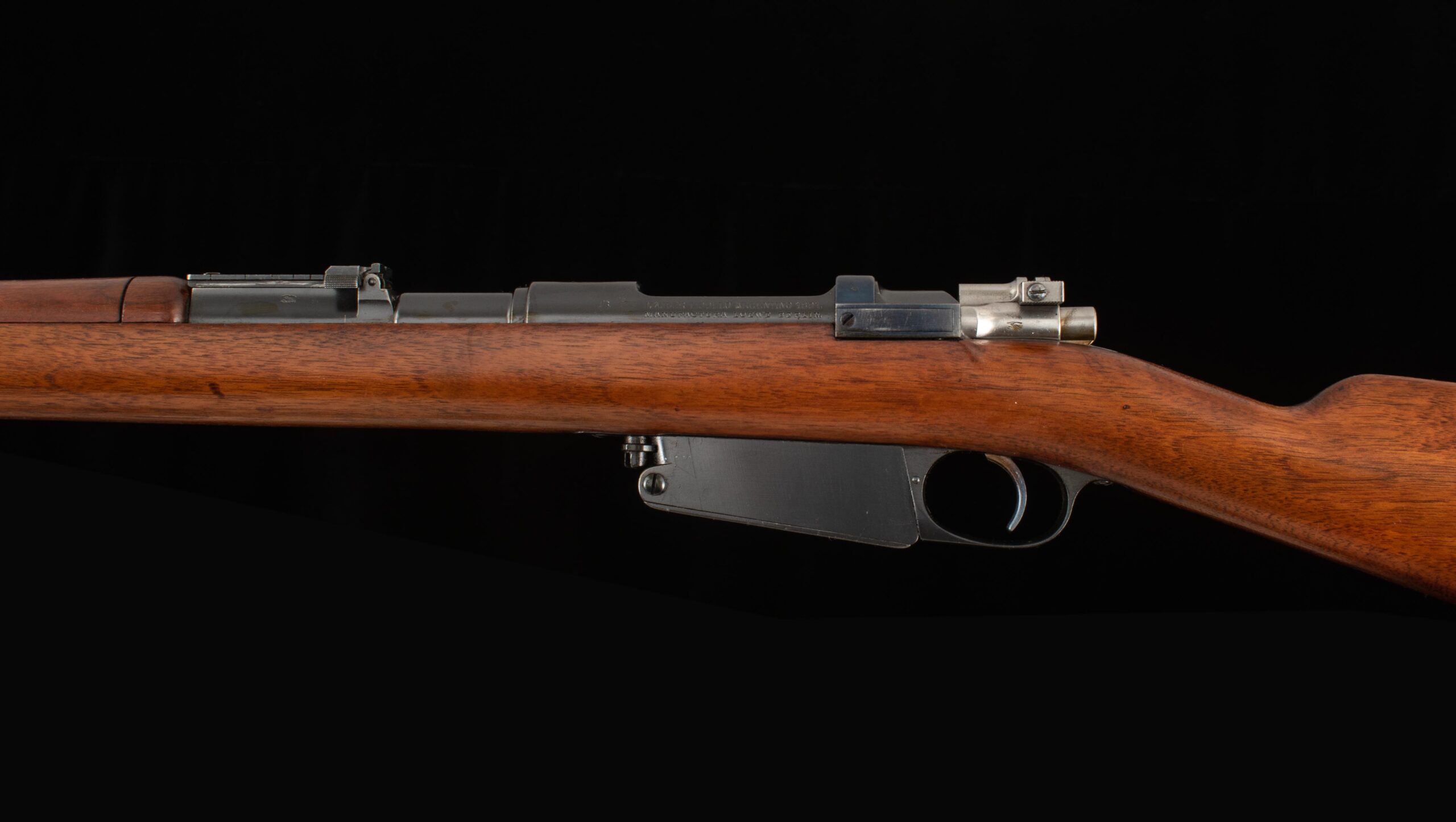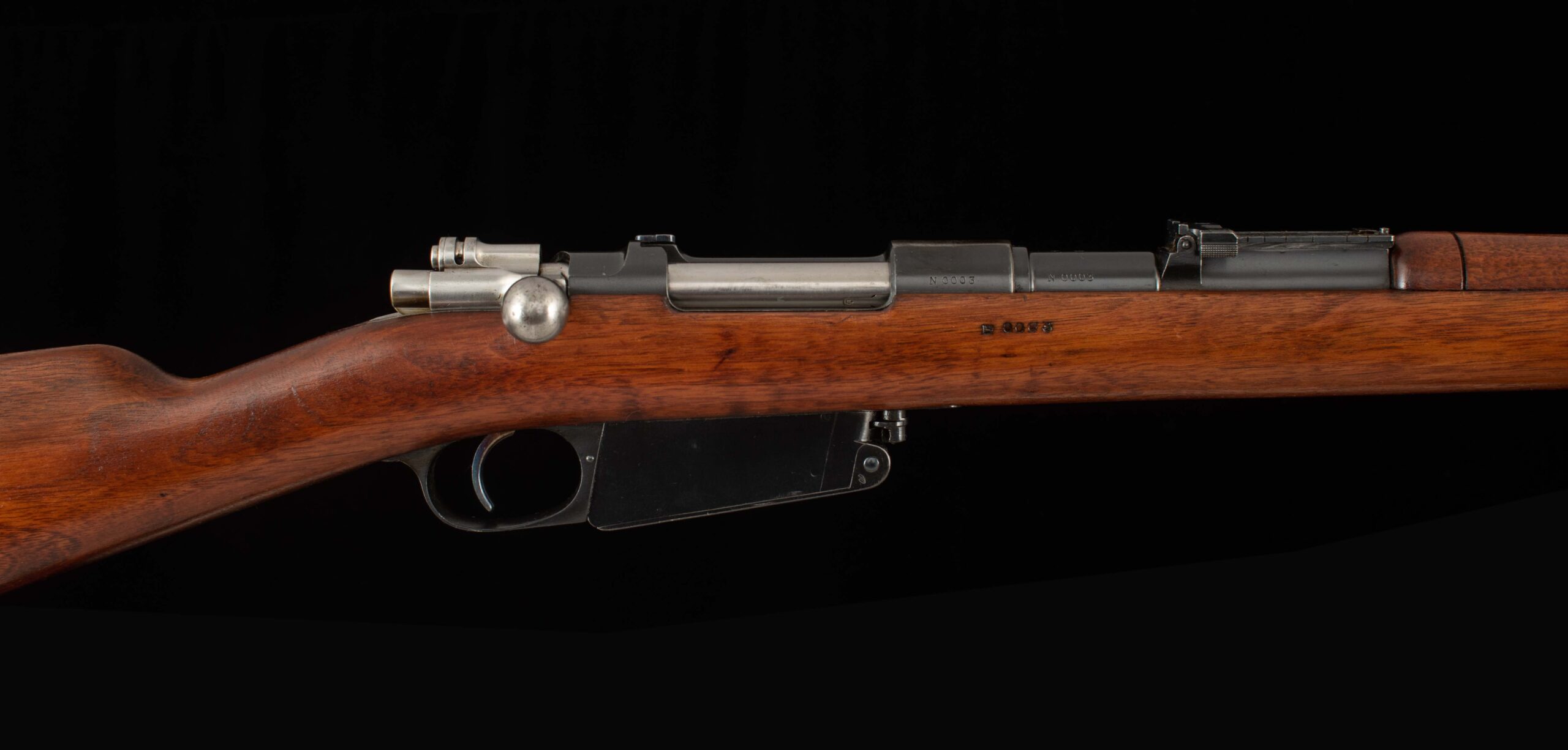 | General Specs: Ludwig Loewe & Company, 1896, 7.65×53 Argentine/Belgian, 9lbs. 4oz. LOP 13 3/16″ Serial Number: N0003 Vintage Firearms is pleased to present this Mauser Modelo Argentino 1891, Argentina’s first repeating rifle. In the late 19th century Argentina began the process of modernizing its military arms in 1886, after ordering 180 thousand rifles and 30 thousand carbines chambered in 7.65×53mm from Mauser for the purpose of replacing the by then outdated single-shot Remington Rolling Block rifles. These rifles designated the Modelo 1891 and produced by Ludwig Loewe and later DWM, rifles remained in police service up into the 1960s. This example, serial number N0003, manufactured in 1896 by Ludwig Loewe, comes with an 1891 pattern bayonet and sling. The 29” barrel retains 99% factory finish and has a bore that rates 6.5/10 and has strong rifling. The receiver and bolt retain 90% factory finish and has had its crest removed. This rifle has matching serial numbers on the barrel, receiver, bolt, stock, magazine, and cleaning rod. A great choice for any militaria collector and are just a blast to shoot! Have a look at the detailed specifications and pictures below. Thanks for looking!
