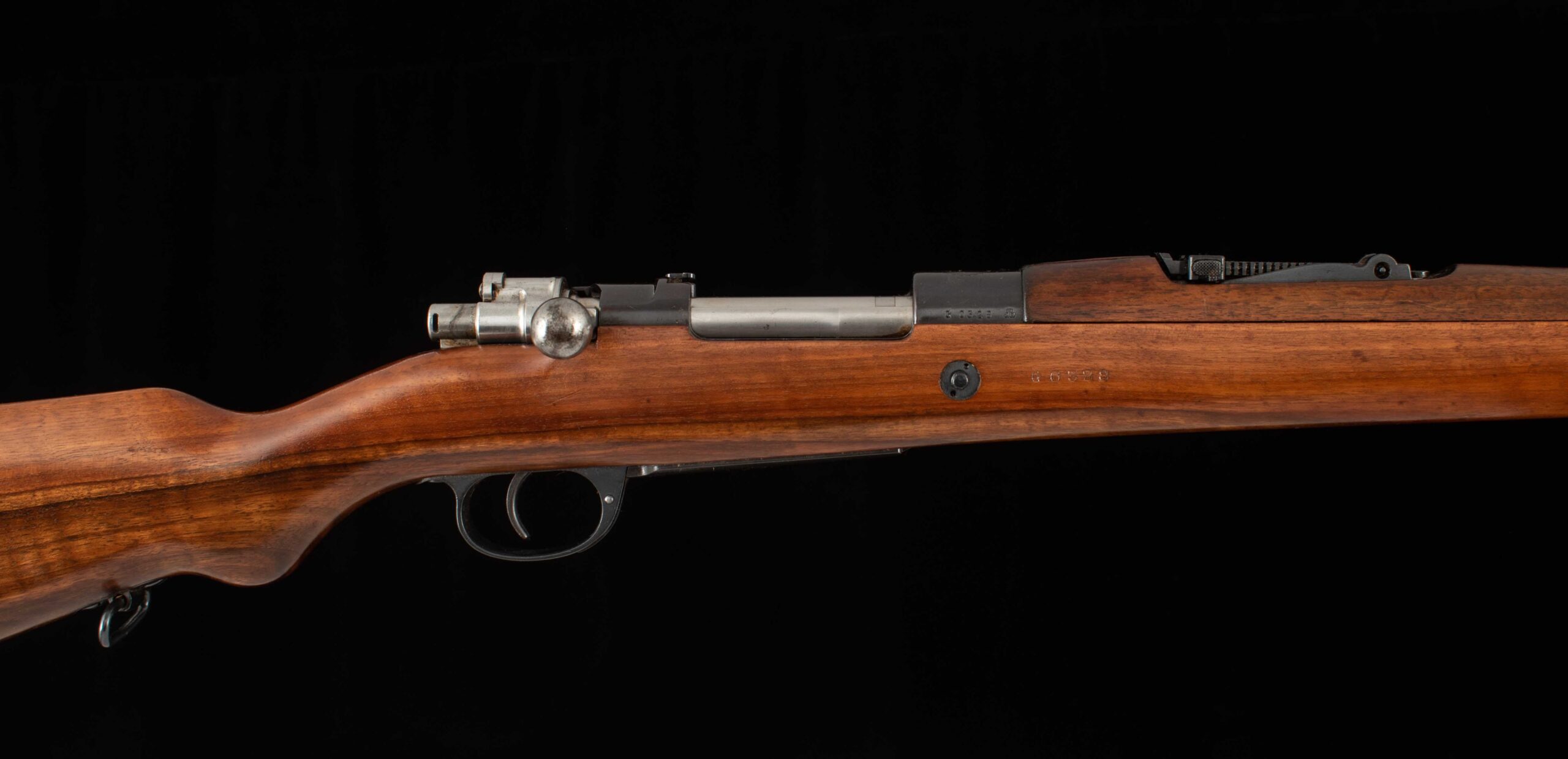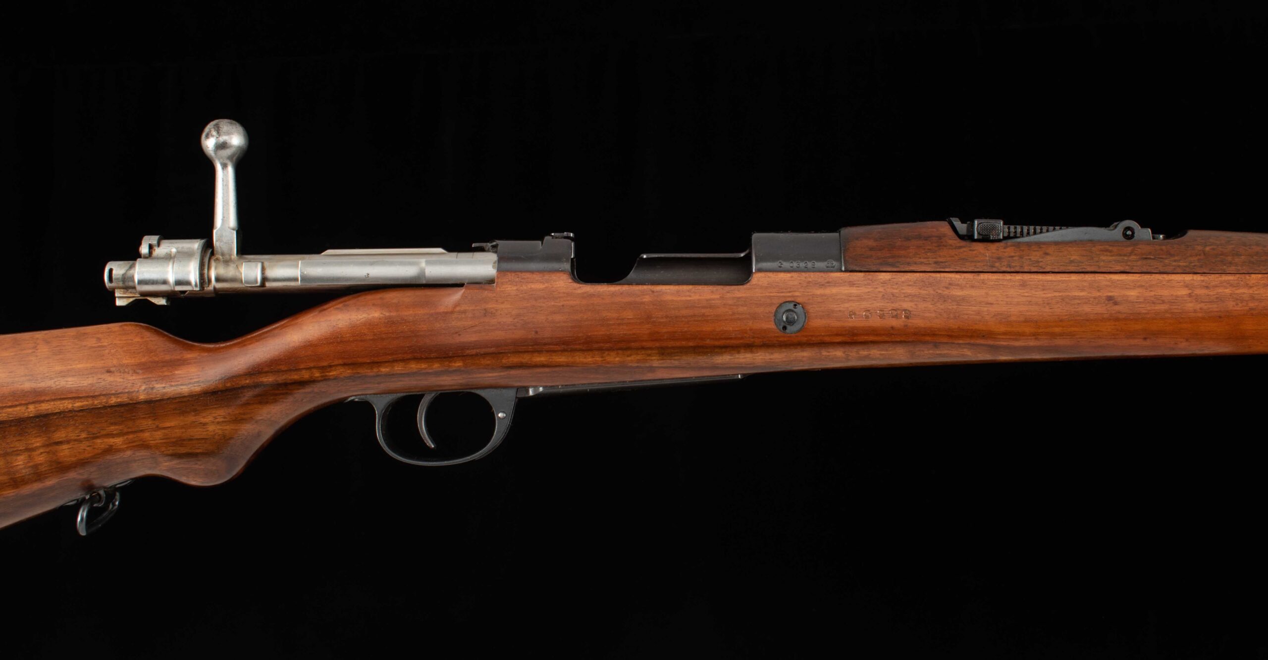 | General Specs: DWM, 1910, 7.65×53 Argentine/Belgian, 9lbs. 7oz. LOP 13 1/16″ Serial Number: G0328