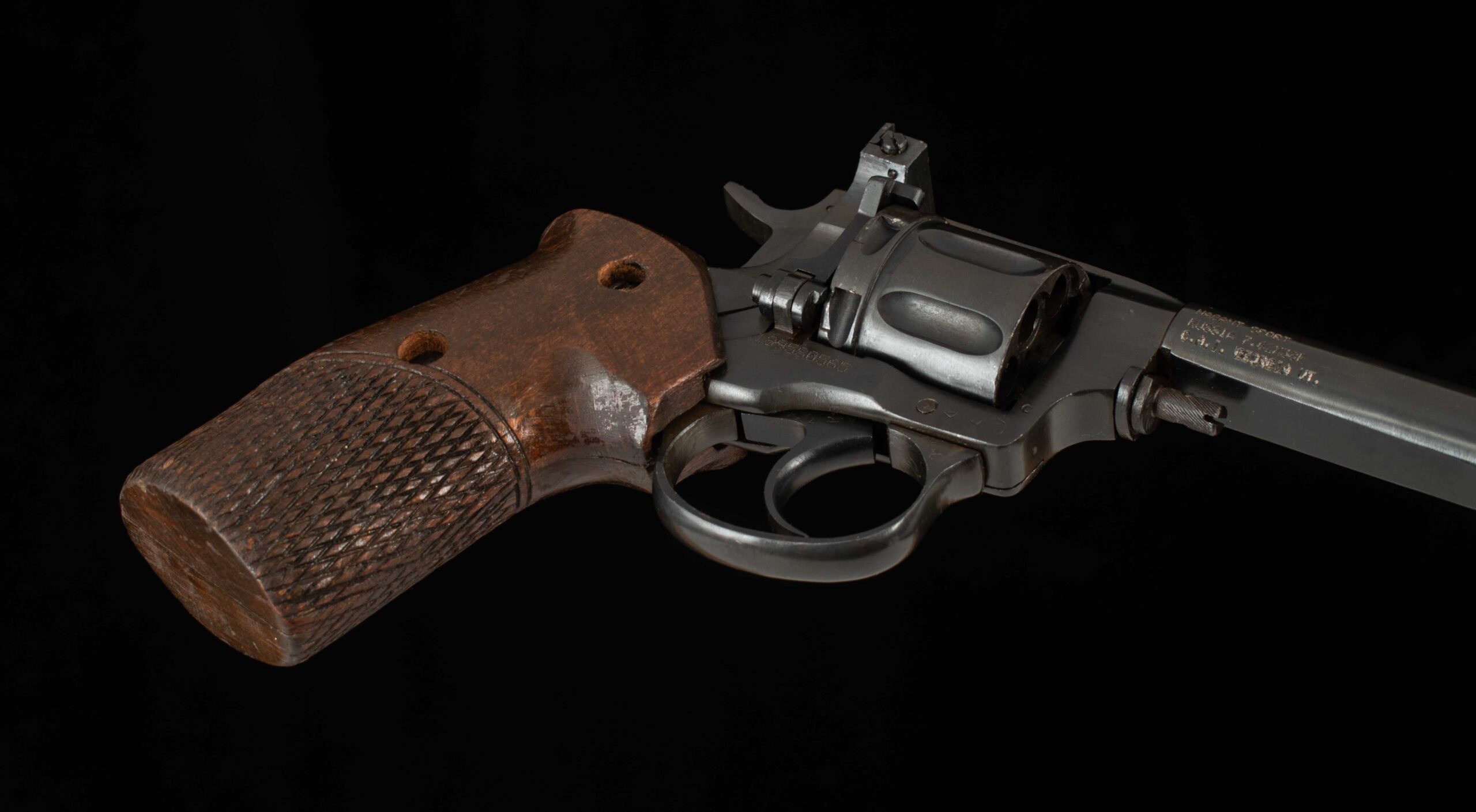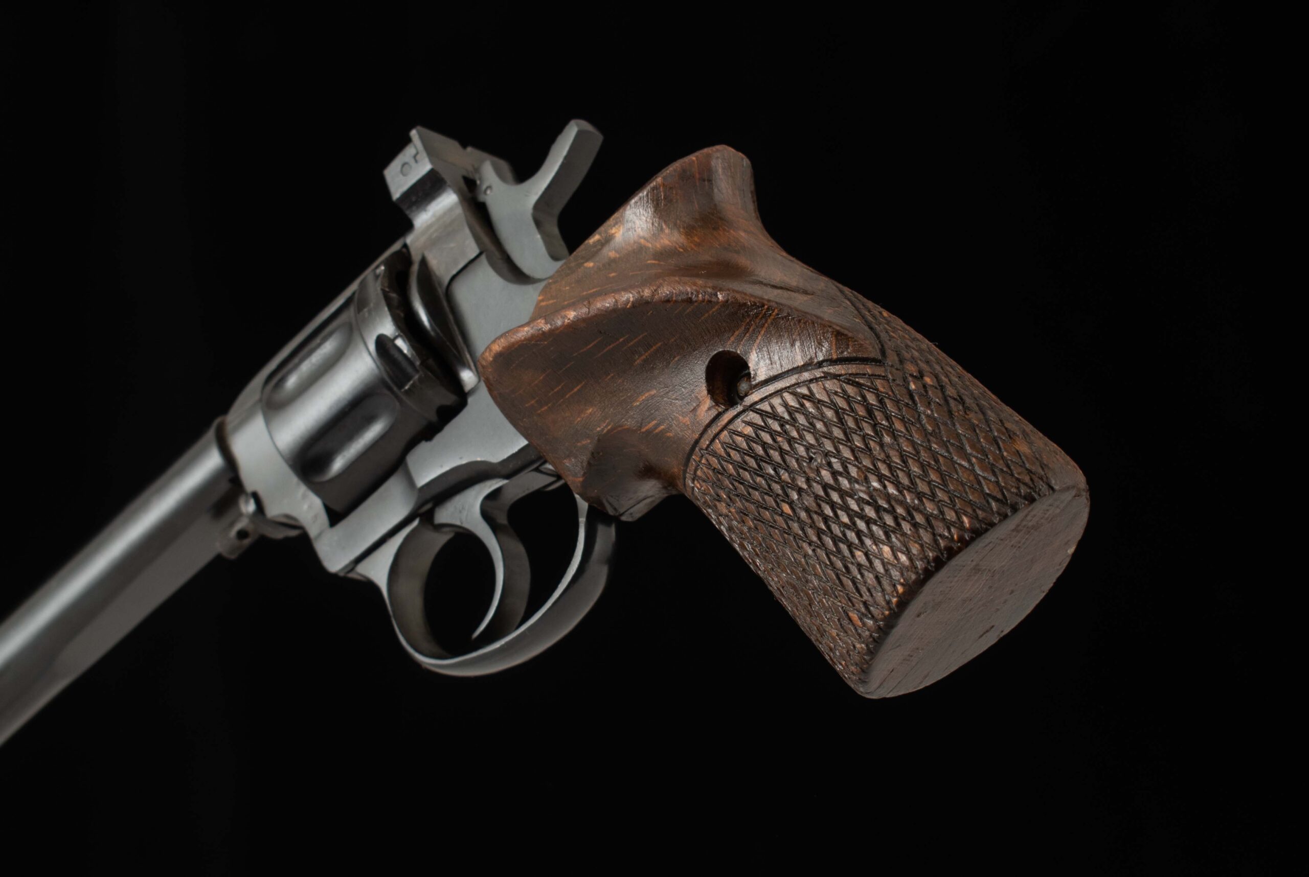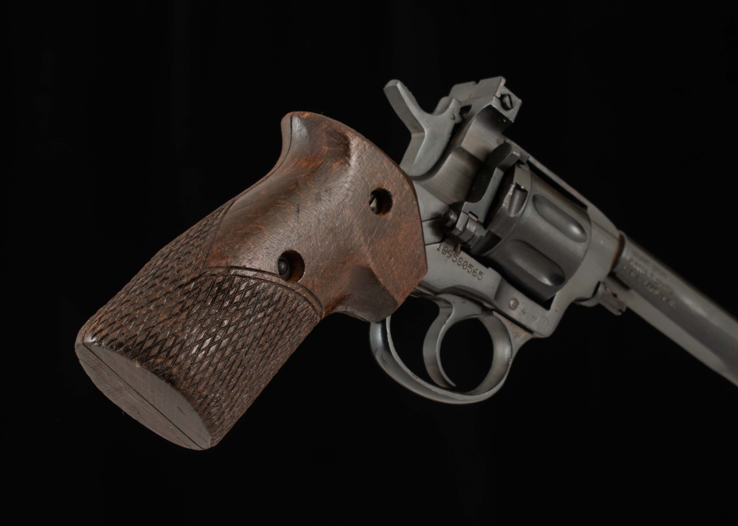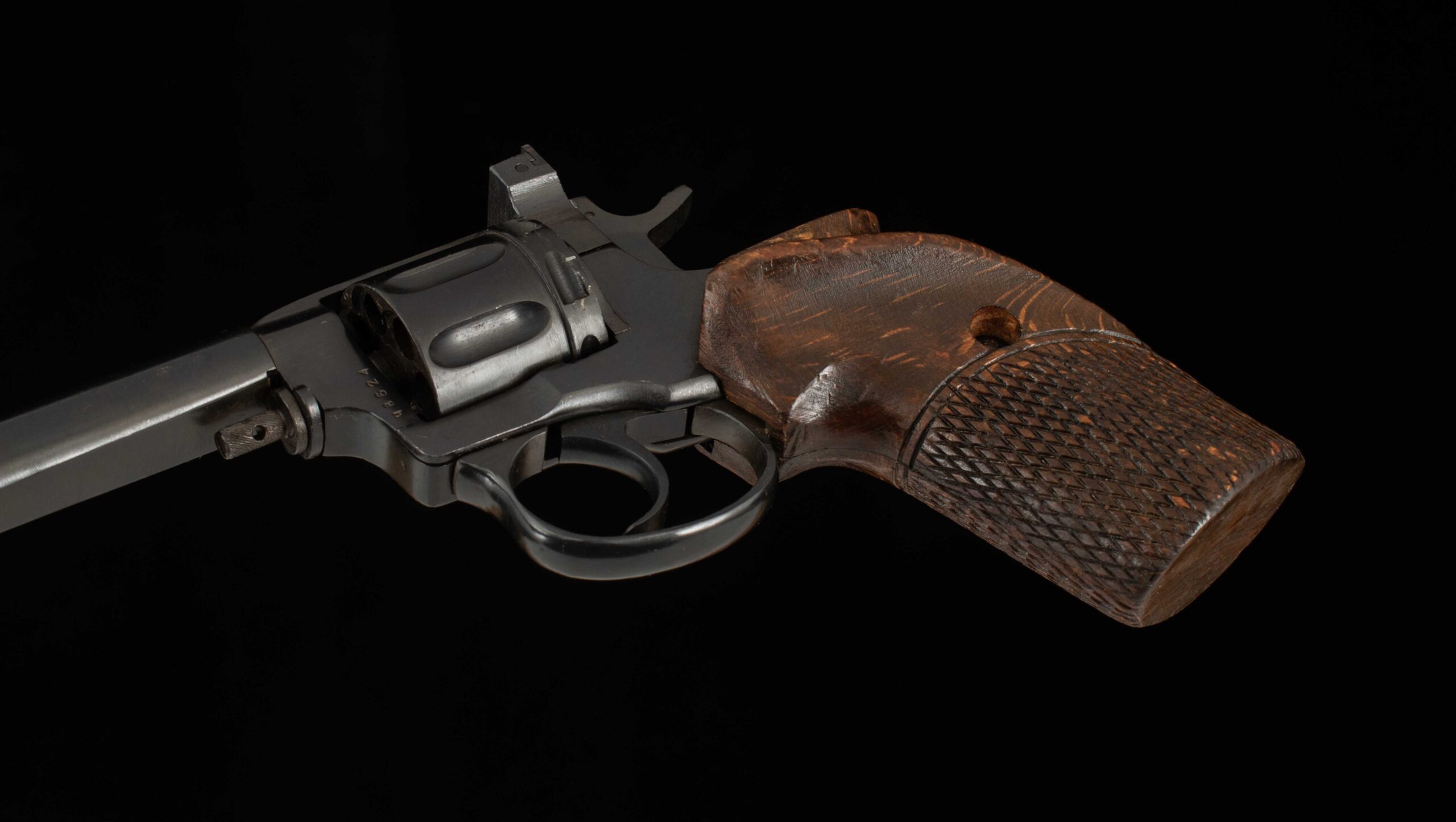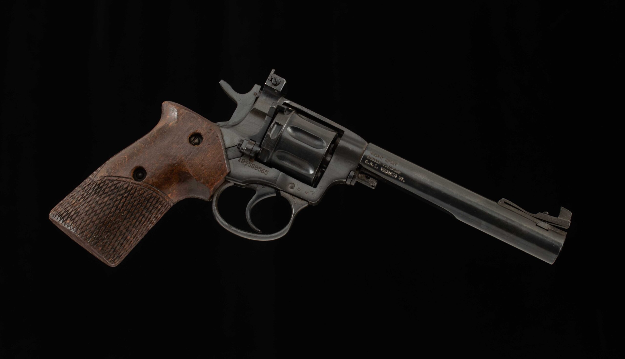 Vintage Firearms is pleased to offer this unique Soviet Target Revolver. In the early 1950s, the Soviets found themselves in need of a competition revolver. Their outdated M1895 Nagant revolvers couldn’t match the accuracy of Western target revolvers, and at the 1954 World Championship in Caracas, the Soviets purchased two Smith & Wesson revolvers on-site, leading the team to win gold and set a world record. This spurred the Soviets to develop a domestic competition revolver; however, the original M1895 service models had been out of production since 1946. Thus, the MTS-4 was created by modifying existing Nagant revolvers with an orthopedic grip, a heavier longer barrel, and adjustable sights. This example, serial number 1895S0565, is in superb condition and still has its gas seal. It retains 98% factory finish on the barrel, receiver, and trigger guard. This Nagant is single action only with a crisp trigger pull, breaking at just 5 pounds with very little creep. What a unique target revolver, and a must for any M1895 Nagant enthusiast. Have a look at the detailed specifications and pictures below. Thanks for looking!