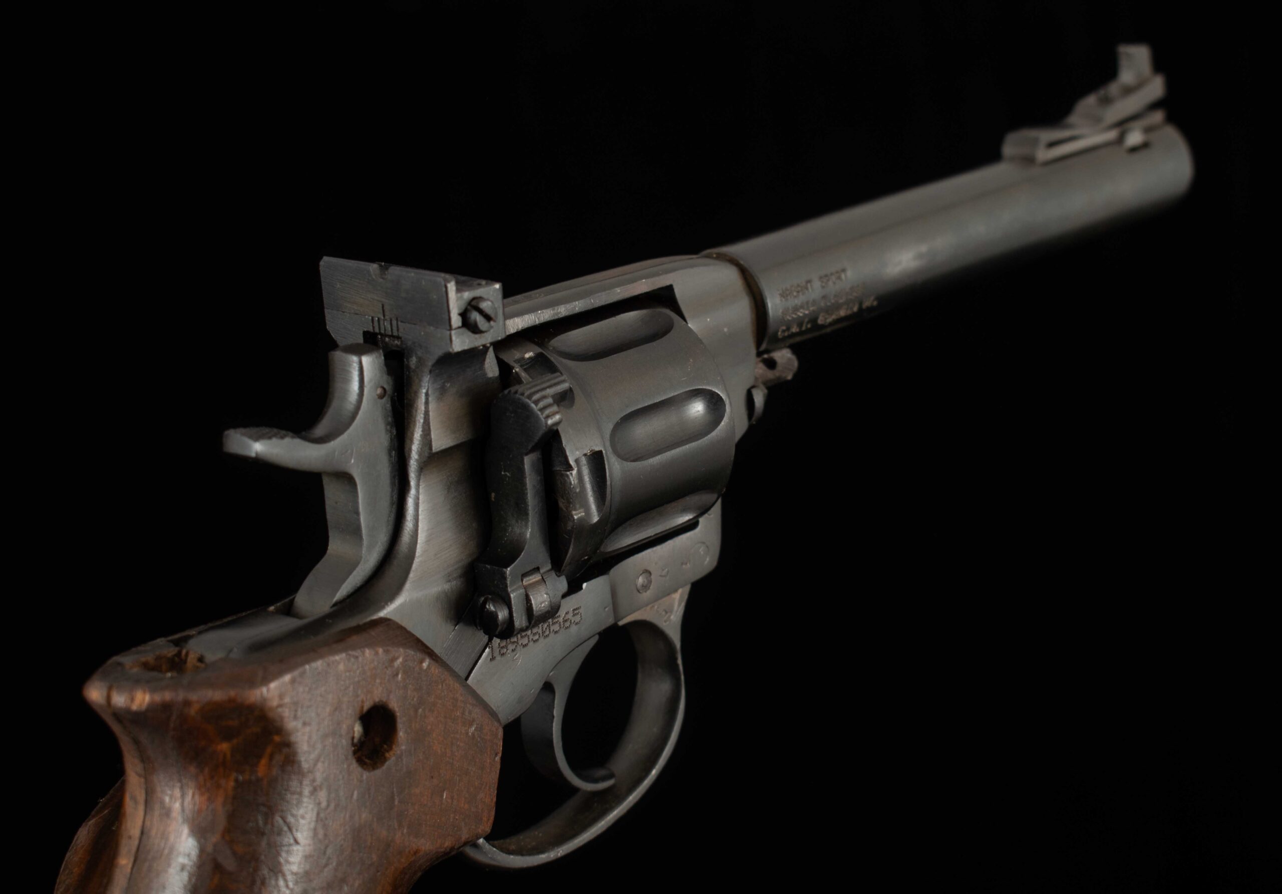 | Barrel Length: 6″ Bores: excellent % Blue: 98% Sights: adjustable front wedge, adjustable rear U notch |