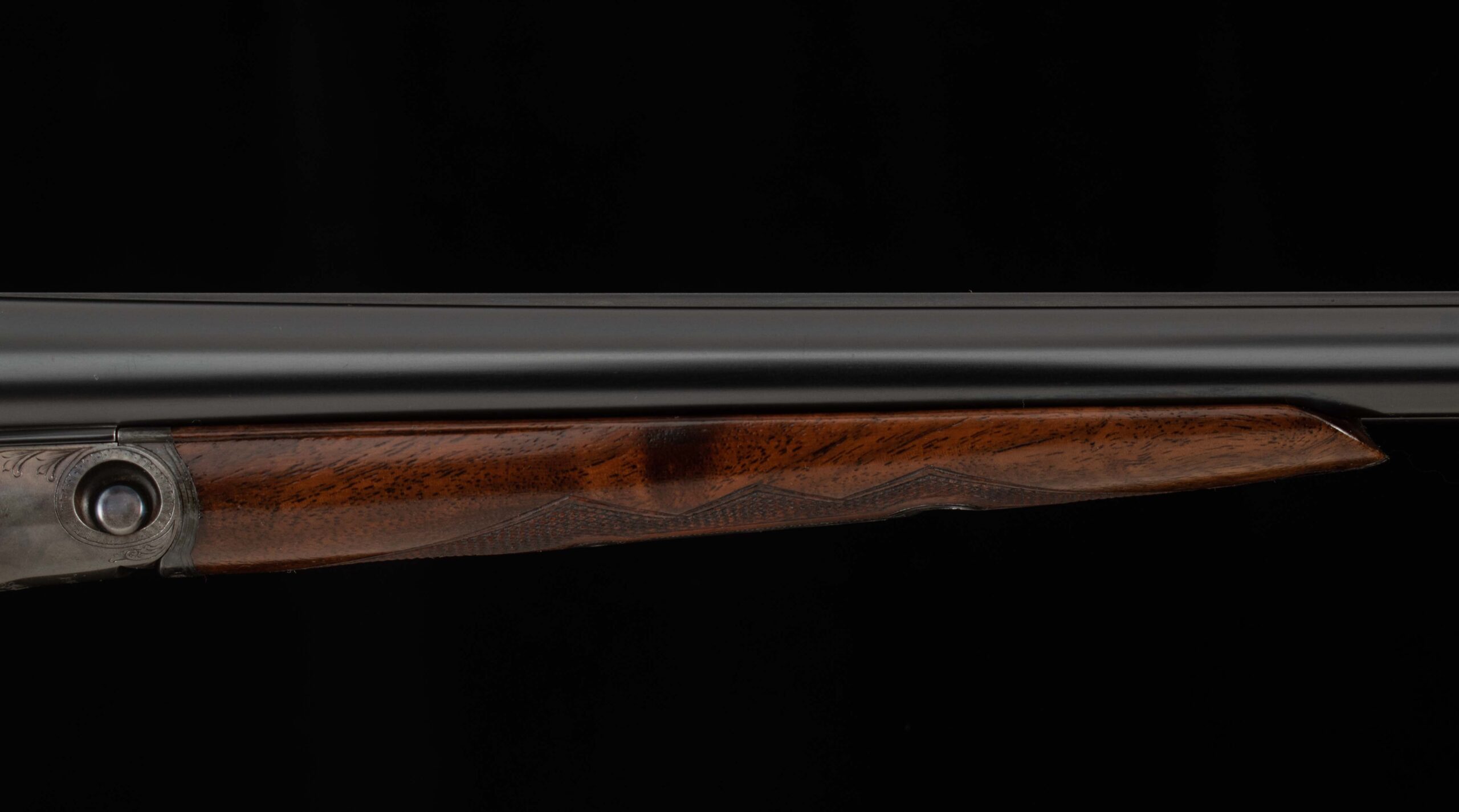 The Parker Grade 2, or GH Grade, is the first in the Parker lineup with the more interesting “game scene” engraving. The GH grade has nicely figured wood and the is checkering more detailed. For the shooter that wants a representative example of a Parker bird gun that can be taken afield and done affordably, the GHE grade is a great start. The stock on this gun has a unique and attractive grain pattern. The versatile 16 gauge choked modified and full give a great range of potential out in the field, or on the clays course. The single selective trigger, auto-safety, and ejectors all operate as they should. The action locks up tight with the lever well right of center. We provide the most comprehensive photography and specifications in the marketplace, information that allows you to make a good choice. Just remember, nowhere is it more apparent than in the gun world…you get what you pay for! If you want an upland gun you can rely on, buy one that is field ready and can safely shoot modern, available field loads. See the specifications below.