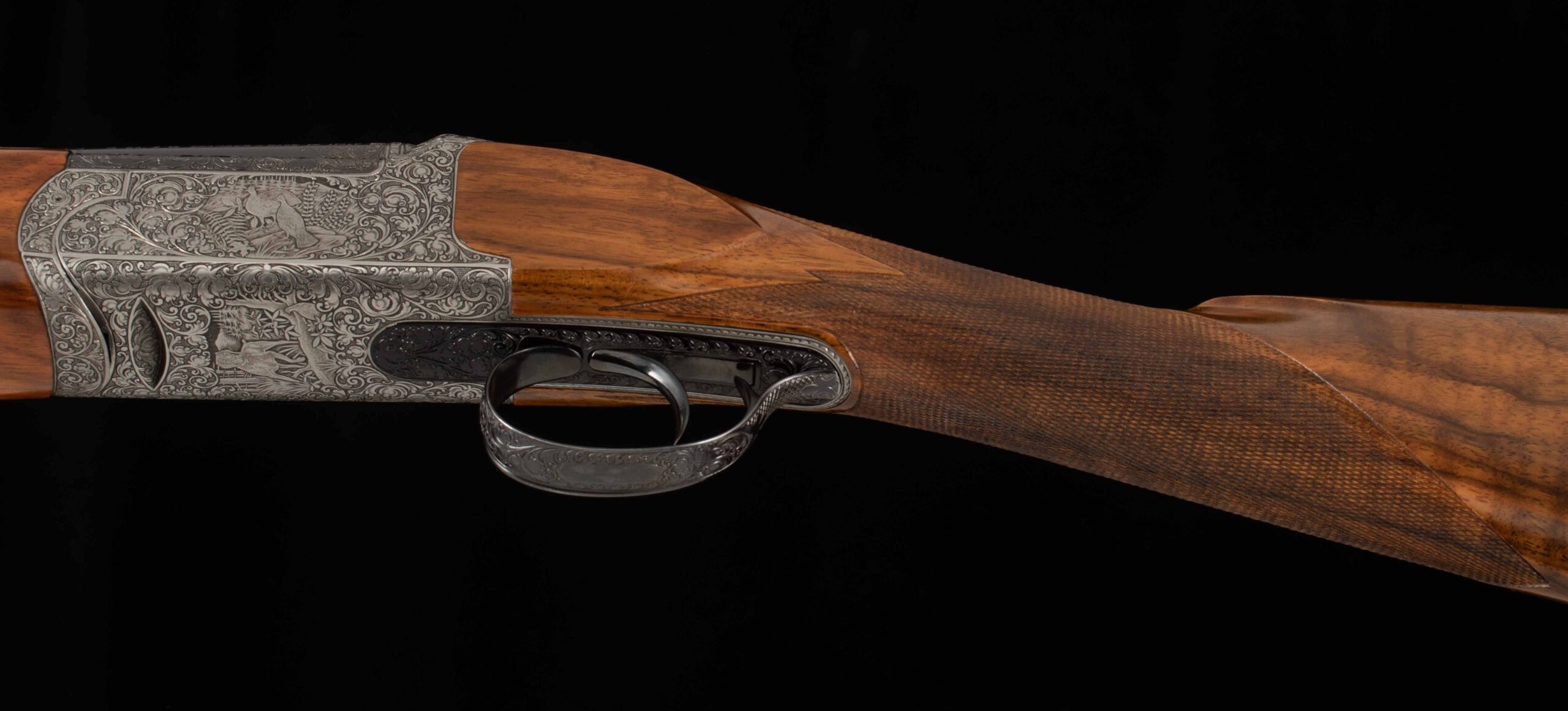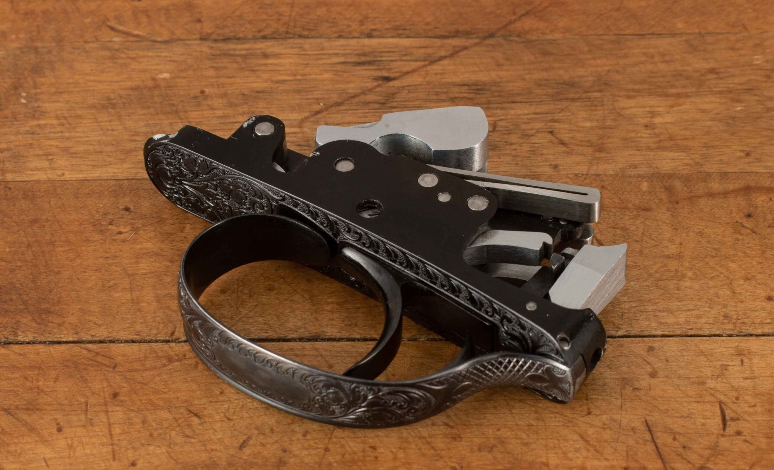 | Action: tight-centered Ejectors: timed Receiver Condition: 100%; coin finish Engraving: full coverage by Claus Willig Trigger Type: single non-selective-crisp Trigger Guard Color: 99% |