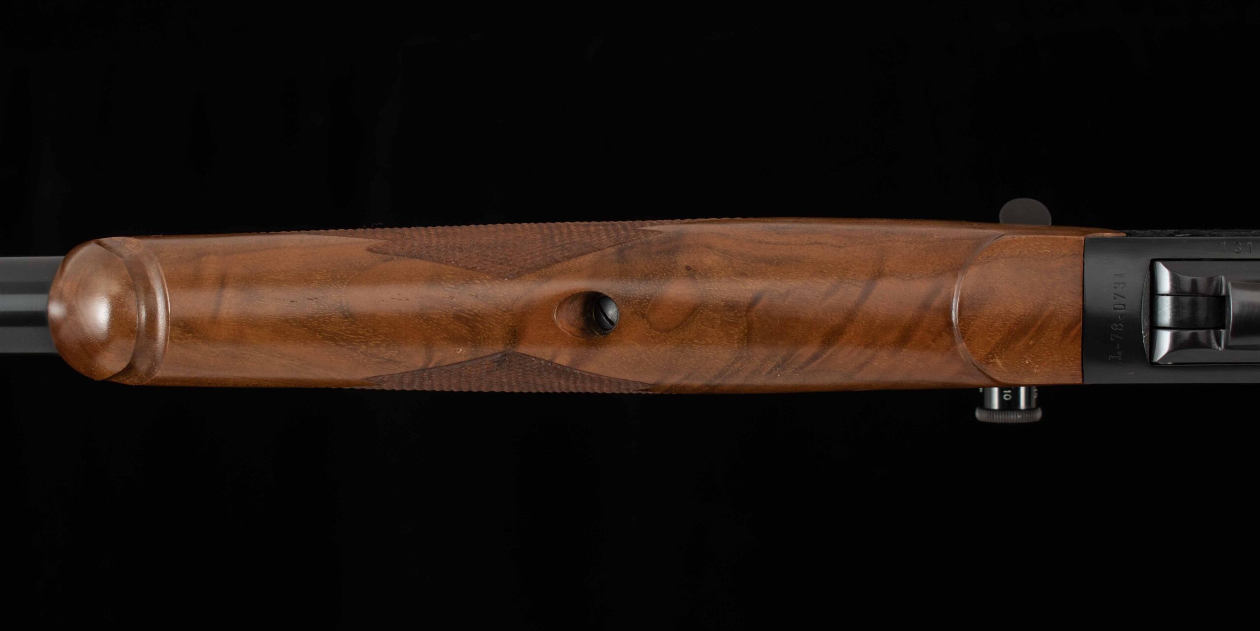| Type: capped pistol grip/Alexander Henry forend LOP: 13 13/16″ LOP To End Of Wood: 13 1/4″ Checkering Condition: perfect Butt Treatment: Ruger rubber pad |