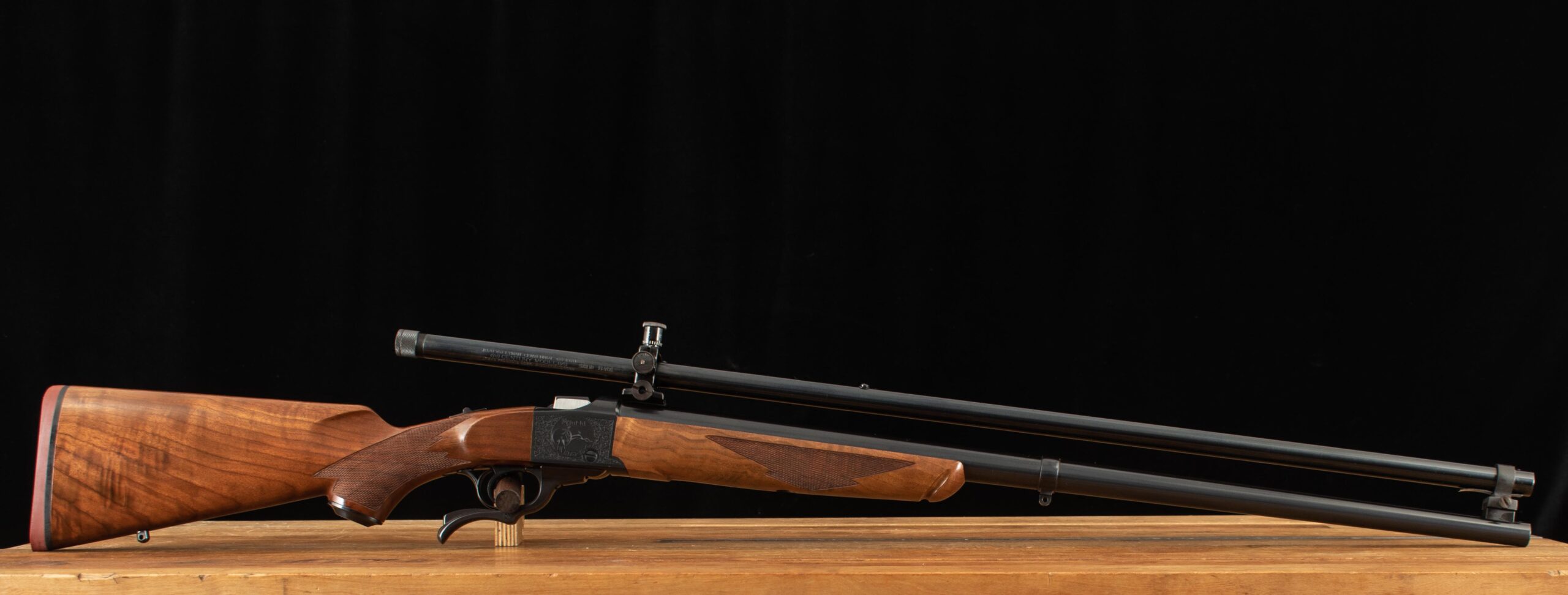 | Barrel Length: 28″ Bores: 10/10 mirror % Blue: 100% Capacity: 1 Sights: 4X Lyman Centennial Model |