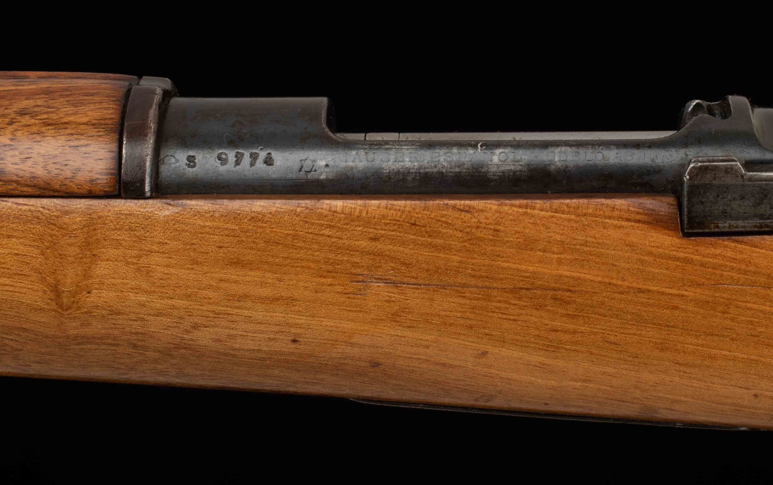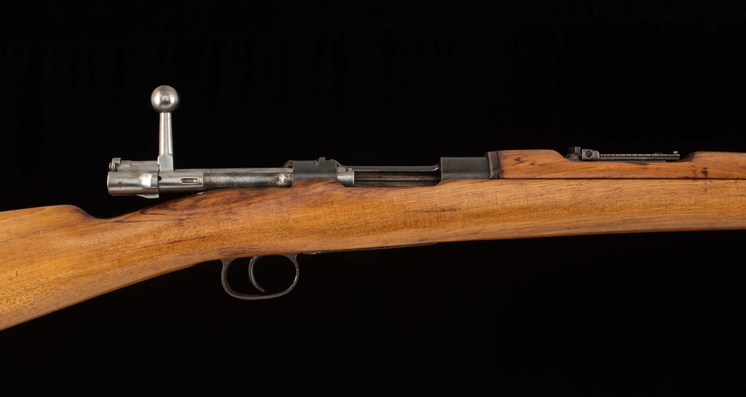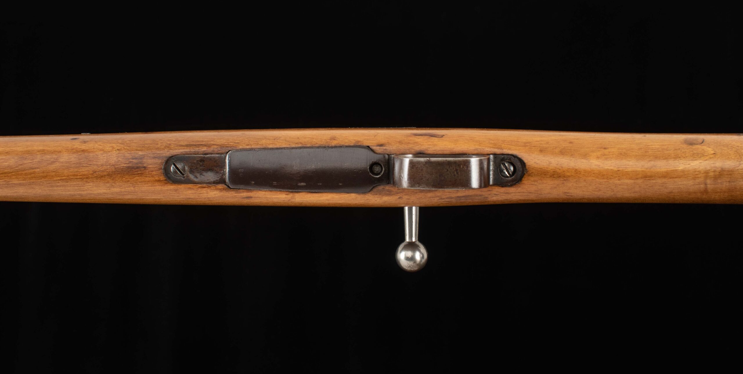 Vintage Firearms is pleased to offer this Mauser Model 1893 and is most notable for its service in the Spanish American war. As Spain’s empire declined in the late 19th century, it sought to modernize its military and adopted the at the time new Mauser Model 1893. The Mauser 93’s design introduced many of the features we today associate with Mauser rifles such as the long claw extractor, staggered internal magazine, and flag safety. The 93 performed well in the Spanish American War despite Spain’s defeat and directly lead to the US adoption of their own Mauser action rifle in the M1903. Beyond the Spanish American War, the 1893 saw use in Africa and in the Spanish Civil war, though outdated by the late 1930’s. This example, serial number S 9774 manufactured in Berlin and was most likely manufactured in 1896 by DWM, although, the date is difficult to make out. Please note the serial numbers on this rifle do not match, the receiver, bolt, magazine floor plate, and trigger guard all have different serial numbers. The barrel retains 98% finish, and the receiver retains 90% finish with rest fading to a pleasant silver. This Spanish Mauser would make an excellent addition to any militaria collection, especially if you already own a Krag and need a rival for it! Have a look at the pictures and detailed specifications and pictures below. Thanks for looking!