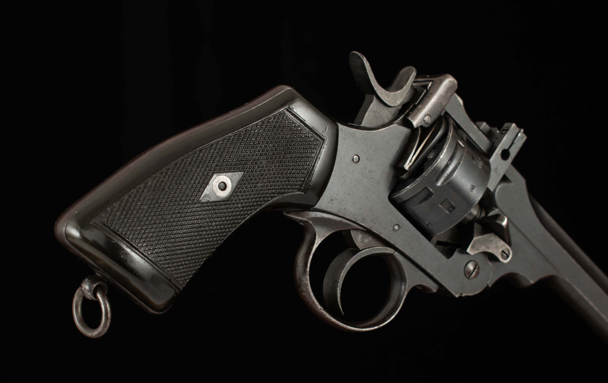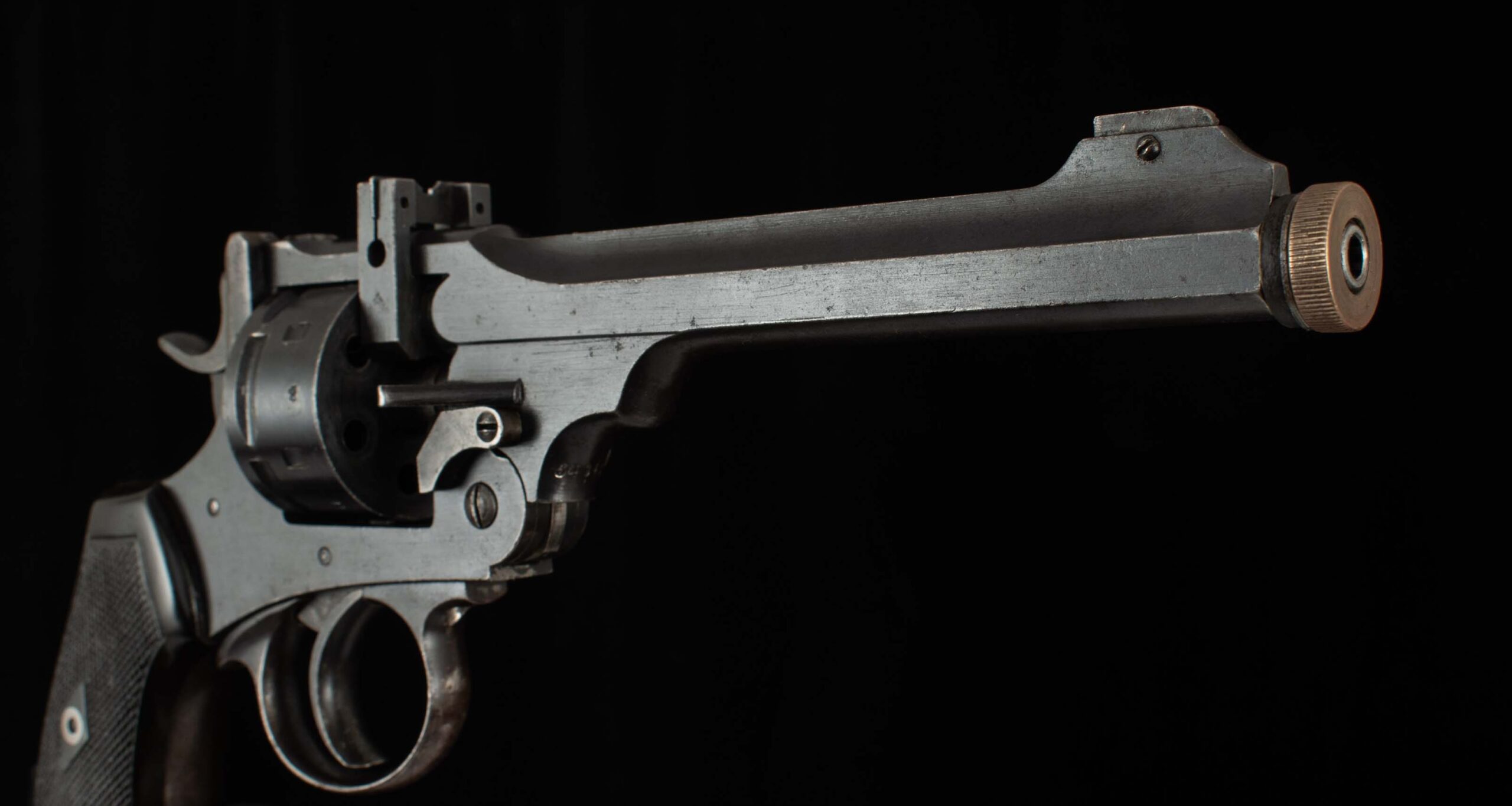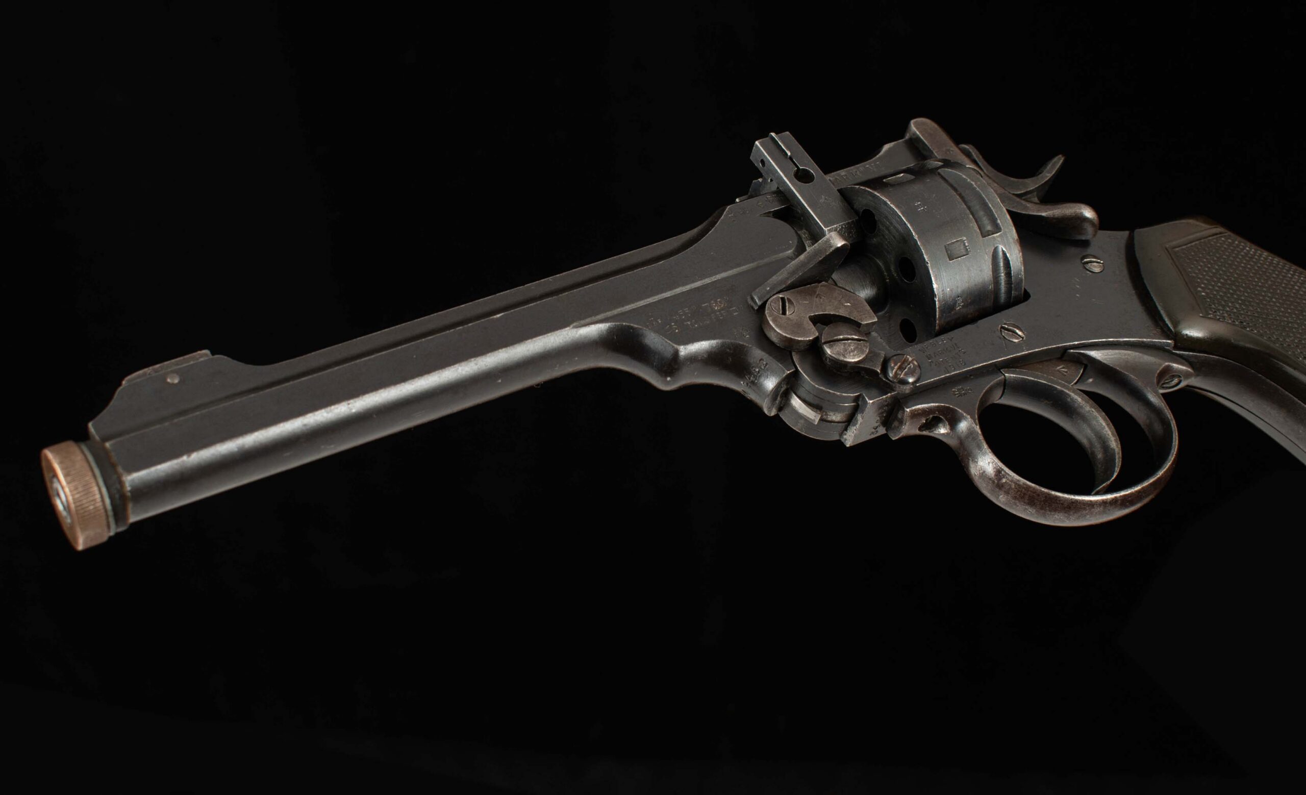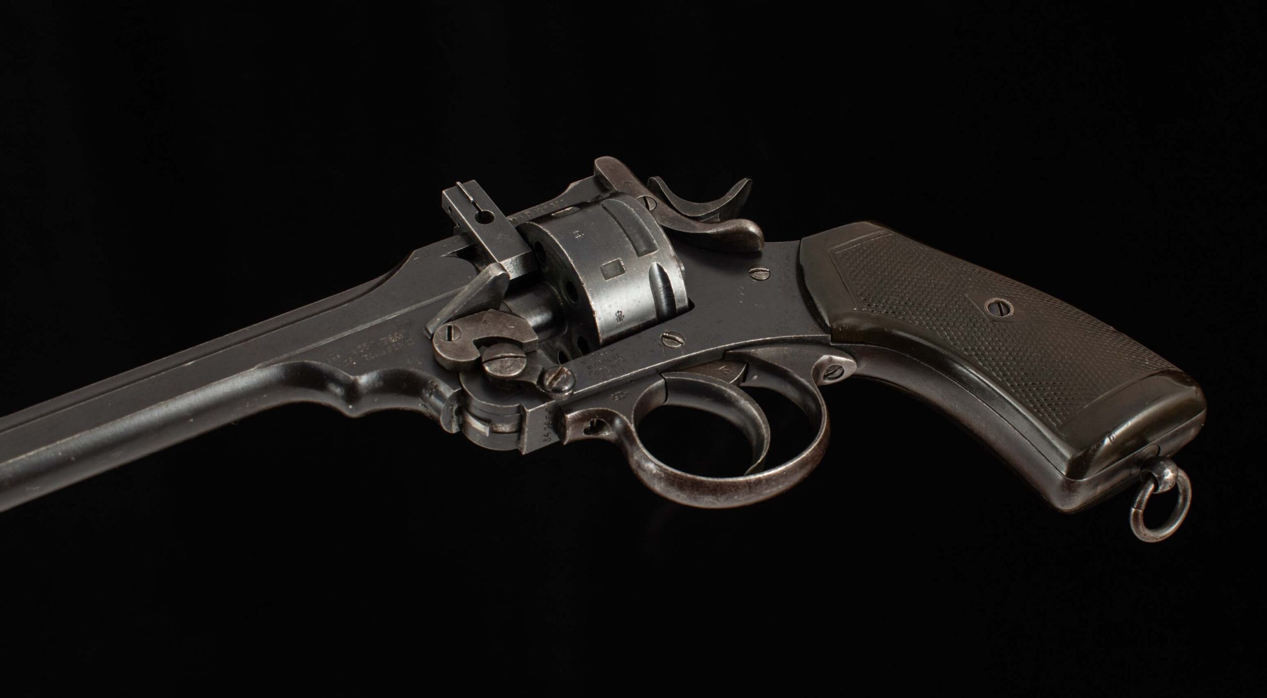 | General Specs: Webley & Scott, c1918, .22 Long Rifle, 43oz. 6 7/8″ Serial Number: 349422 Vintage Firearms is pleased to offer this unique British revolver conversion; the Webley revolver was adopted as the British service revolver in 1887 and served that role until 1963. The Mk VI was adopted in 1915 and served with distinction throughout The Great War. The Webley Revolvers earned the moniker of the “Webley Self-Extracting Revolver” for its top break action which ejects spent casings, thus quickening reloads. This example, serial number 349422 was manufactured circa 1918, is equipped with a Parker-Hale cylinder and “Parkerfield” rifled liner, which converts the Webley to fire .22 long rifle. Originally chambered in .455 caliber, some guns were later converted to .22LR for lower cost training although the recruit would still qualify with the full power cartridge. This Mk VI is in great overall condition, displaying excellent-shiny bores with strong rifling. The barrel and frame show 96% factory finish. The frame, barrel and cylinder have matching serial numbers, and military broad arrows signifying government ownership, with the gun well covered in acceptance stamps – as is the British fashion! This is a rare and seldom seen conversion, if you have a Webley collection or just starting one this historical gun would make a great center piece. A great choice for World War 1 collectors or those who just like unique revolvers. Vintage Firearms provides the most thorough photos, description, and specifications in the industry, providing you all the information you need to make a wise purchase. Don’t hesitate to make the call and put this gun in your collection. The specifications are shown below. Thanks for looking!