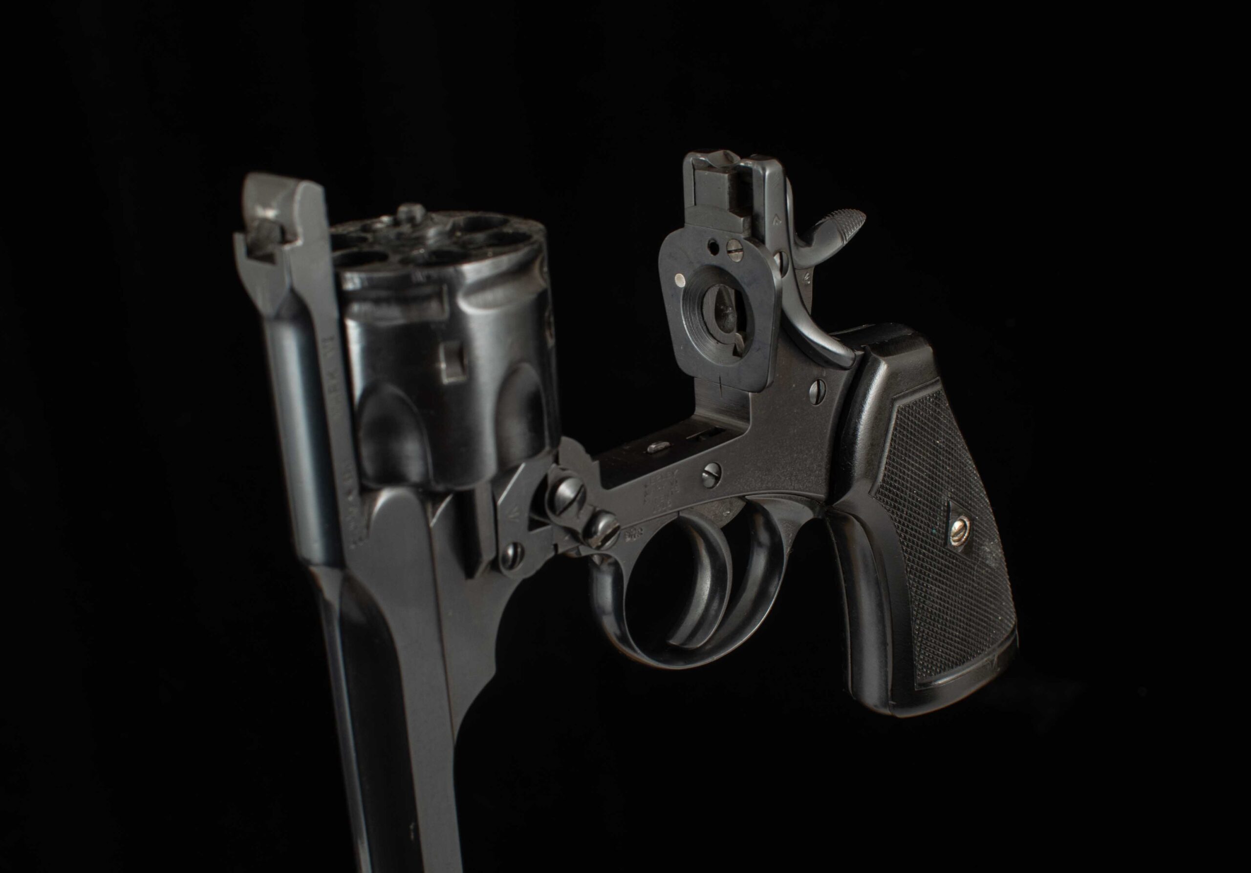 | Barrel Length: 4 1/2″ Bores: mirror % Blue: 99% Sights: front wedge, rear U notch |