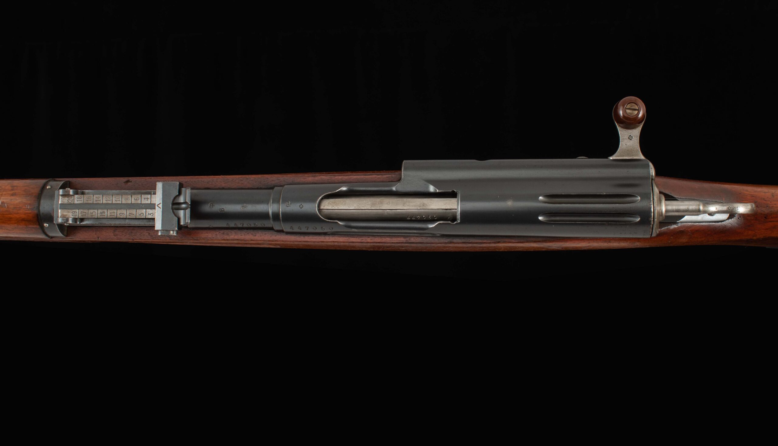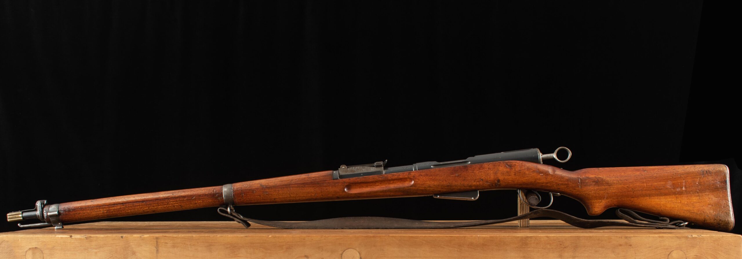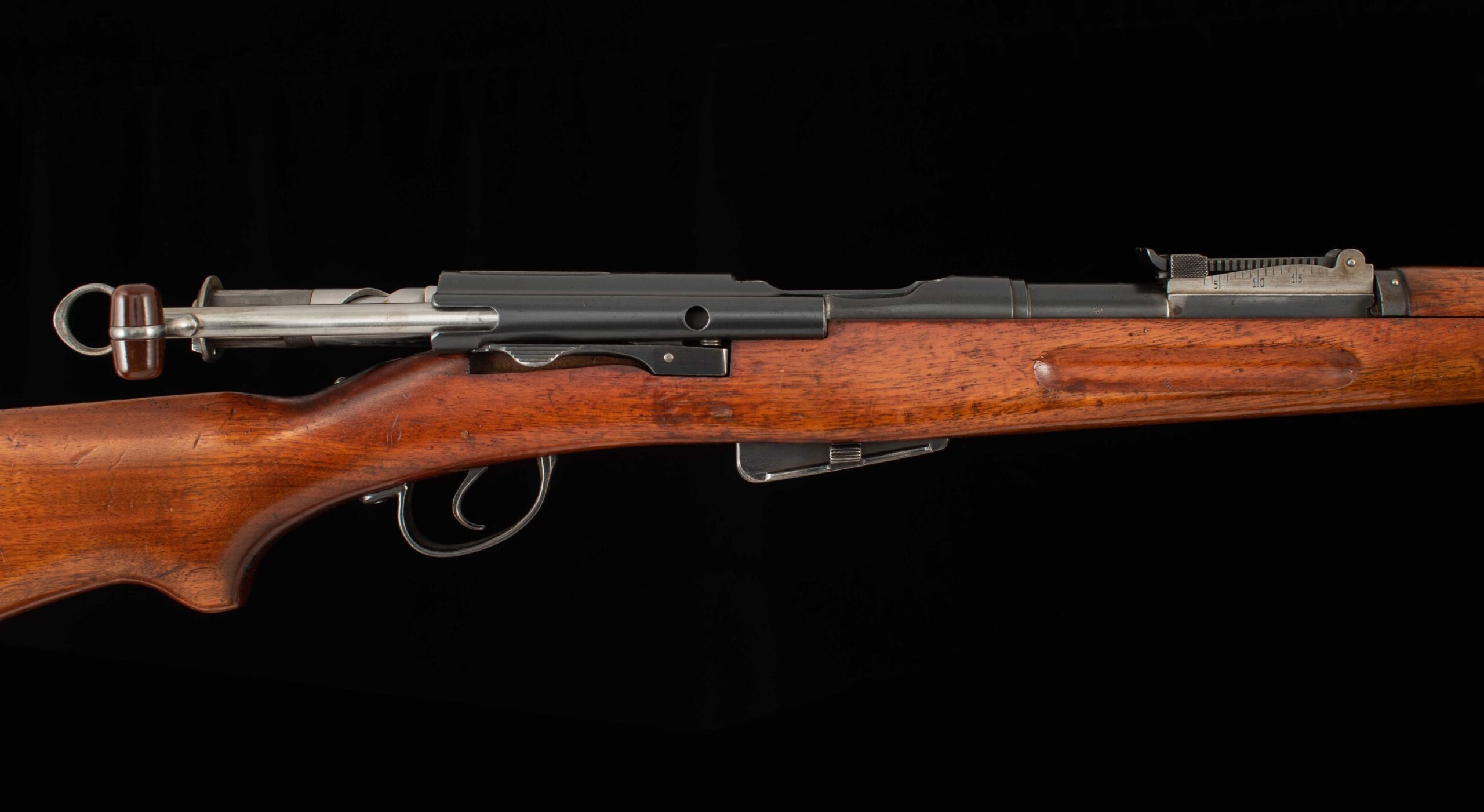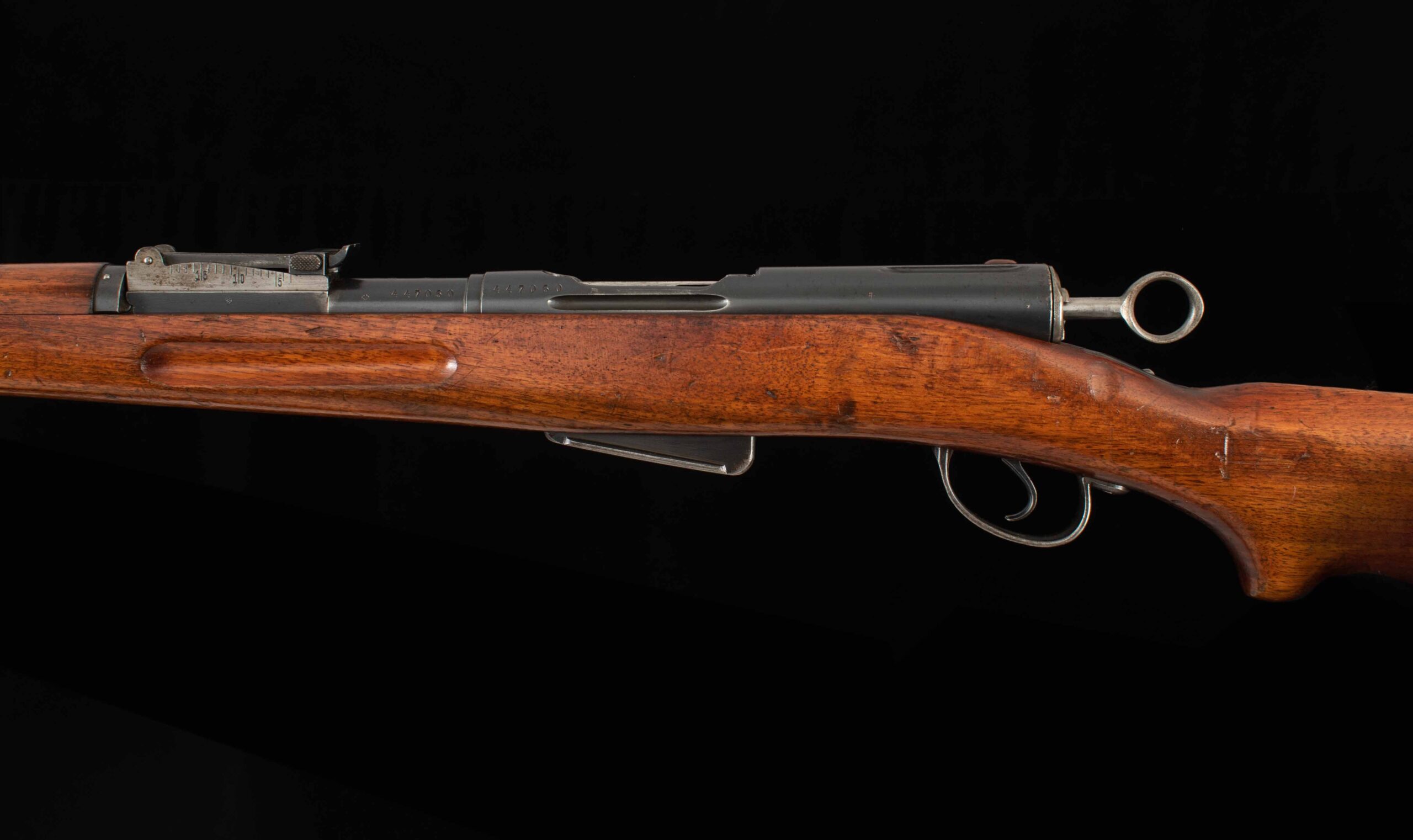| General Specs: Waffenfabrik Bern, 1917, 7.5x55mm Swiss, 10lbs. 3oz. LOP 13 3/8″ Serial Number: 447050