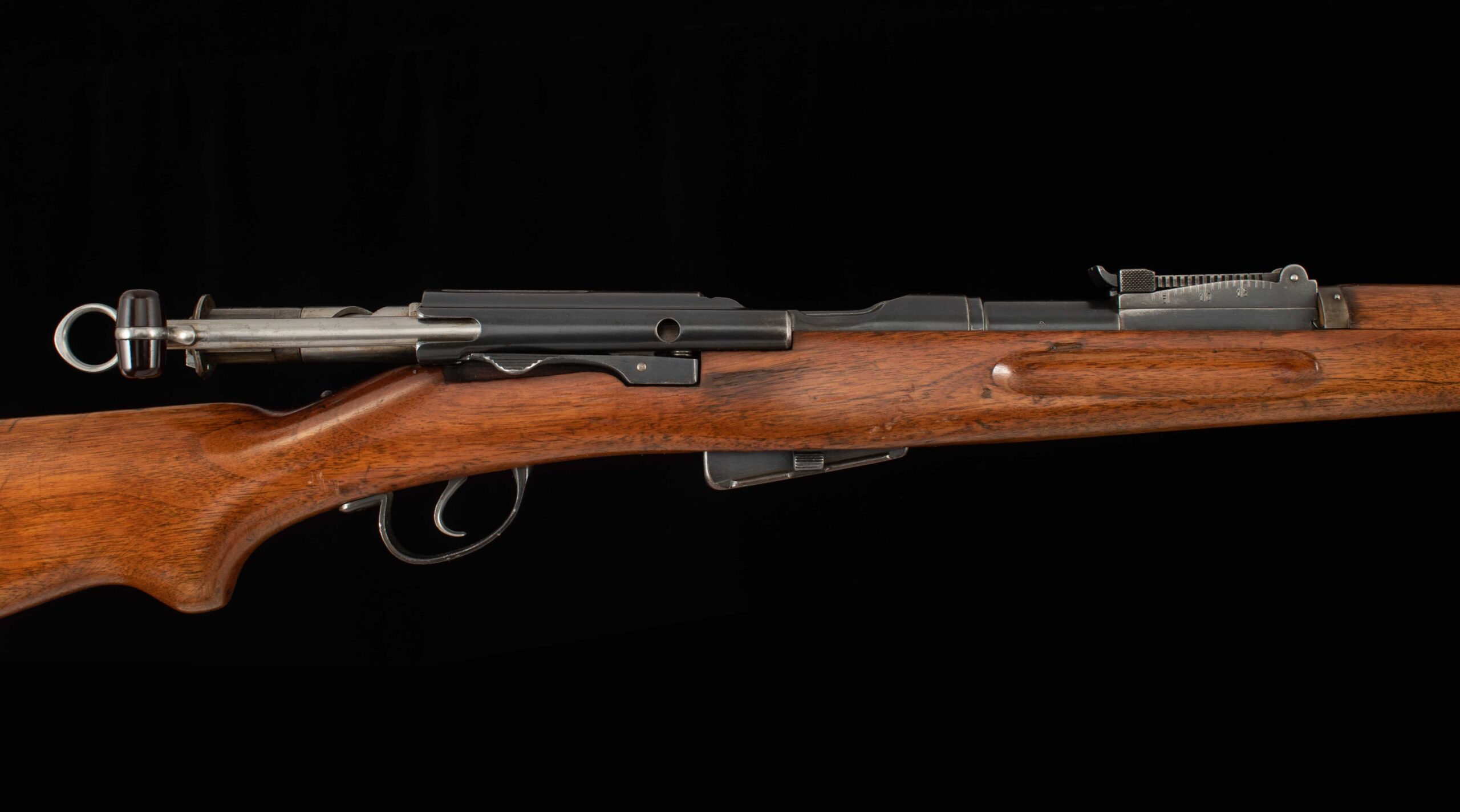 | General Specs: Waffenfabrik Bern, 1916, 7.5x55mm Swiss, 9lbs. 10oz. LOP 13 1/2″ Serial Number: 407206