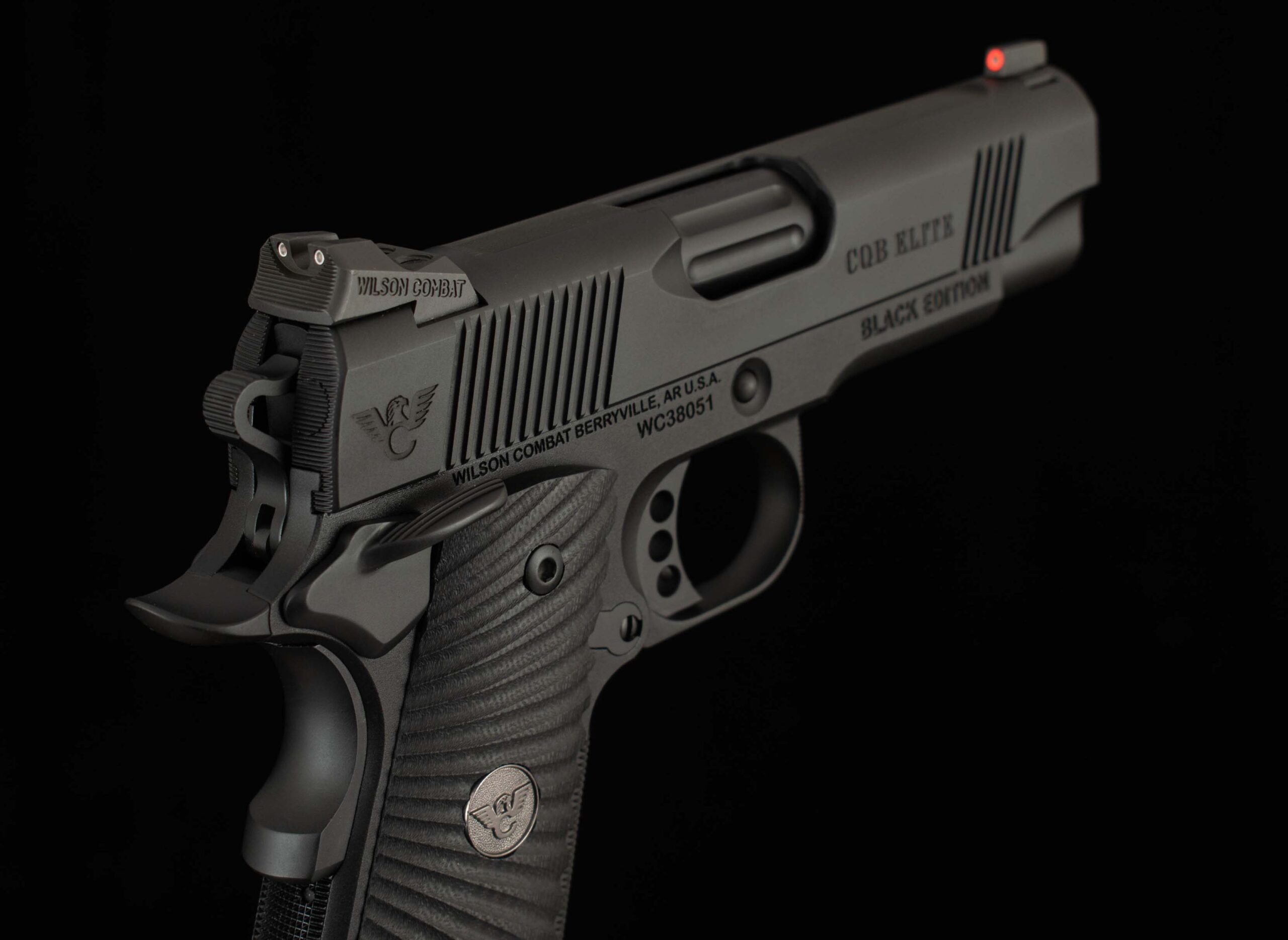From Wilson Combat- The CQB Elite package has a standard array of custom features designed to meet the needs of tactical shooting professionals, each selected with the input of experts in the field. Here’s what is standard: Bullet Proof® parts throughout, serrations on the top and the rear of the slide, Battlesight rear sight with fiber optic front sight, matching serrations on the back of the extractor, checkered mainspring housing and front strap for a sure grip, and standard G10 grips with a tapered cut-out for easy access to the semi-extended magazine release button. This CQB Elite Compact is one of our VFI Signature Series guns, and we have multiple in stock. It has been upgraded with many features such as Black Edition finish, ambidextrous safety, and Tritium sights. The Close Quarters Battle Elite Compact has a reduced size 4” tapered cone barrel with matching slide and a compact grip frame for the ultimate in service pistol concealability. If your requirements are for a compact custom carry pistol loaded with the most popular custom features, the CQB Elite Compact should fit the bill. See below for the standard features, followed by the VFI custom upgraded features.