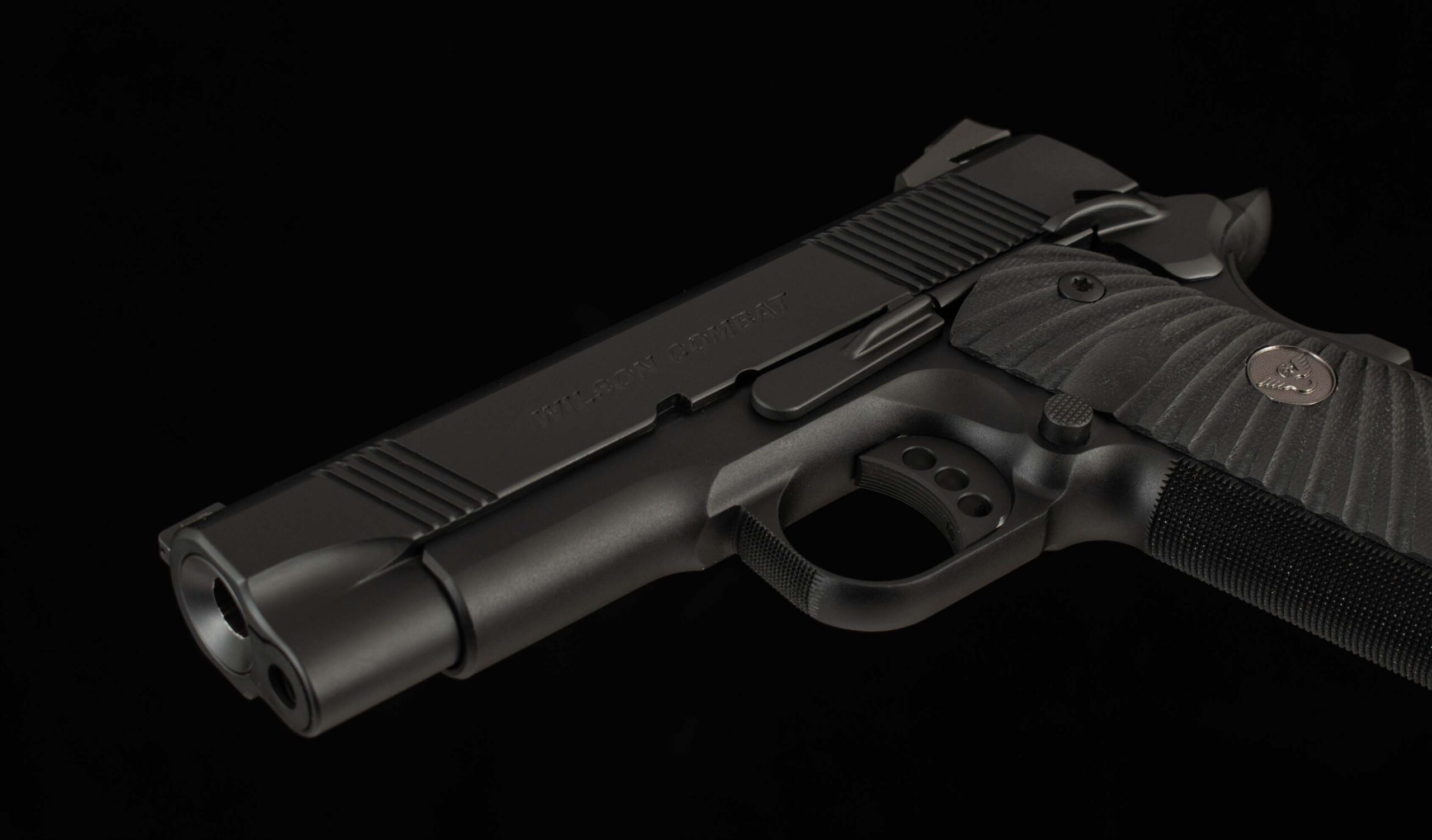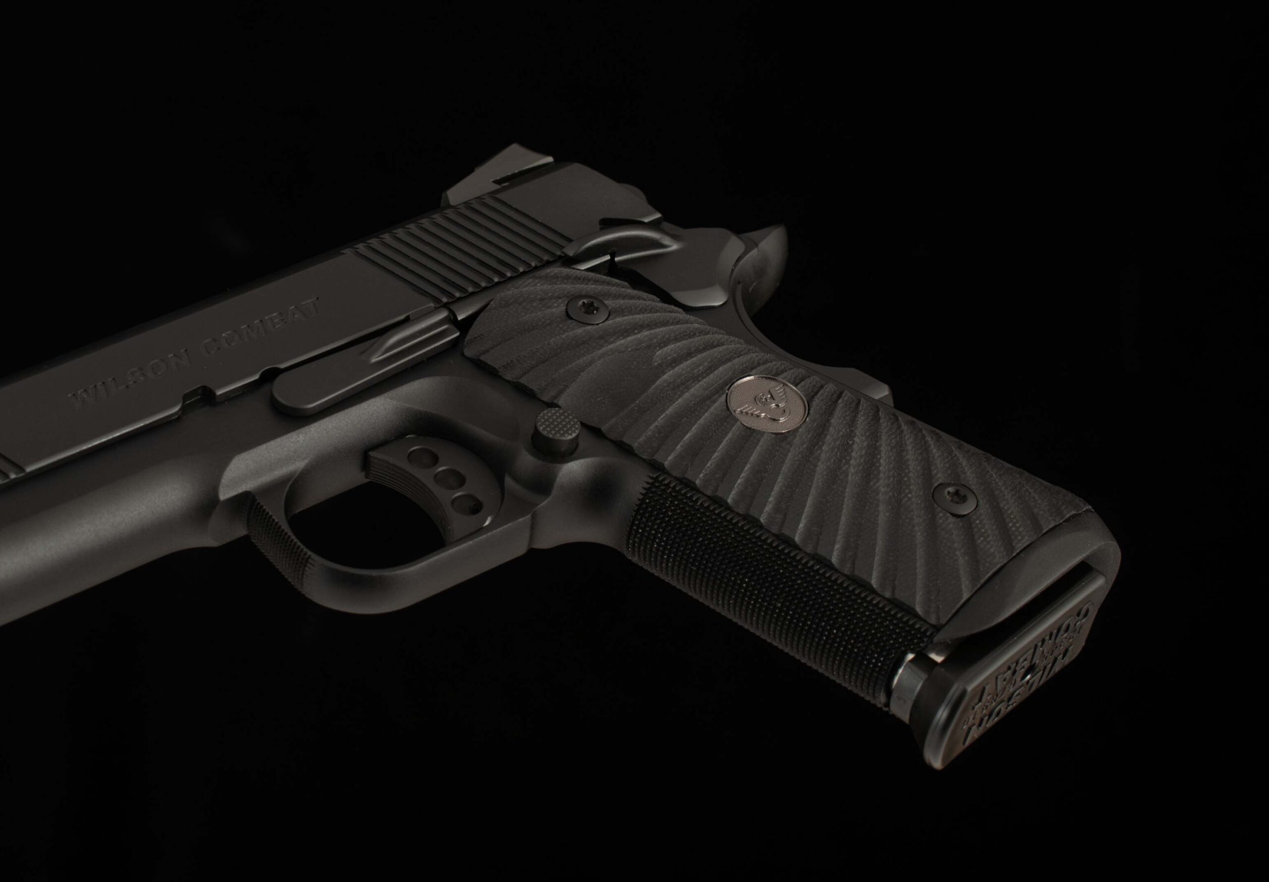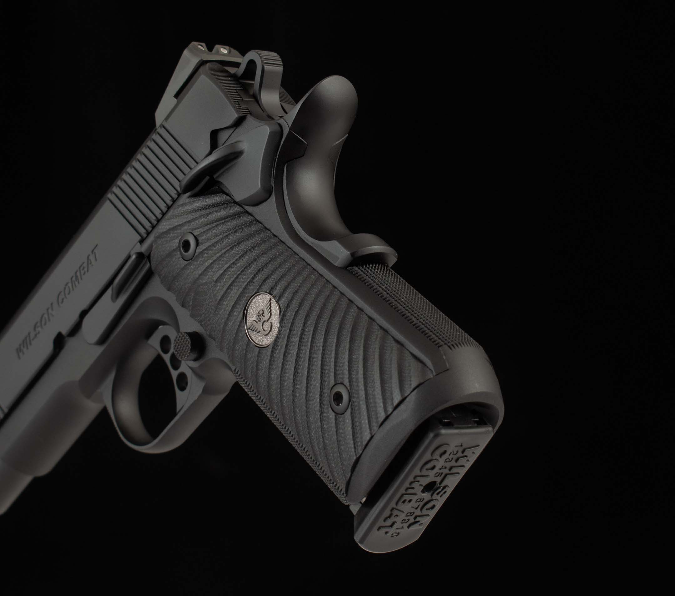 WILSON COMBAT STANDARD FEATURES ON CQB Elite Compact: *Note that some of these features have been custom upgraded (see VFI UPGRADES). Compact Size Carbon Steel Frame High Cut Checkered Frontstrap High-Ride Bullet Proof® Beavertail Grip Safety Tactical Bullet Proof® Thumb Safety 3 ½# – 4 ½# Crisp Trigger Pull with Long Length Pad (Three Hole) Bullet Proof® Round Butt Magazine Well Bullet Proof® Magazine Release G10 Starburst Grips, Flat Bottom, Black Grips with Pewter Medallions 4” Carbon Steel Slide Battlesight with Fiber Optic Front Sight 4” Stainless Match Grade Cone Barrel, Flush-Cut Reverse Crown 30 LPI Slide Top Serrations 40 LPI Serrated Rear of Slide Front and Rear Cocking Serrations