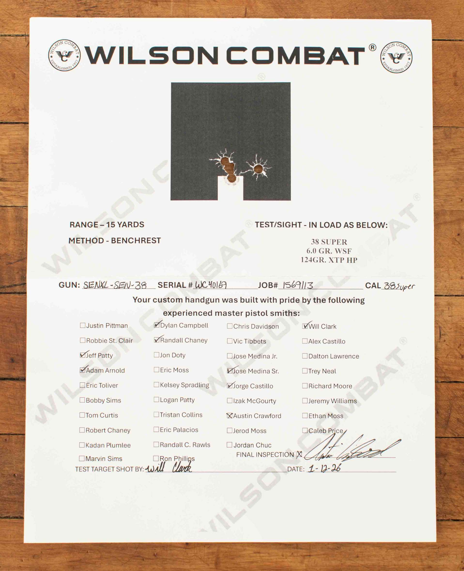 General Specs: Wilson Combat, 2026, .38 Super, 38oz., 4″ barrel
